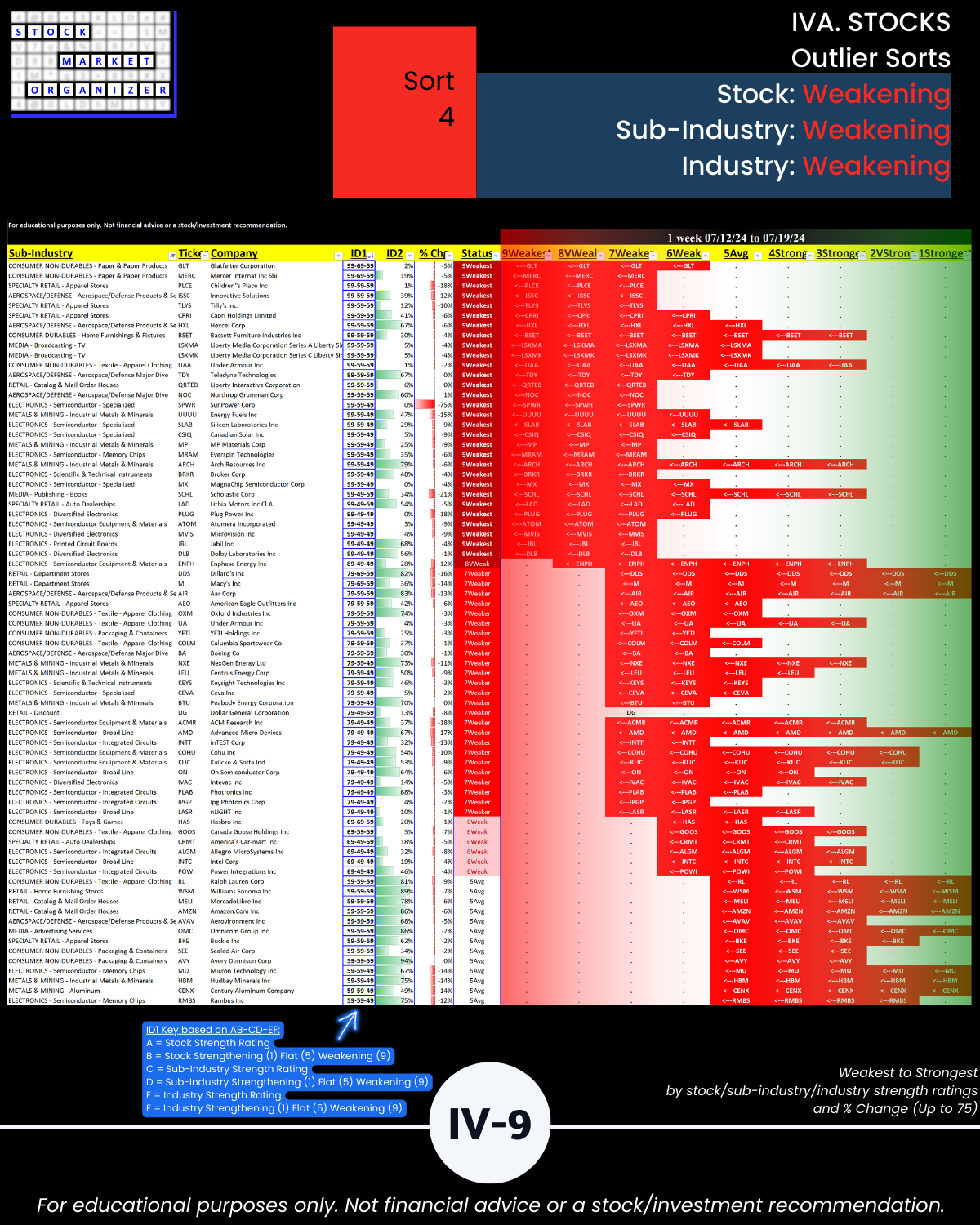 Others may be interested in stocks rated 9Weakest in weakening sub-industries and weakening industries (Sort6, page IV-11).