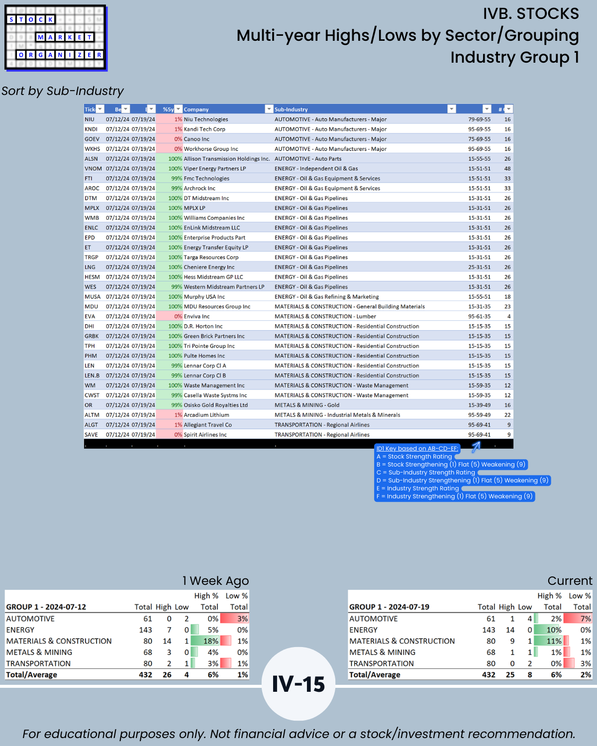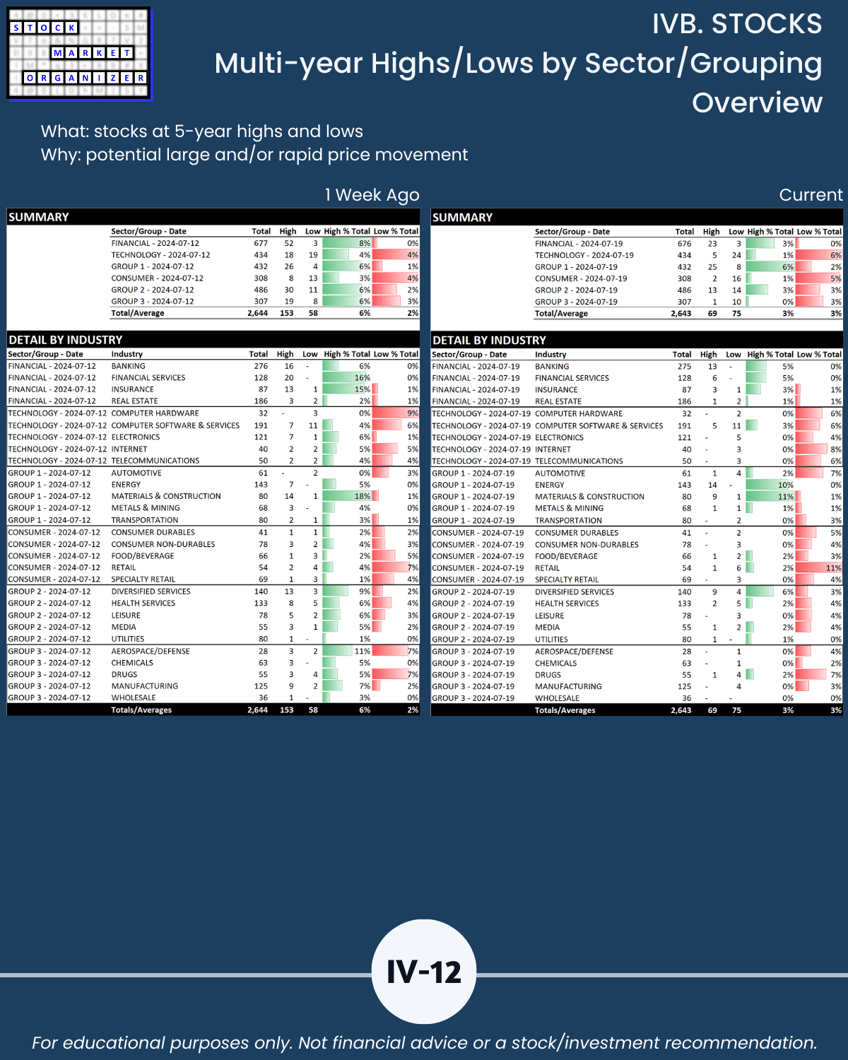 IVB. STOCKS Multi-Year Highs/Lows by Sector/Grouping