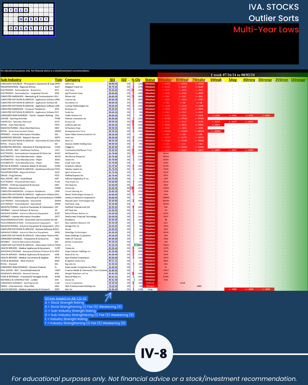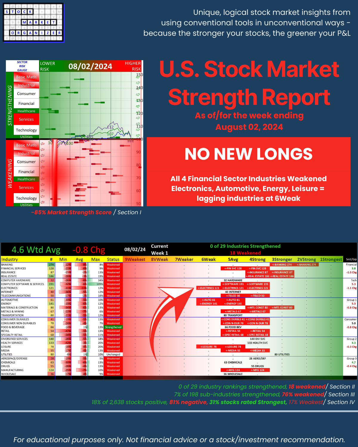 Exactly how much damage did the market incur this week? An objective answer is attached in your Stock Market Organizer U.S. market strength report as of/for the week ending 8/2/24. This report: