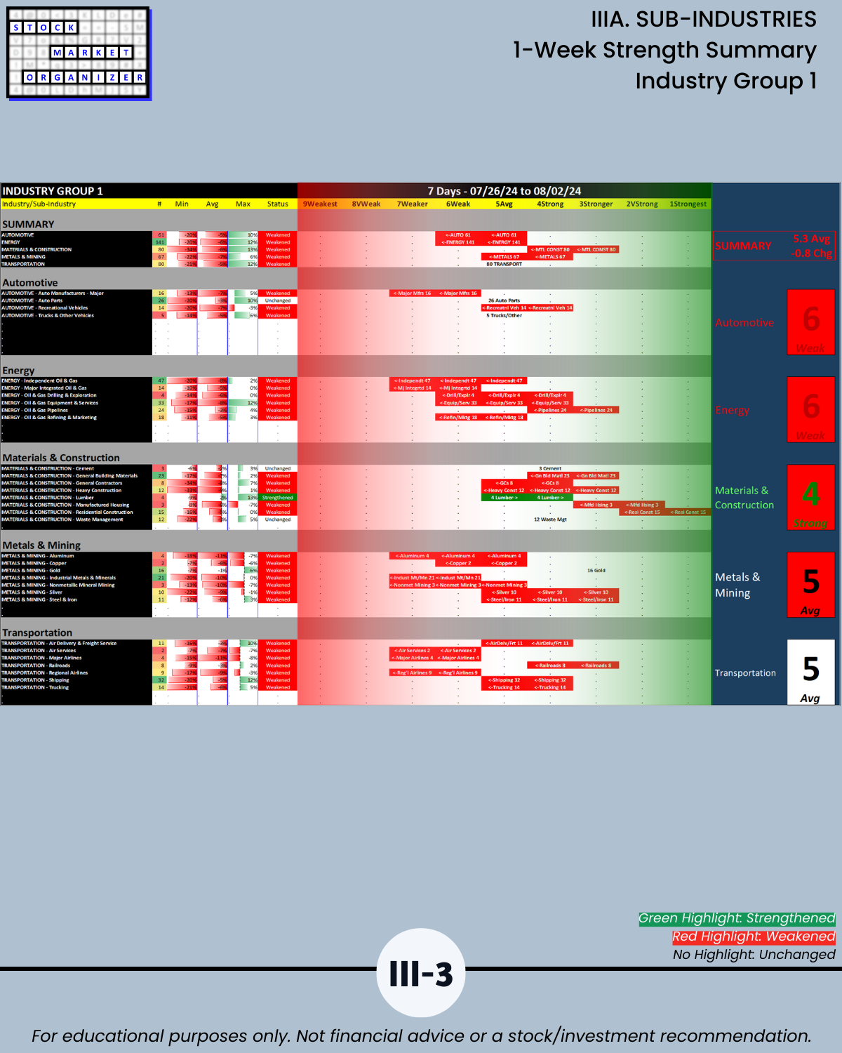 IIIA. SUB-INDUSTRIES 1-Week Strength Summary