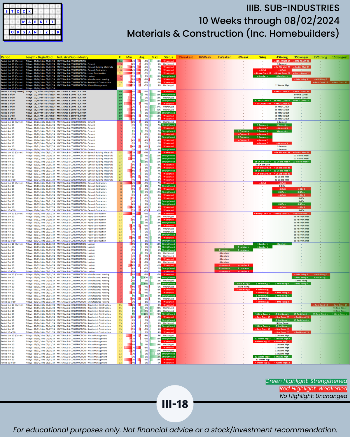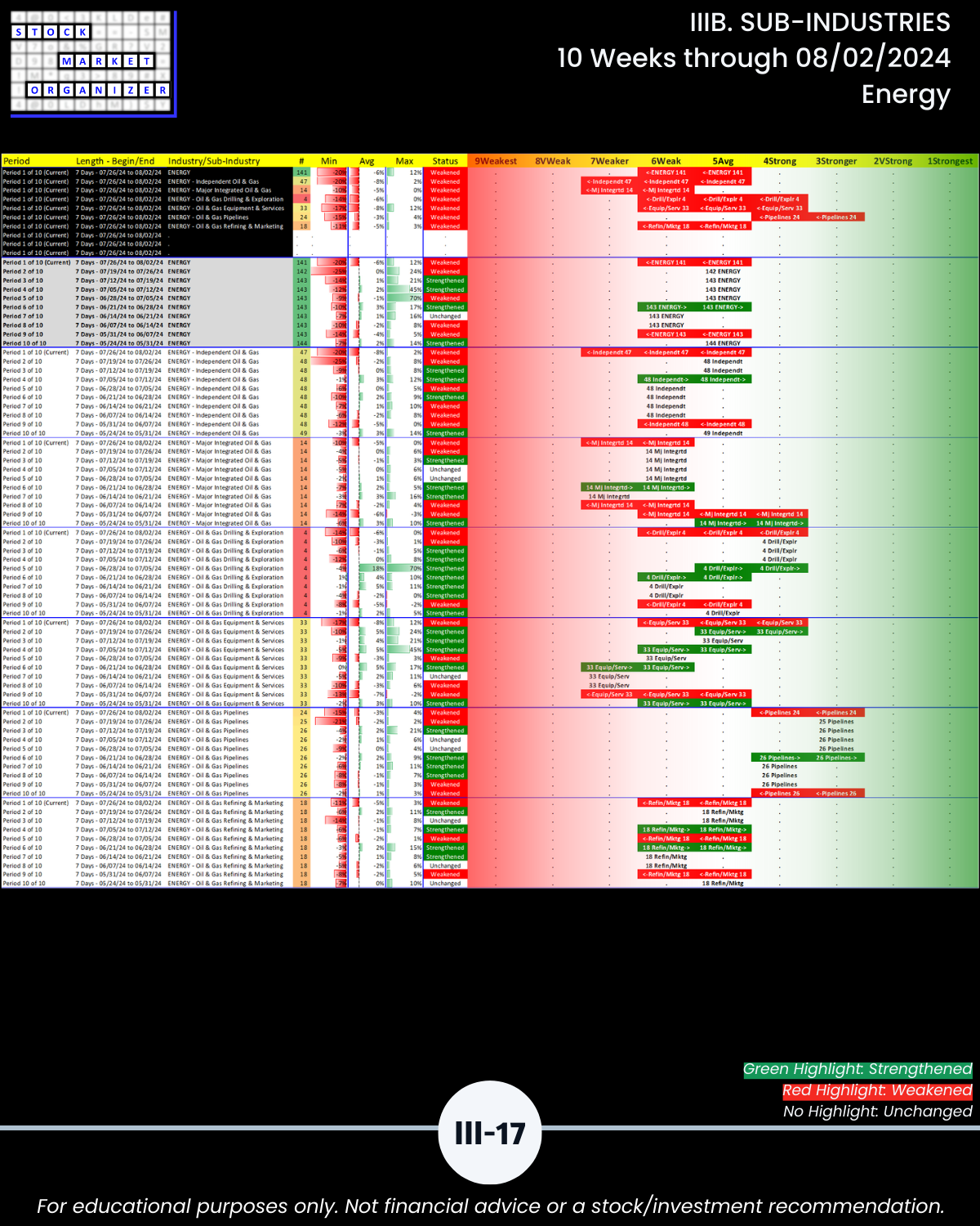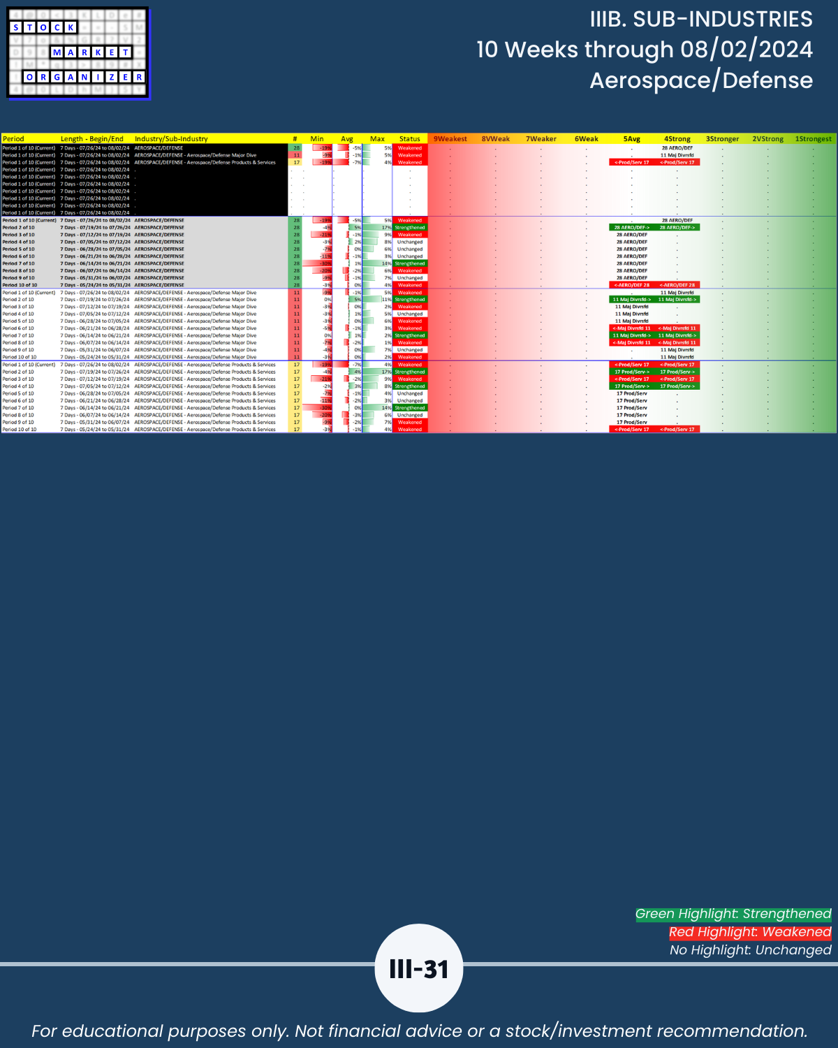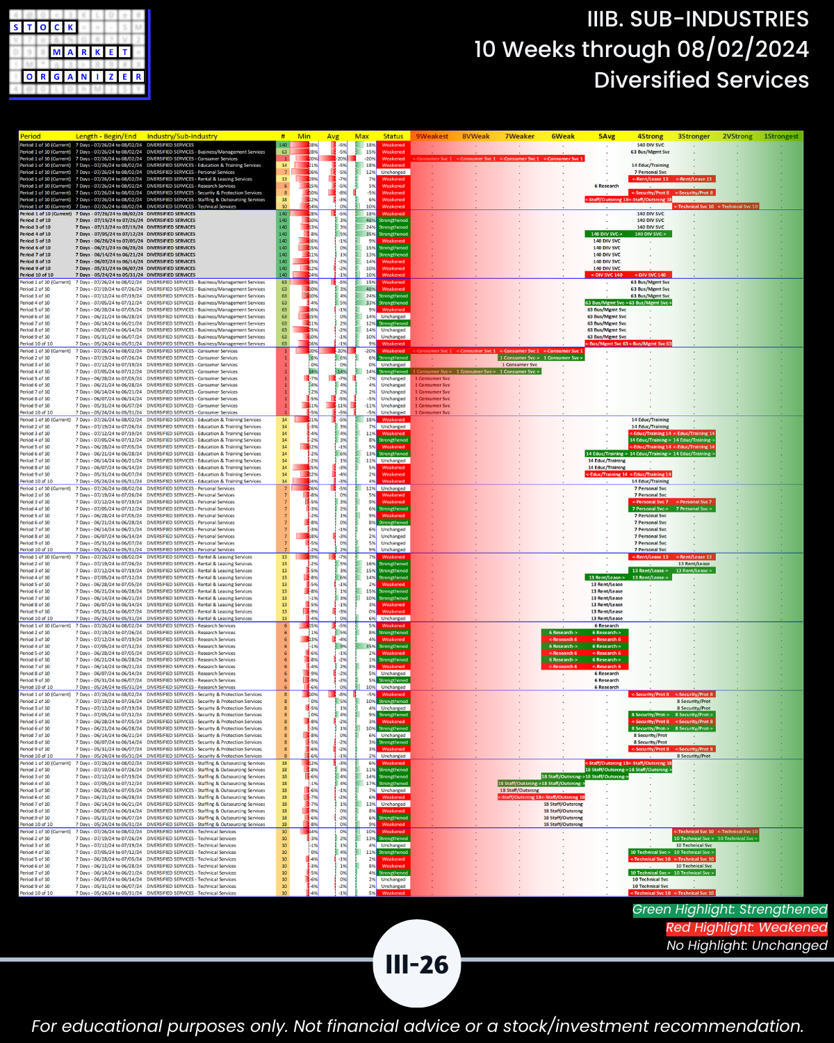 IIIB. SUB-INDUSTRIES 10-Week Strengthening/Weakening