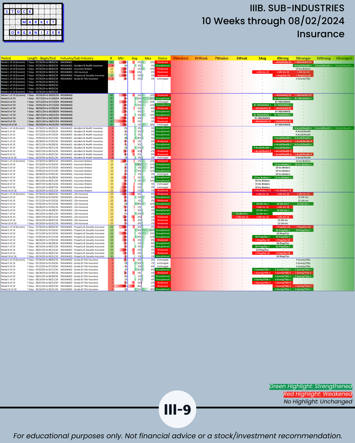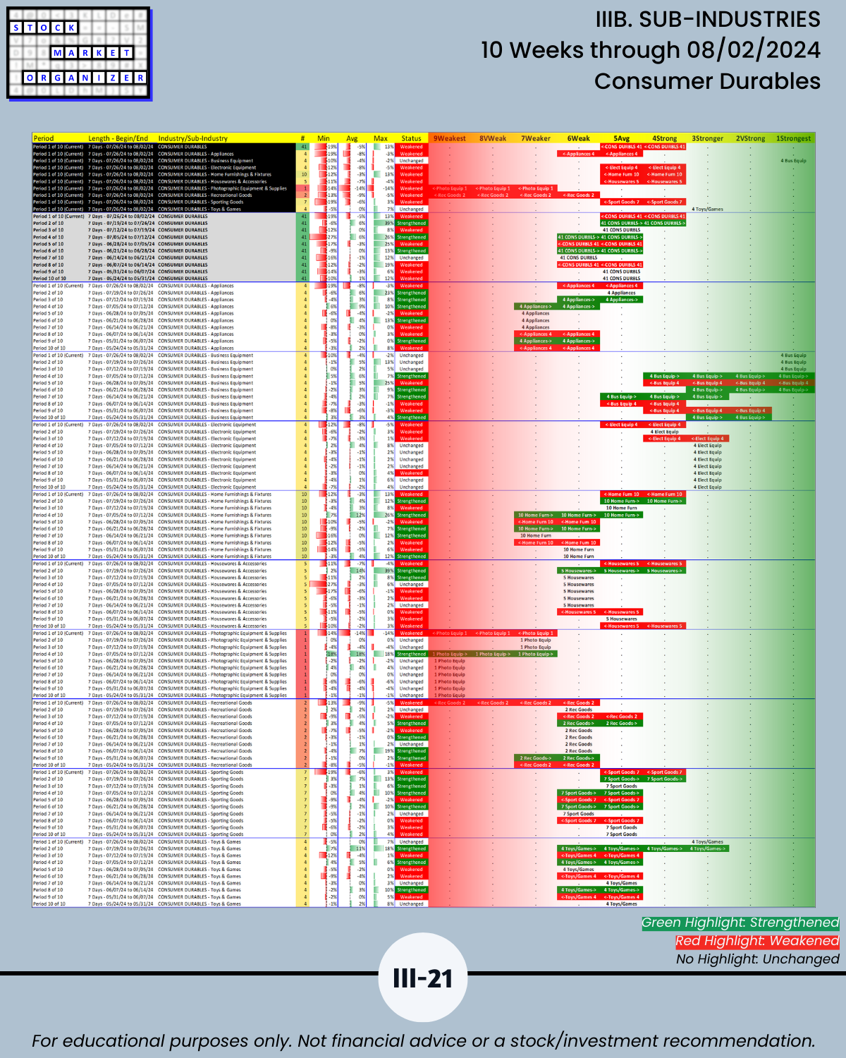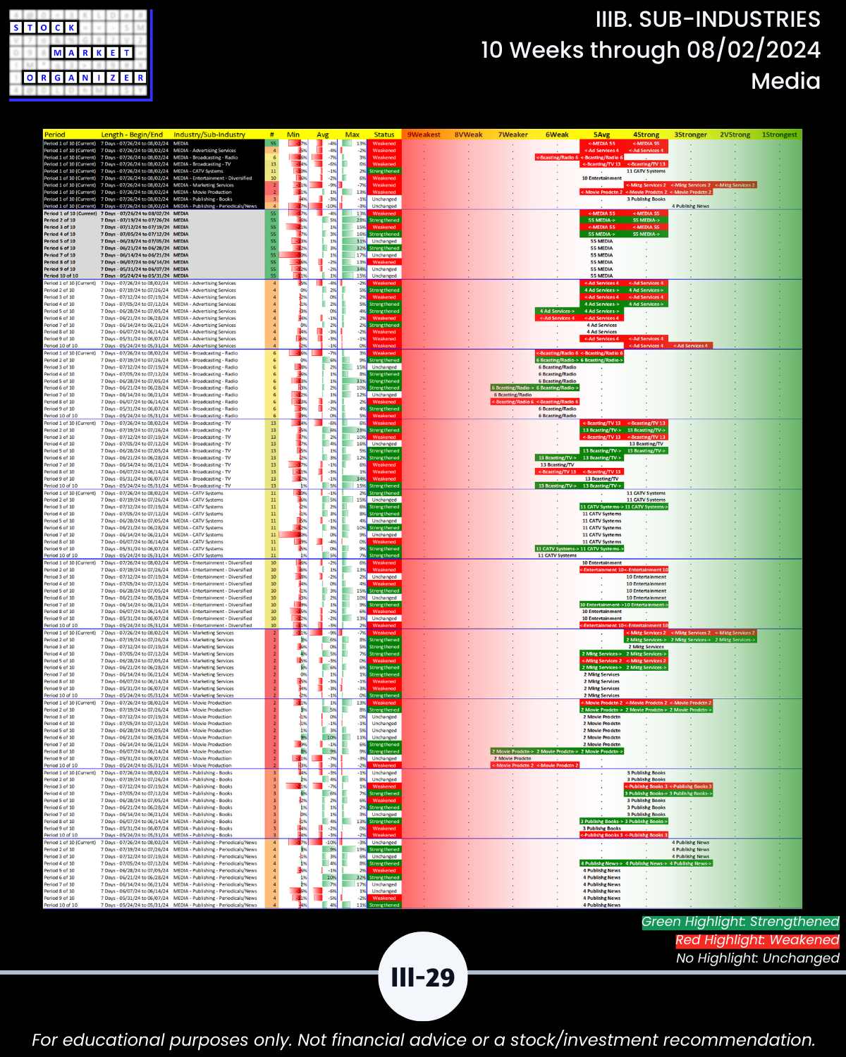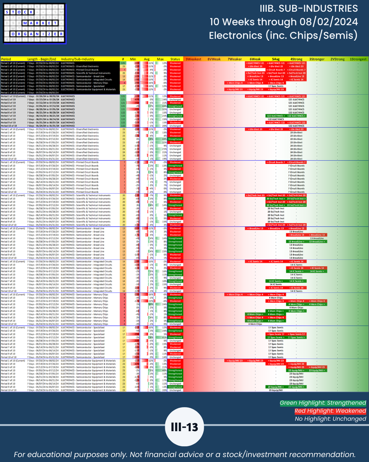 IIIB. SUB-INDUSTRIES 10-Week Strengthening/Weakening