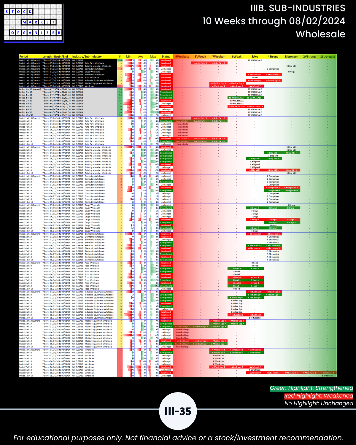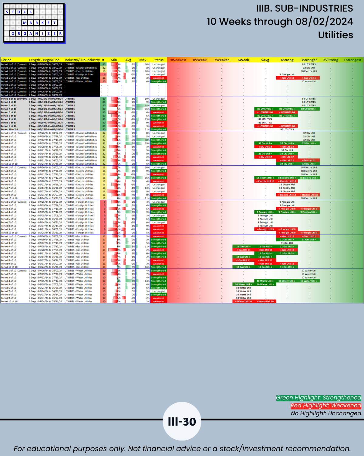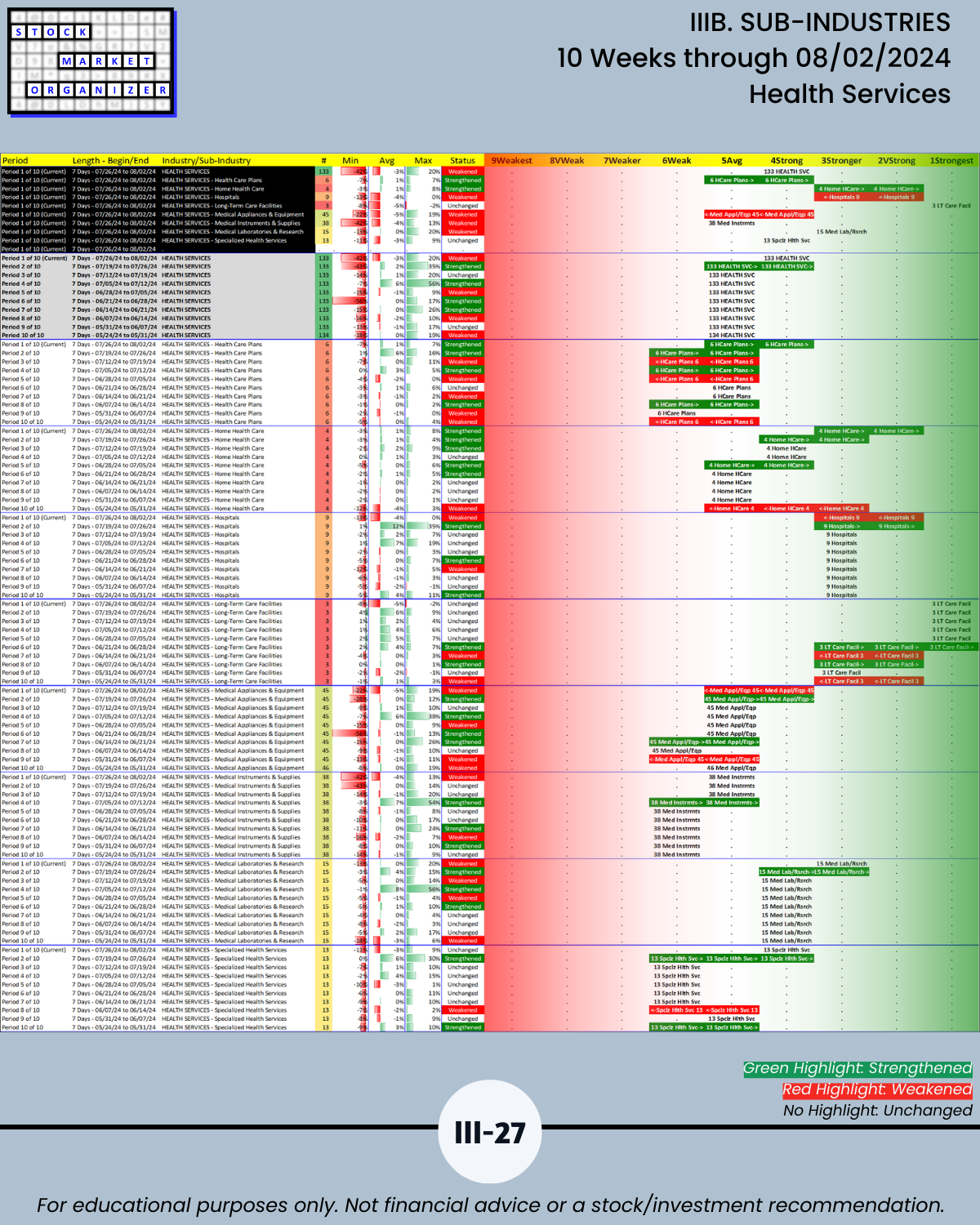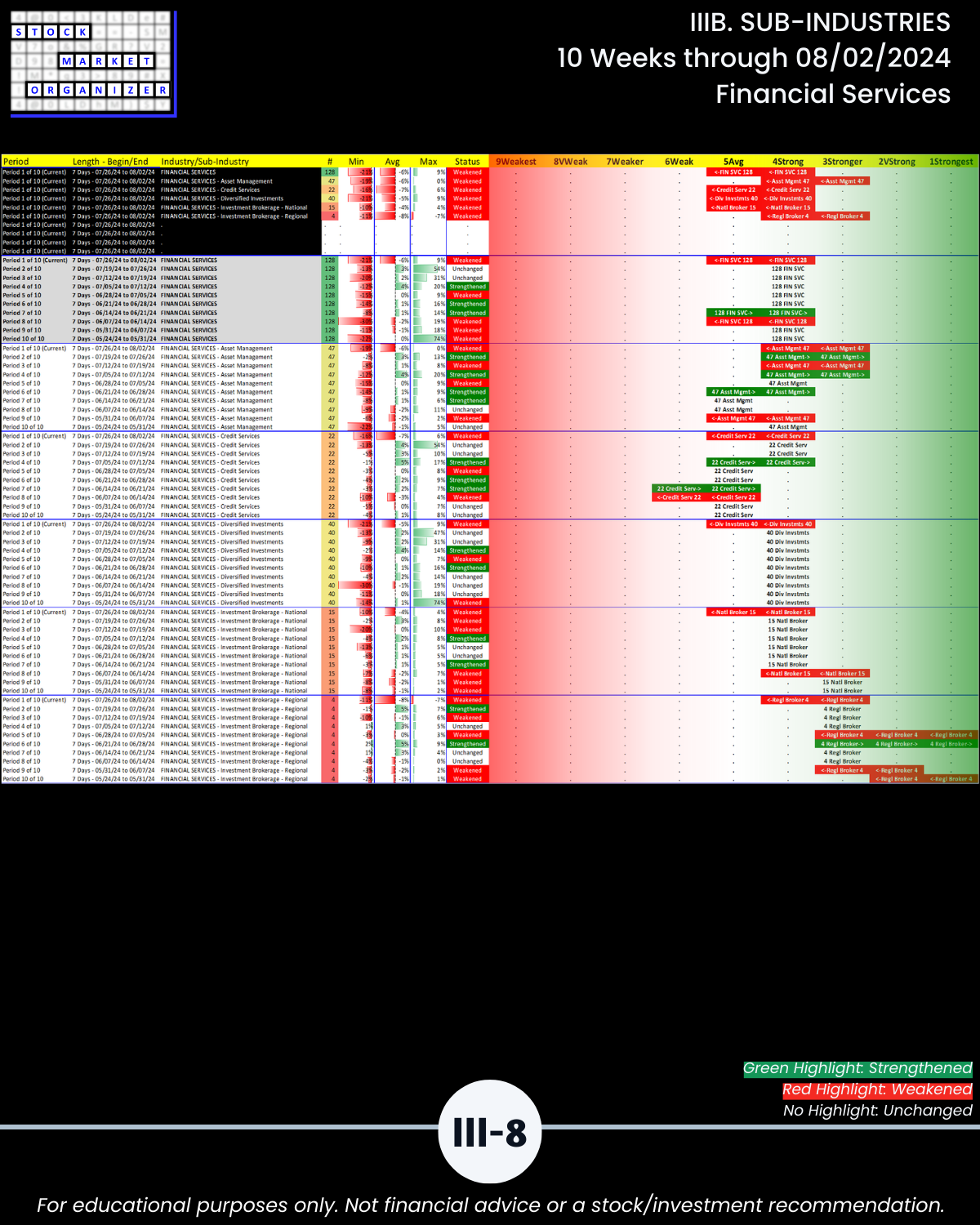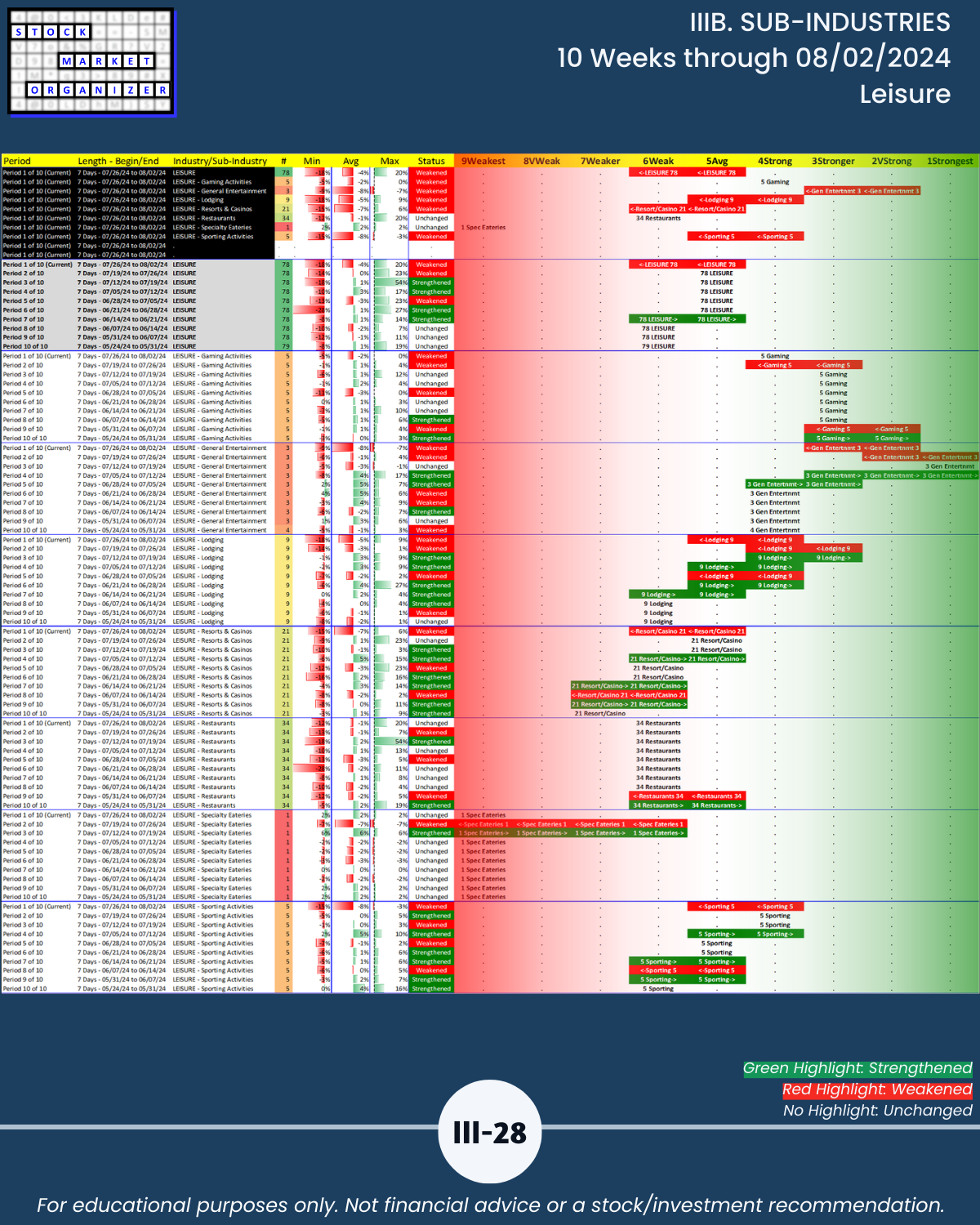 IIIB. SUB-INDUSTRIES 10-Week Strengthening/Weakening