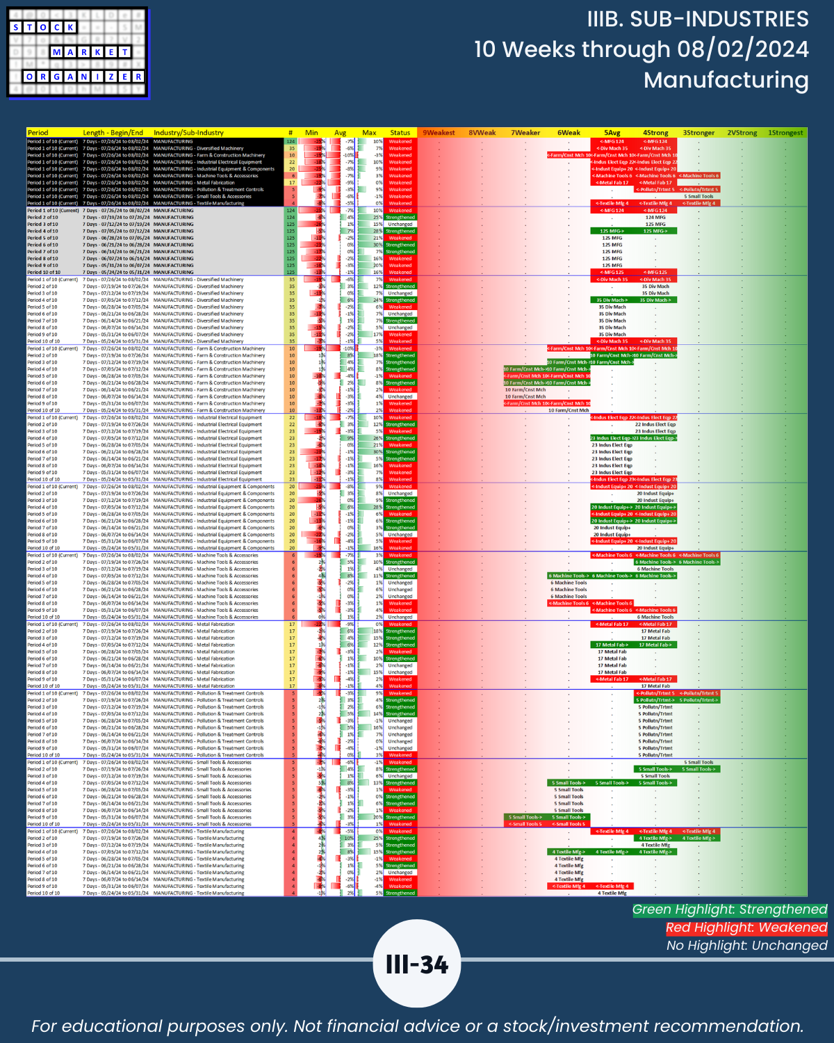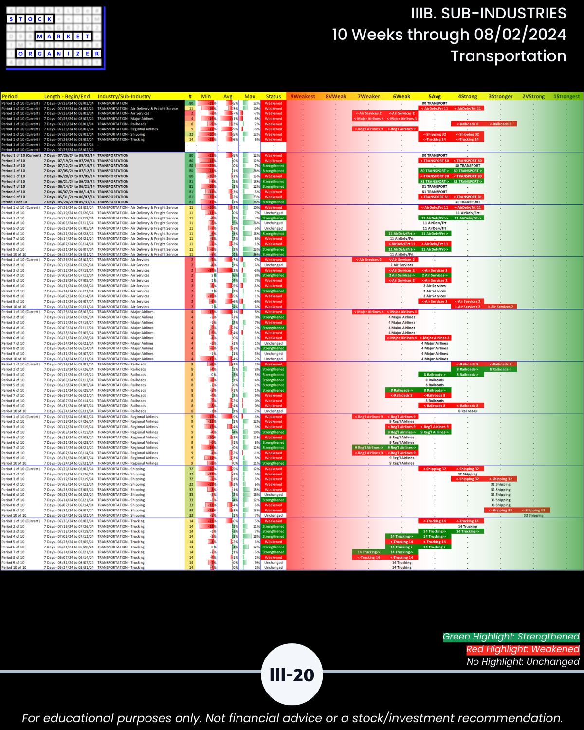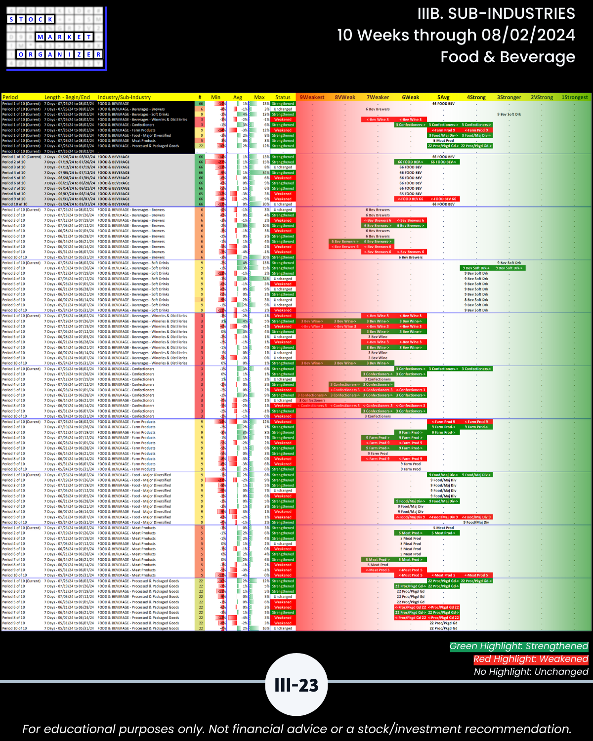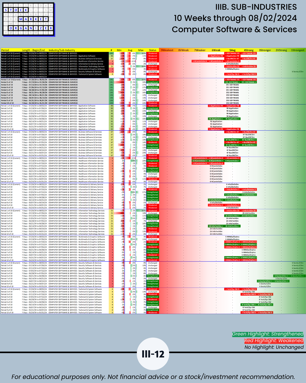 IIIB. SUB-INDUSTRIES 10-Week Strengthening/Weakening