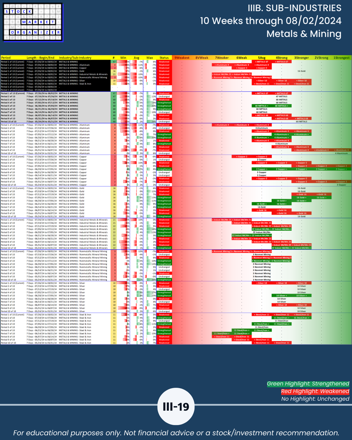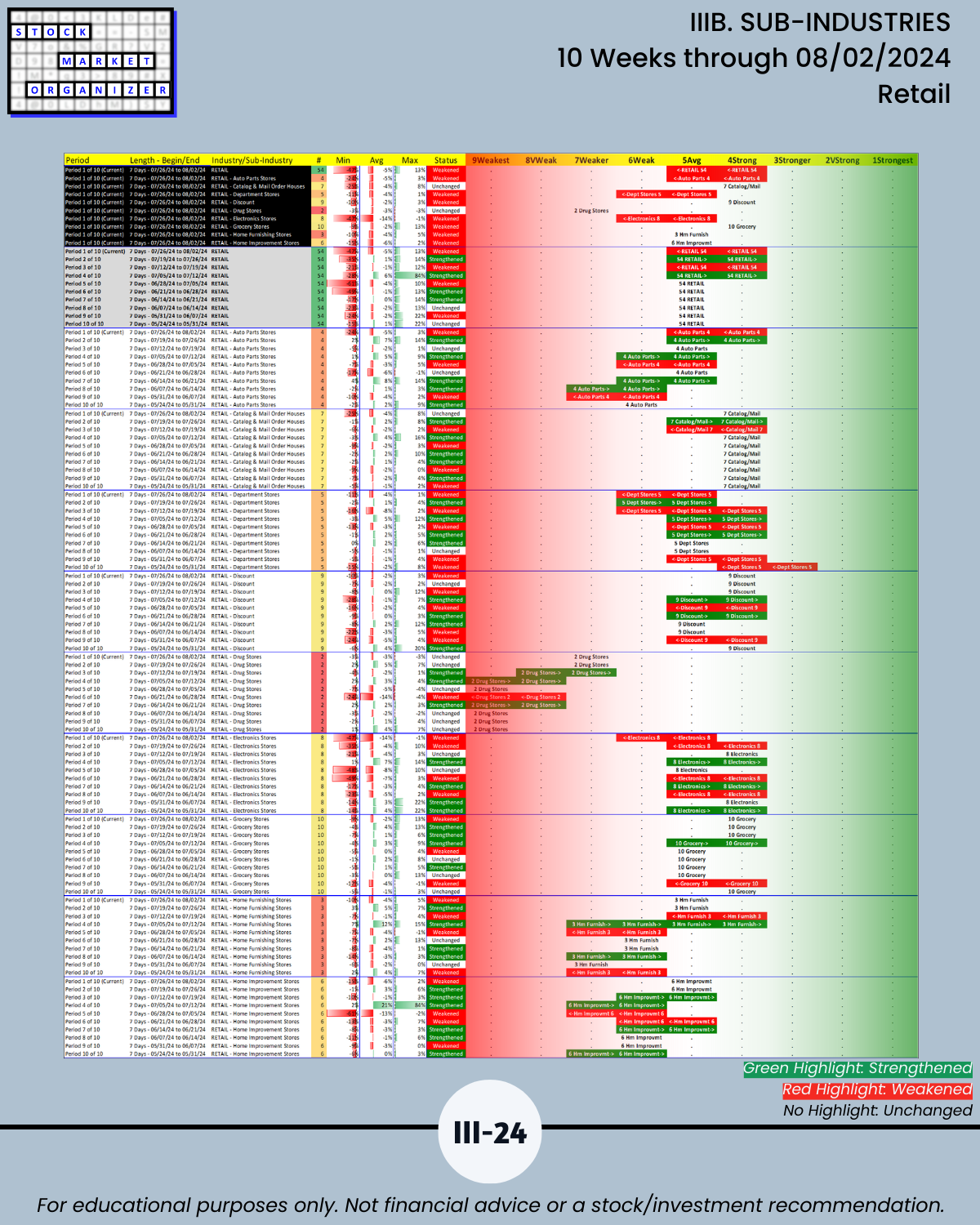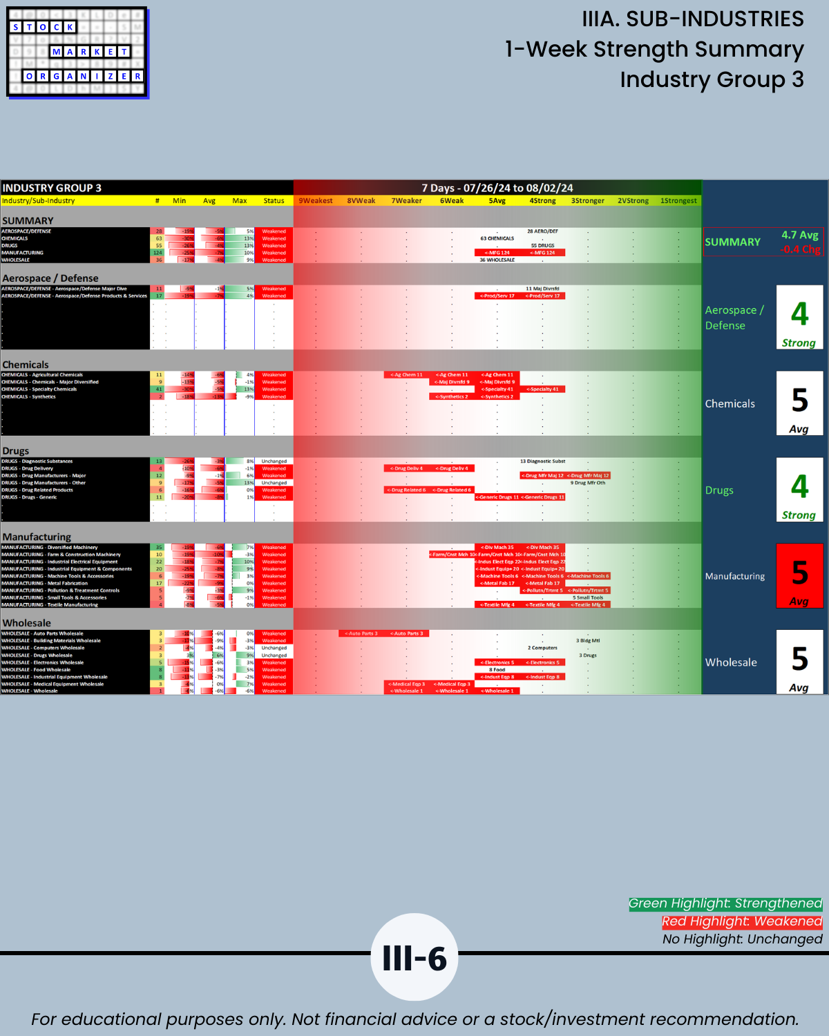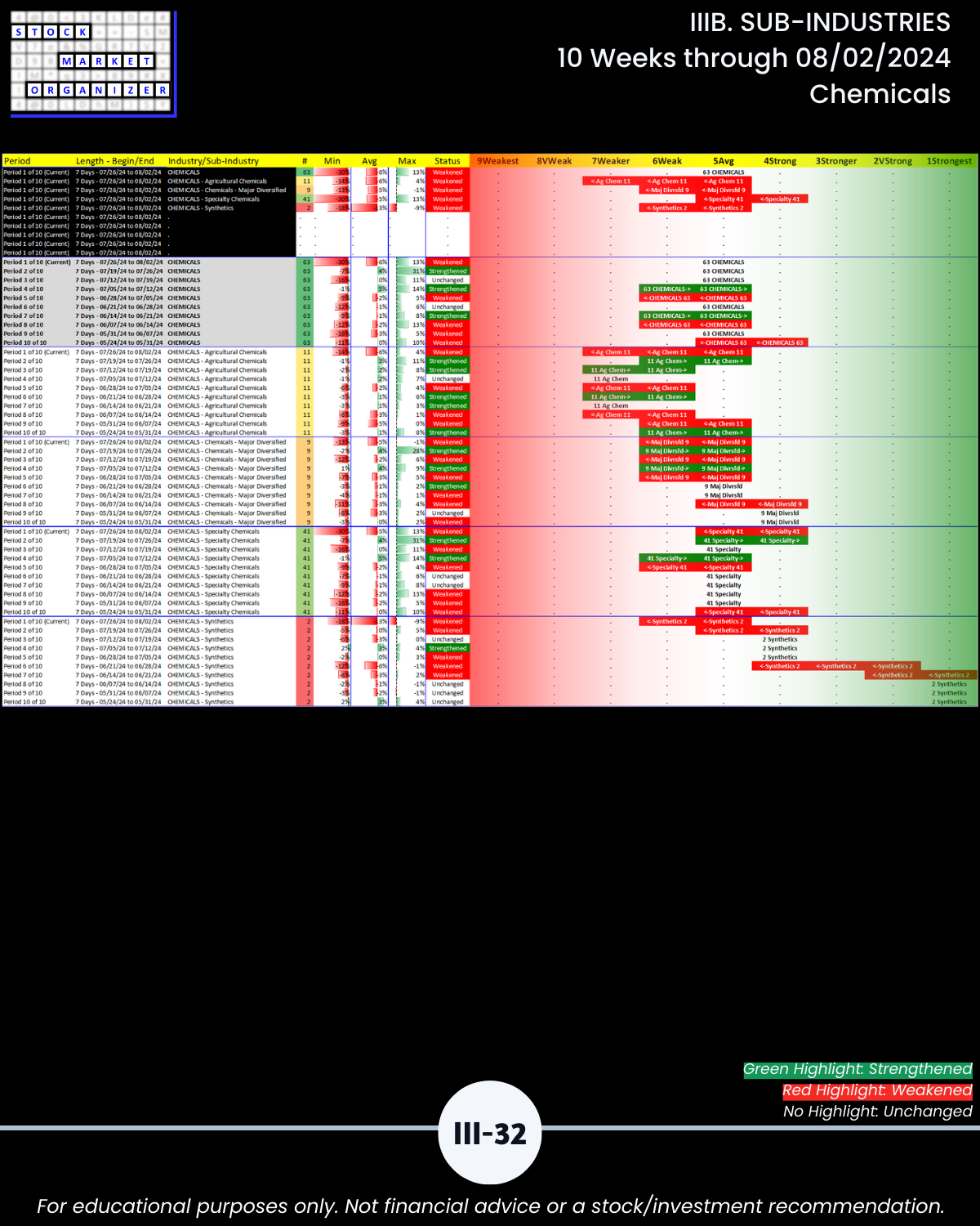 IIIB. SUB-INDUSTRIES 10-Week Strengthening/Weakening