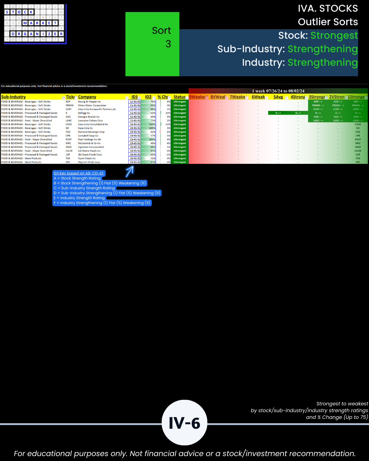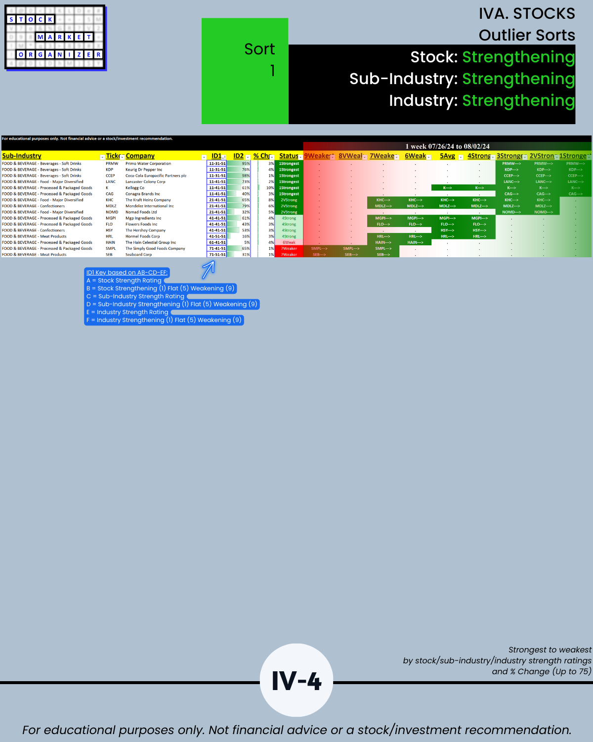 🔹 graphically depicts strengthening and weakening at the market, sector/industry group, industry, sub-industry, and stock levels