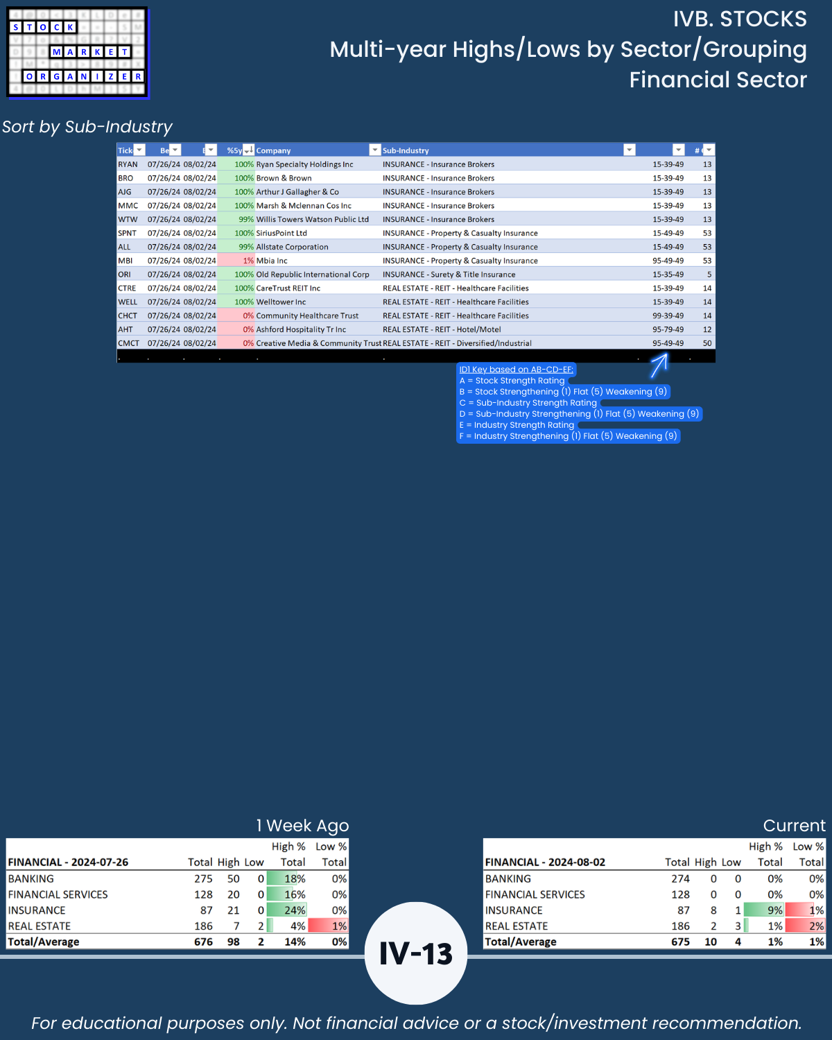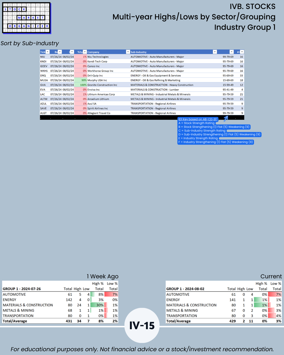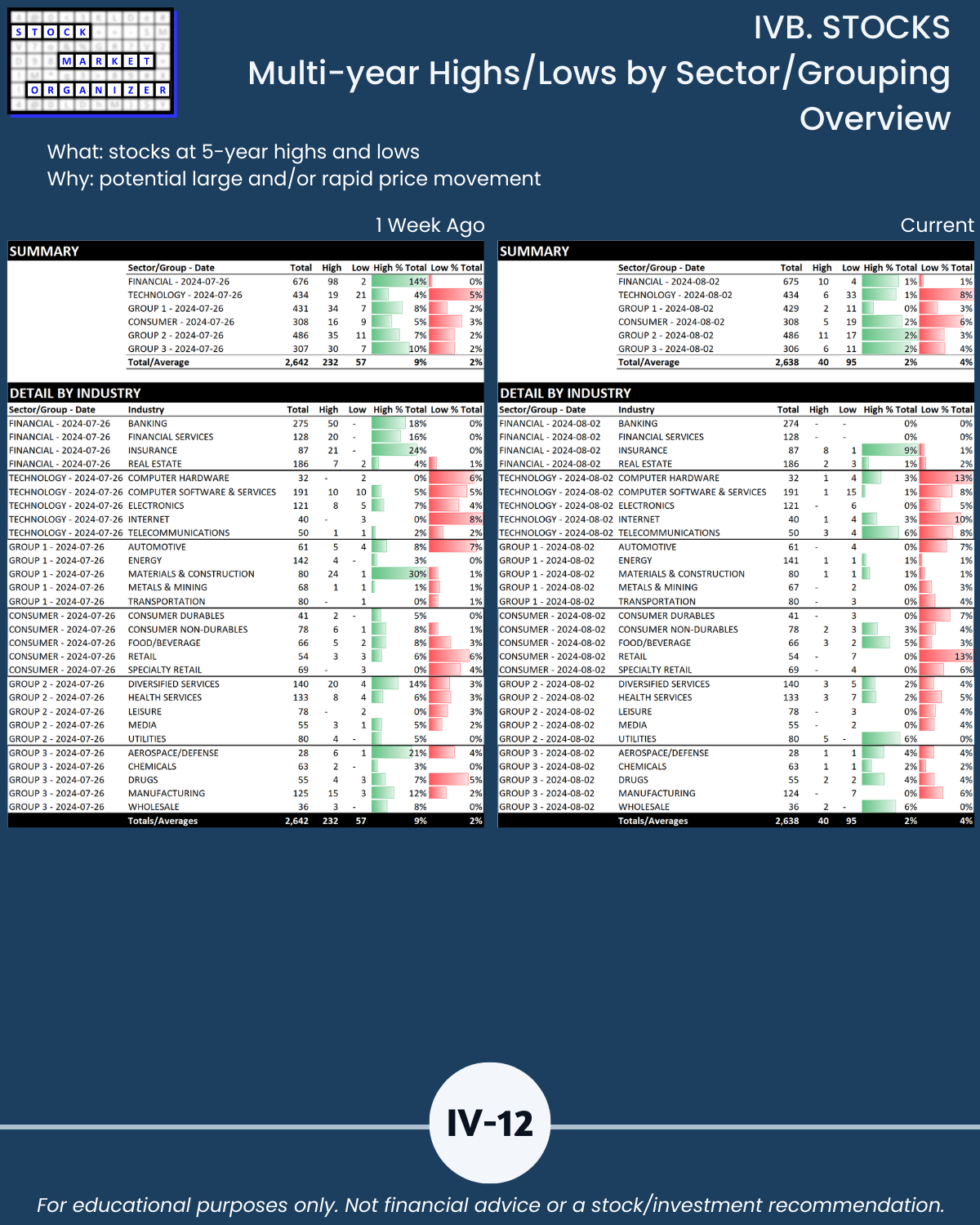 IVB. STOCKS Multi-Year Highs/Lows by Sector/Grouping
