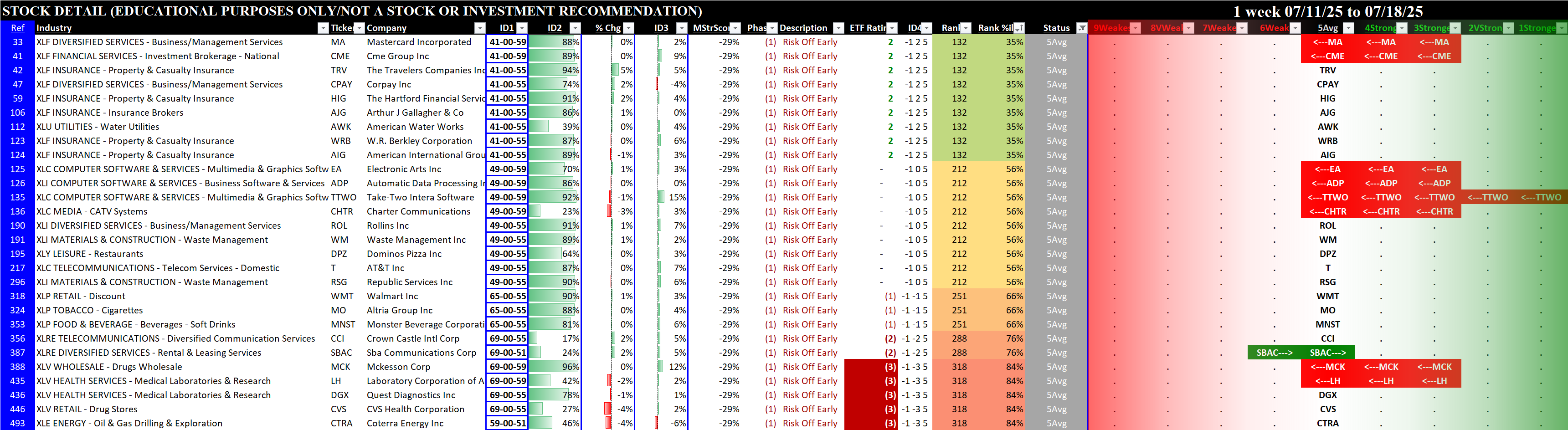 Below are the stocks rated 1Strongest (for long possibilities), 5Average (for non-directional option possibilities), and 9Weakest (for short possibilities).