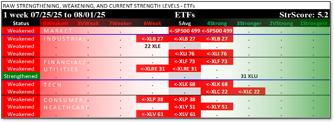Below are the stocks rated 1Strongest (for long possibilities), 5Average (for non-directional option possibilities), and 9Weakest (for short possibilities).