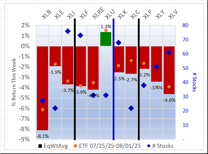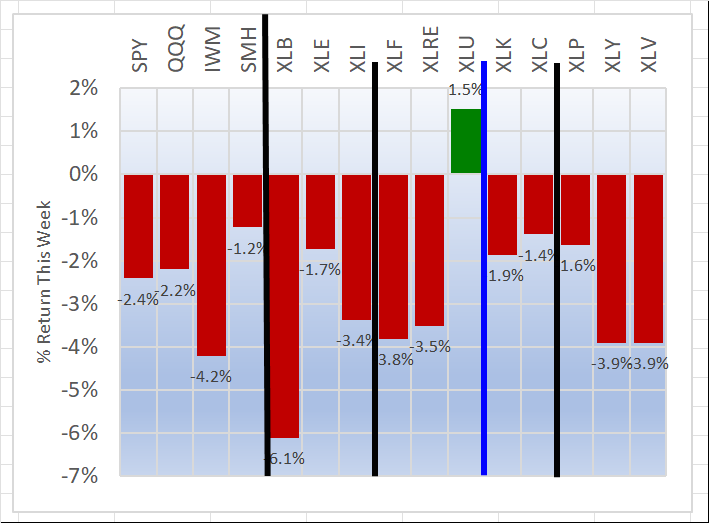 To recap, it was a poor week for the markets. Only XLU was positive.