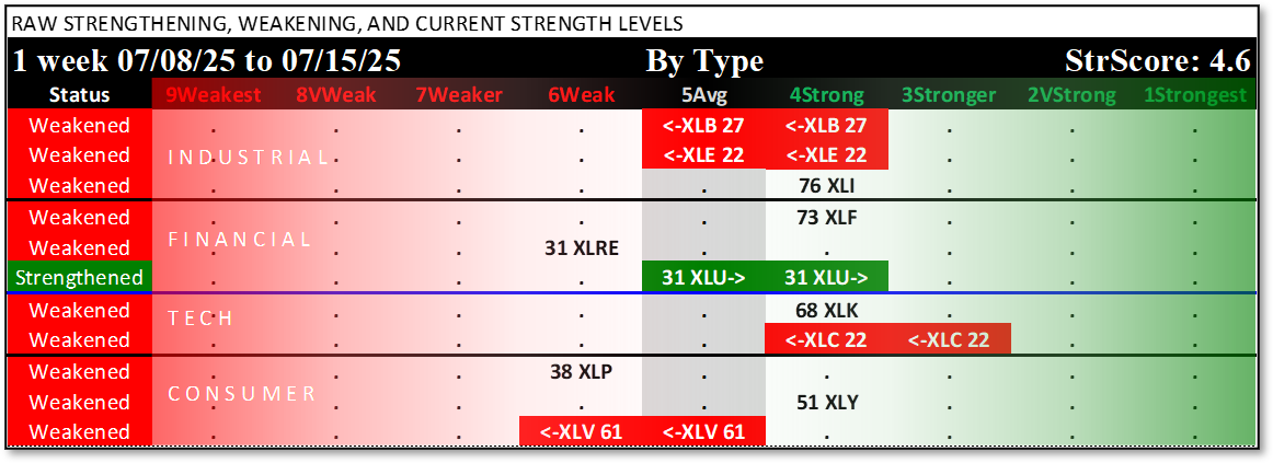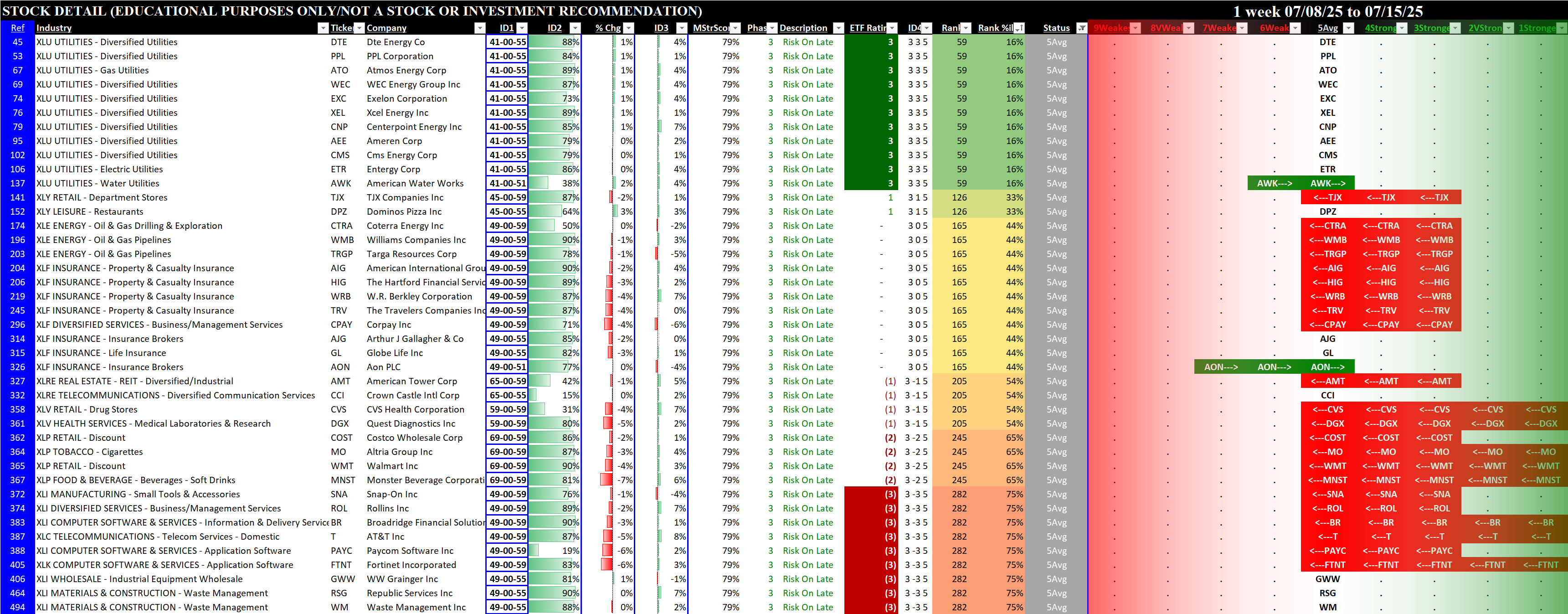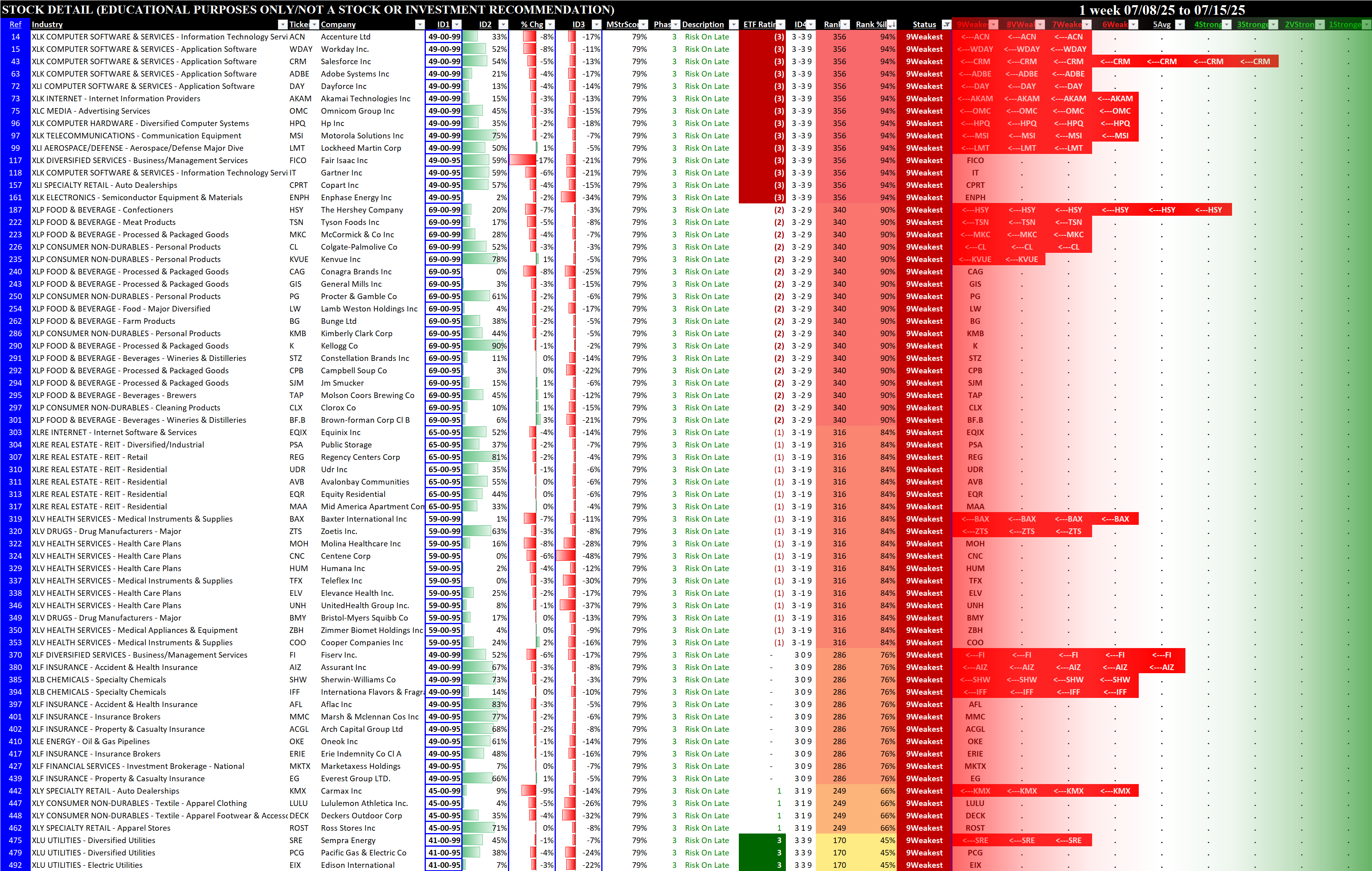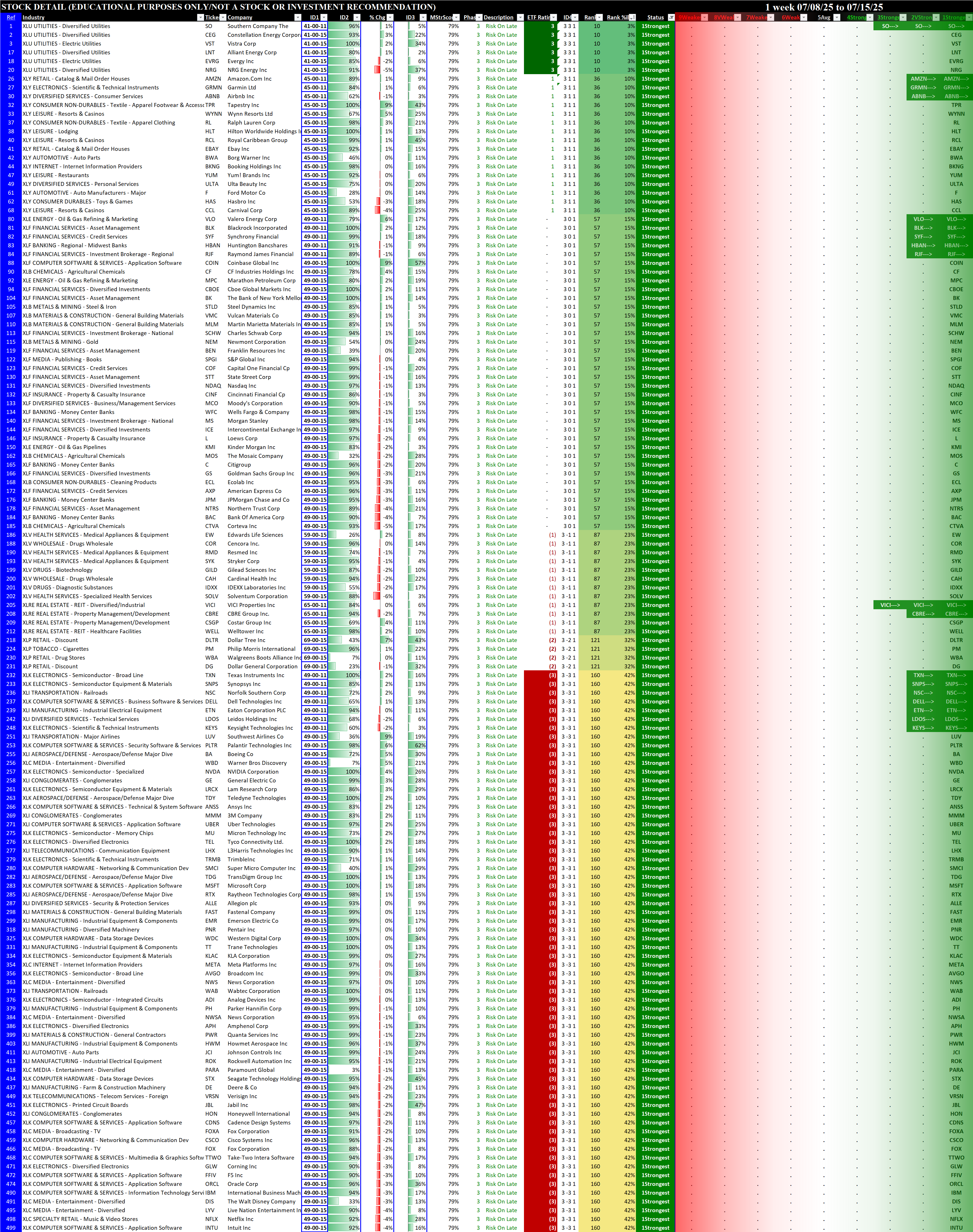 Below are the stocks rated 1Strongest (for long possibilities), 5Average (for non-directional option possibilities), and 9Weakest (for short possibilities).