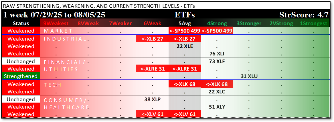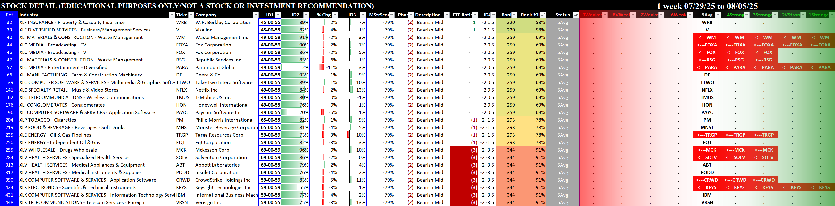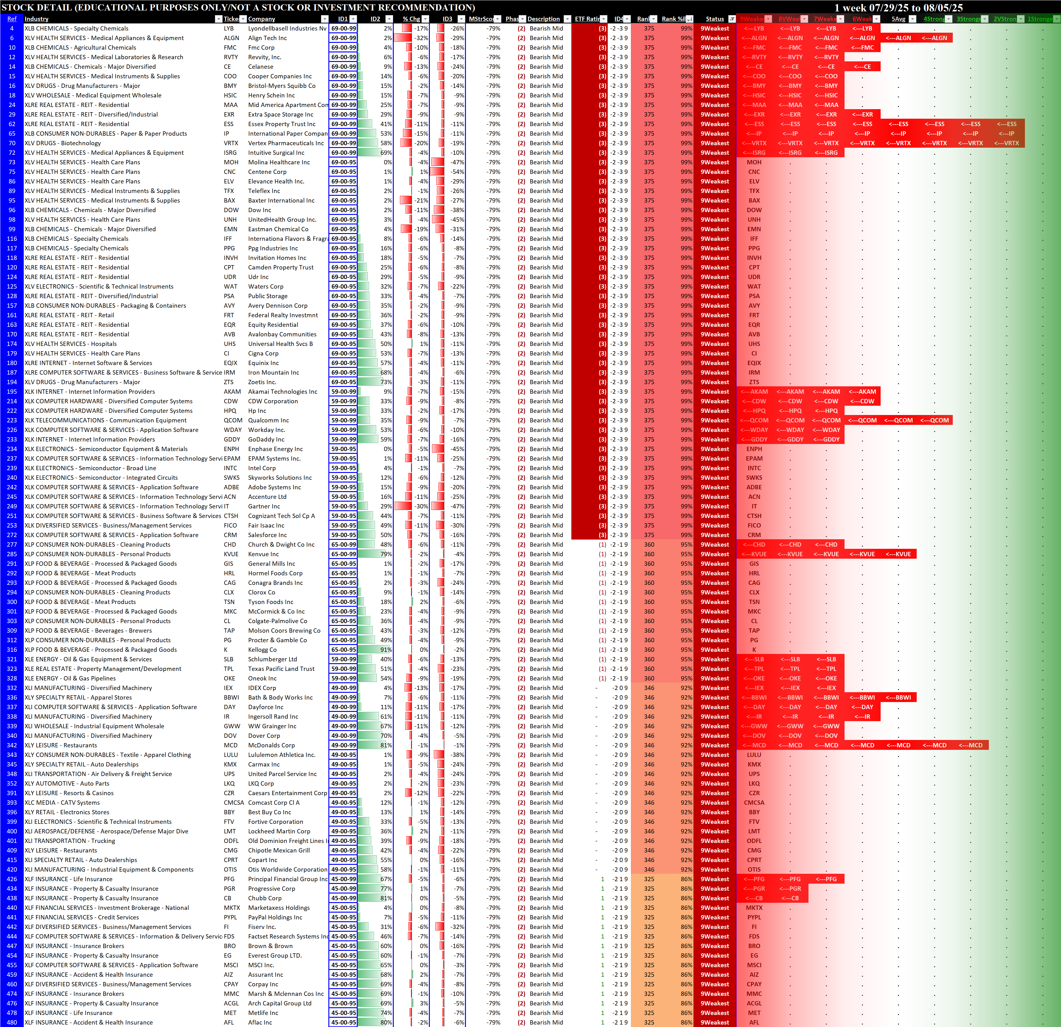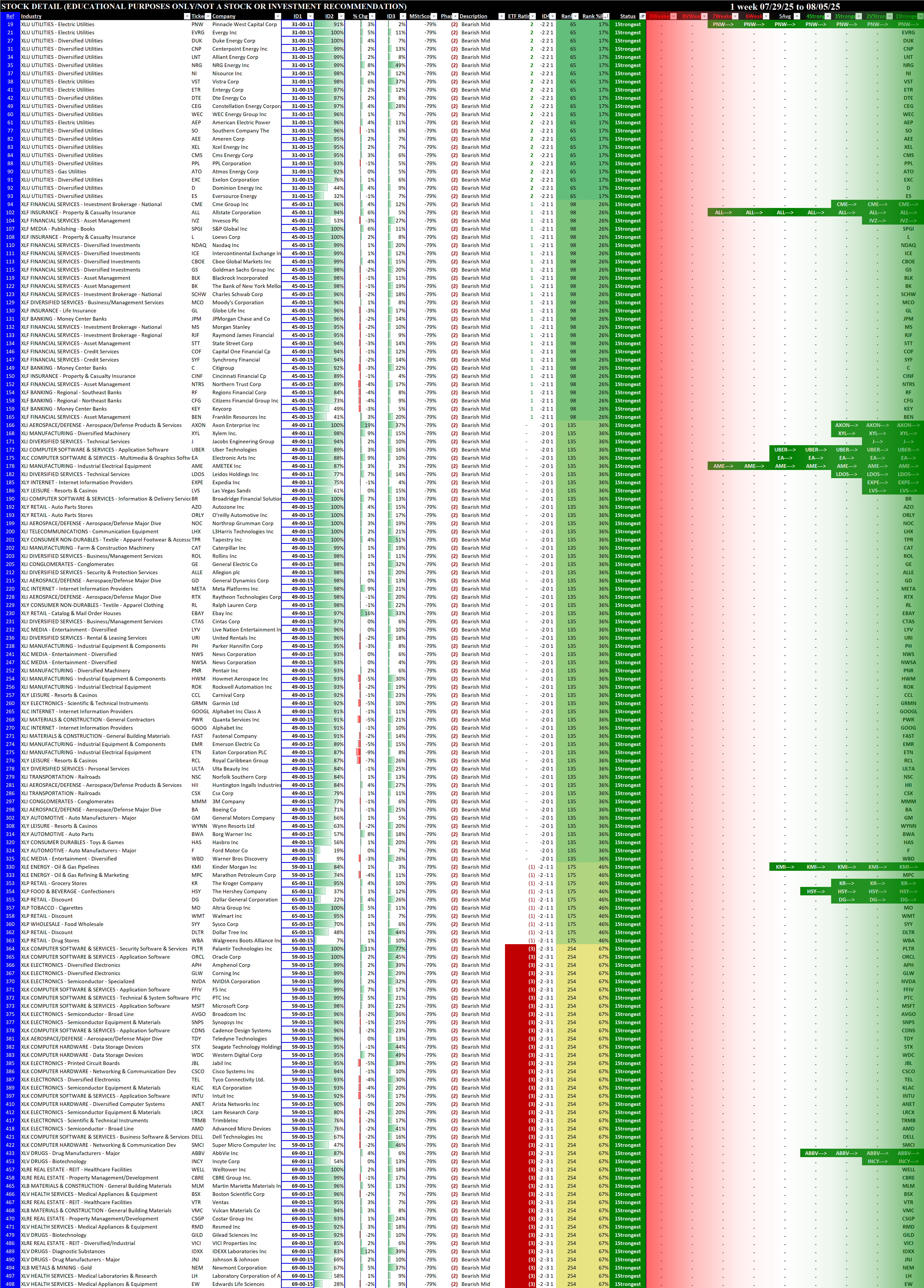 Below are the stocks rated 1Strongest (for long possibilities), 5Average (for non-directional option possibilities), and 9Weakest (for short possibilities).