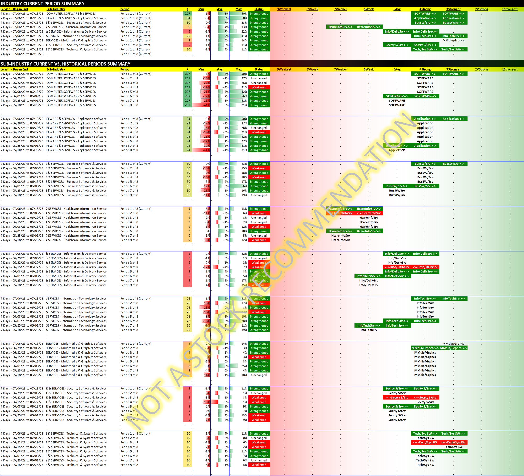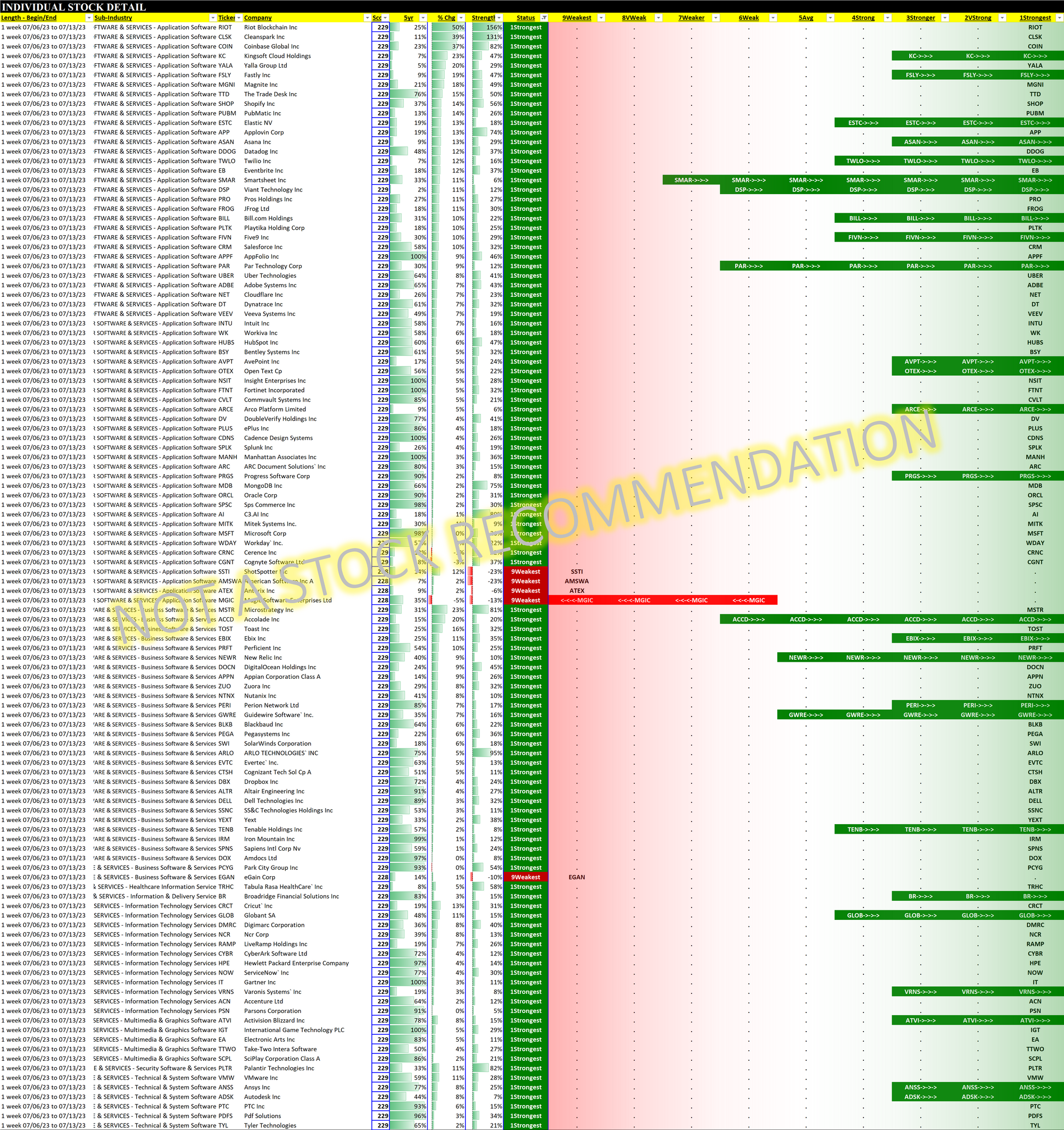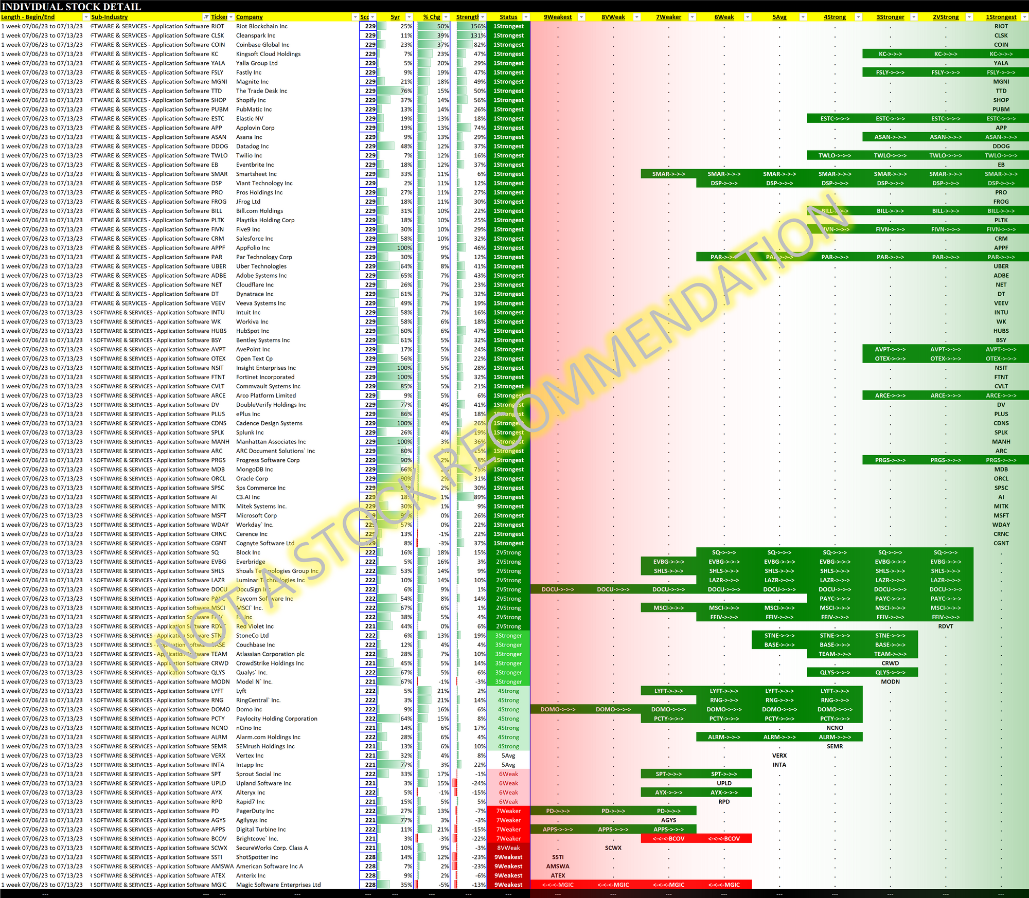 A strong week for Computer Software & Services as Application Stocks took off. The sub-industry was led by Riot Platforms which popped 50% in one week AFTER a nearly 300% YTD gain, and in total 35 Application Software stocks rose more than 10% for the trading week ending 7/13/23.