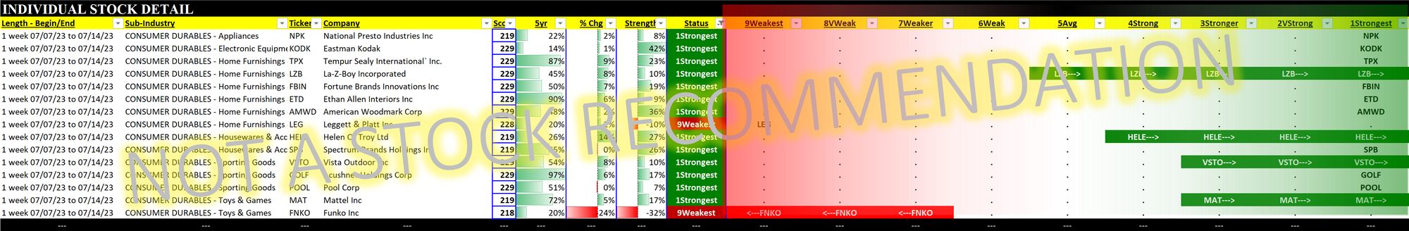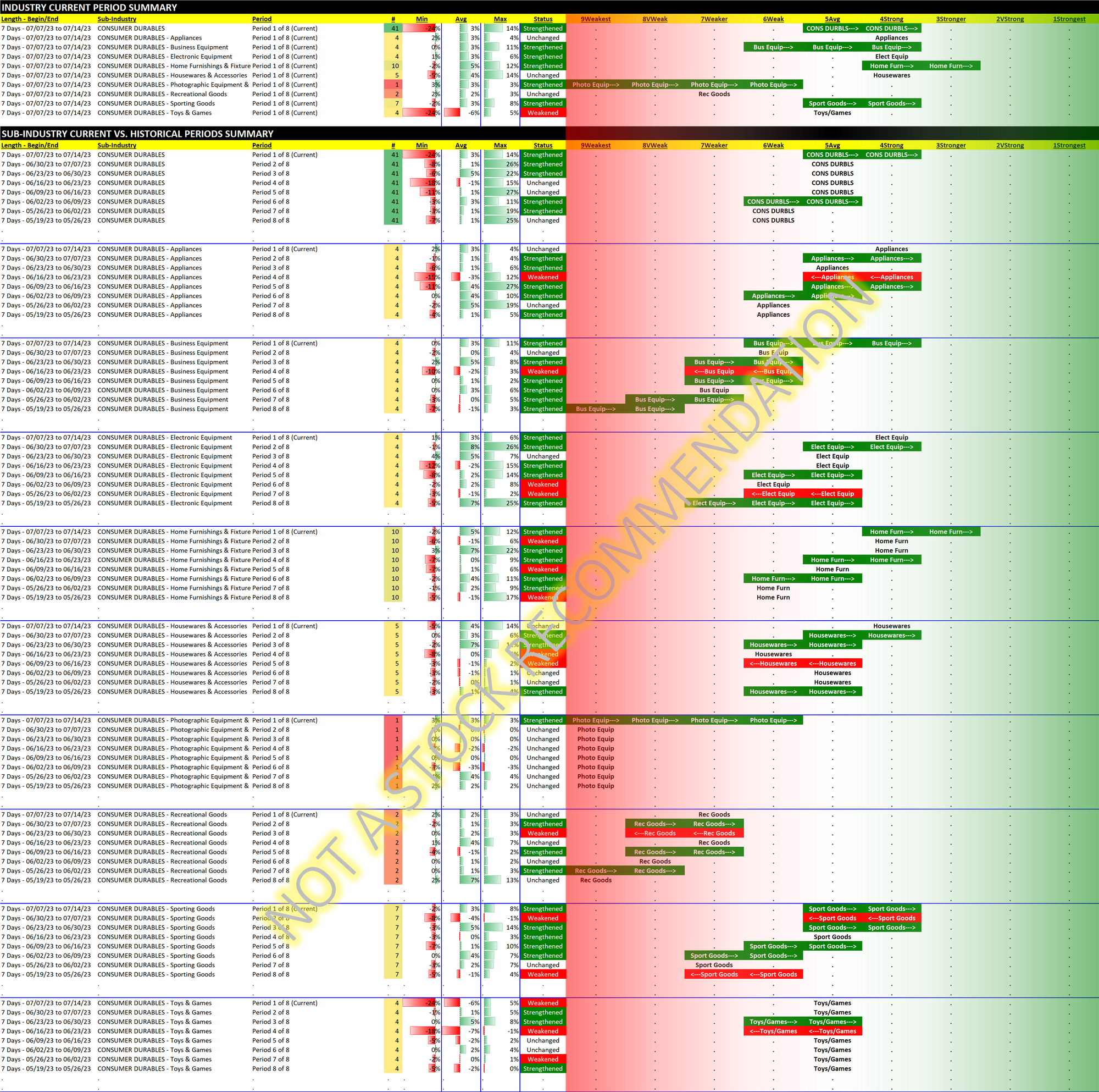 Consumer Durables 2023-07-14: +1 to "Strong" strength rating (4th strongest of 9 levels), previous move was also up