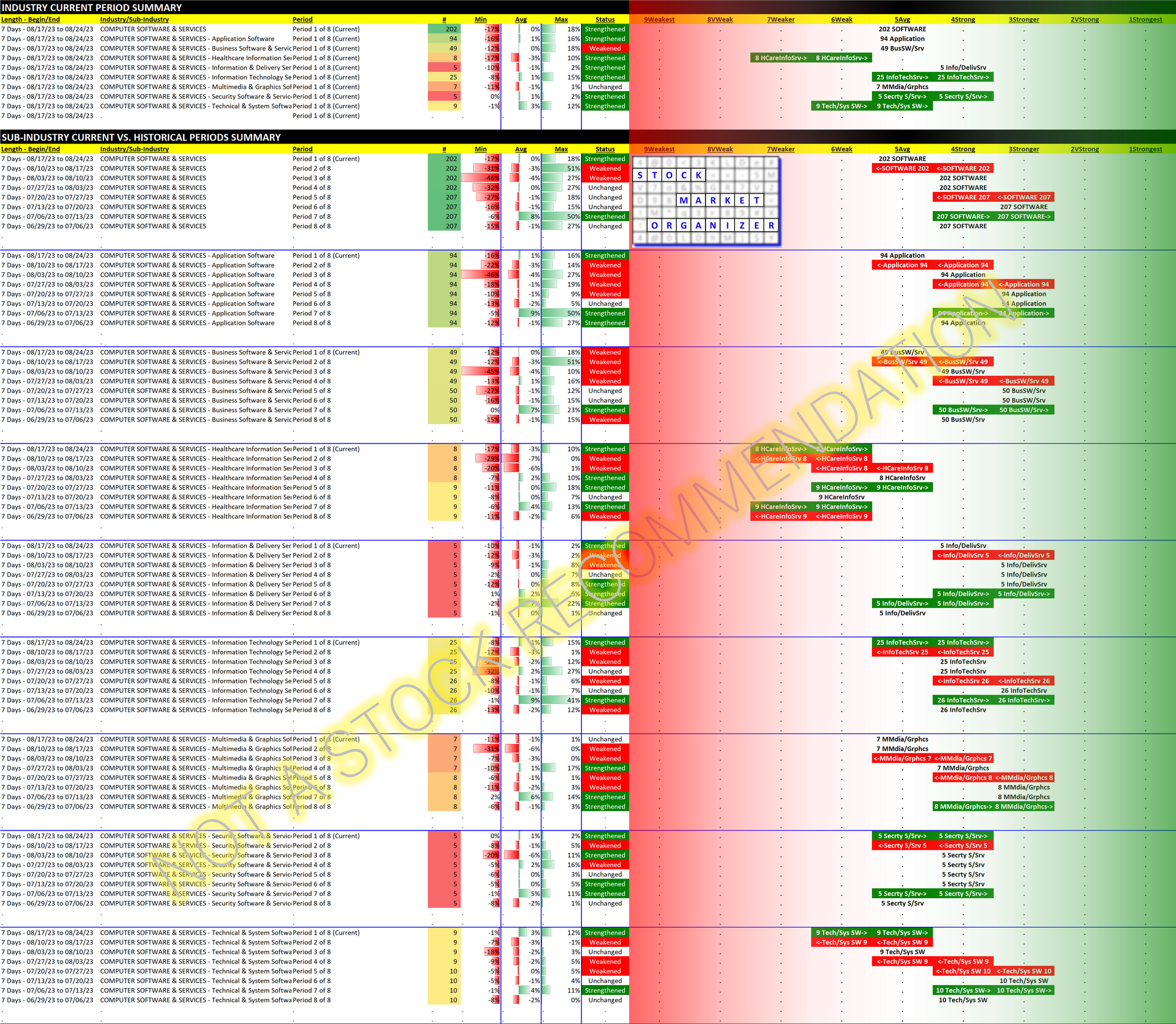 Perhaps surprisingly given the overall market in recent weeks, its own recent weakening, and today's broad weakness in the face of NVDA/Nvidia's stellar earnings report, Computer Software & Services turned in a decent week with 4 strengthening sub-industries.