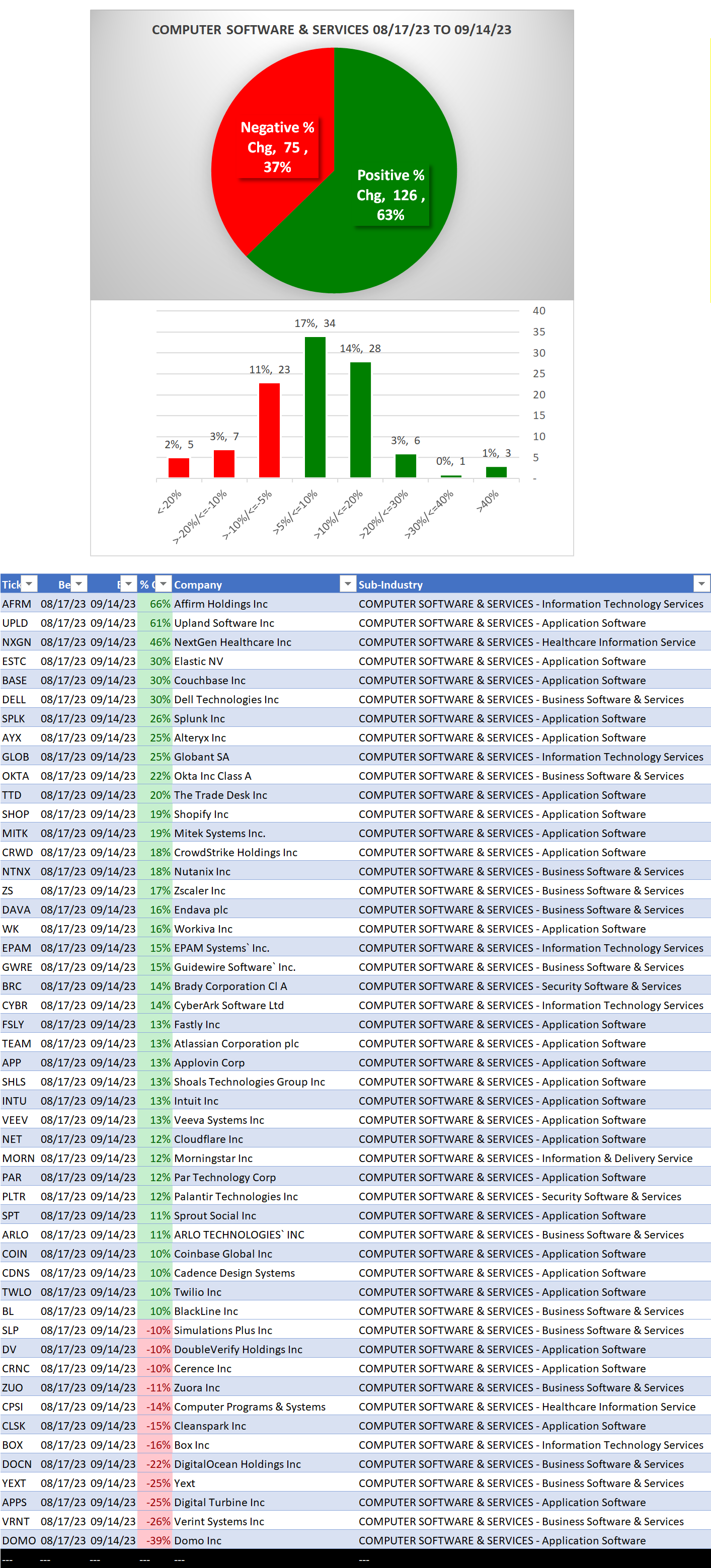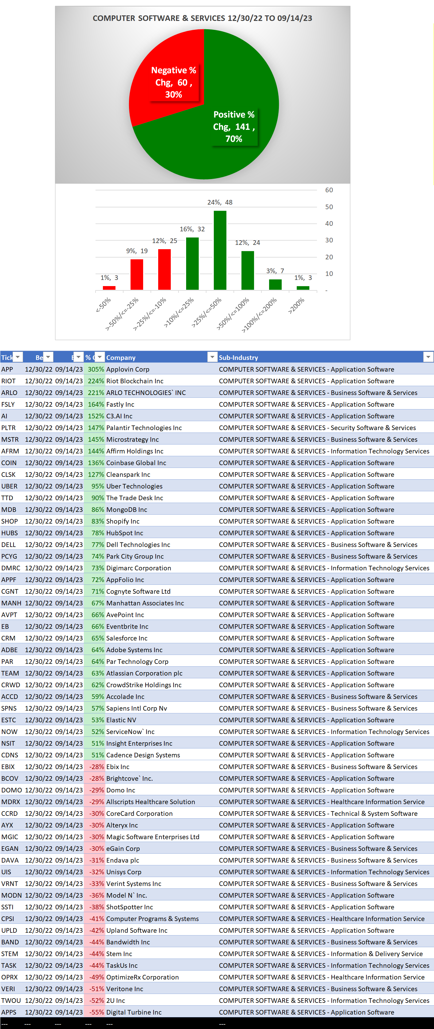 10 Biggest Market Cap stocks: MSFT, ORCL, ADBE, CRM, ACN, INTU, IBM, NOW, ADP, UBER