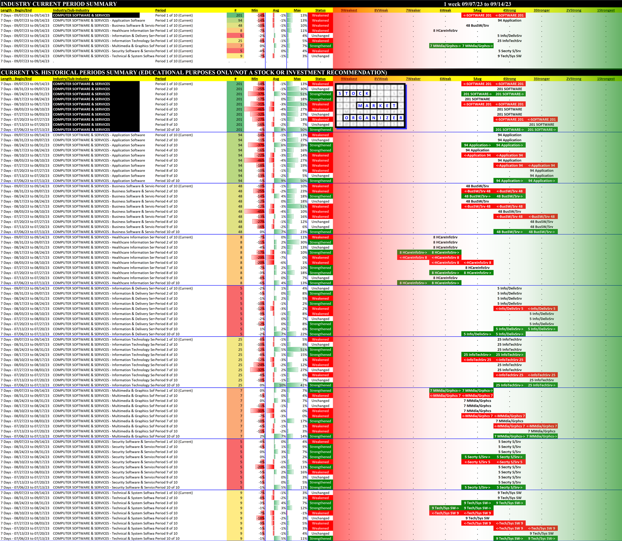 10-Week Week-by-Week Industry/Sub-industry Strength Comparison