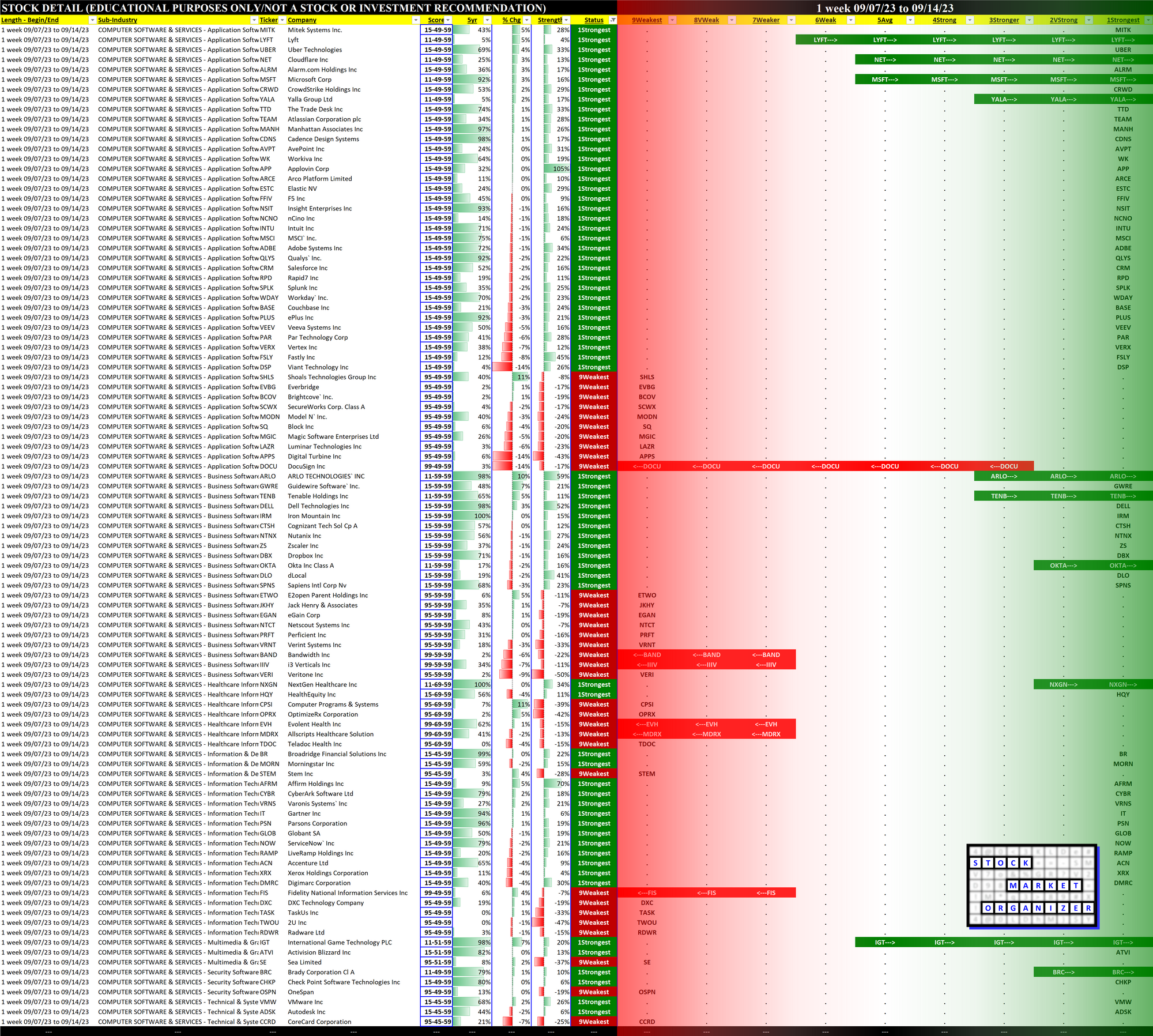 - the Weakest may be prone to large bottom-fishing/short-covering-driven pops... and may also be primed for bigger and faster falls. (Not guaranteed and not a recommendation - weak stocks in weakening sub-industries may be better shorts than high-flyers.)