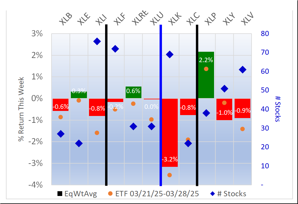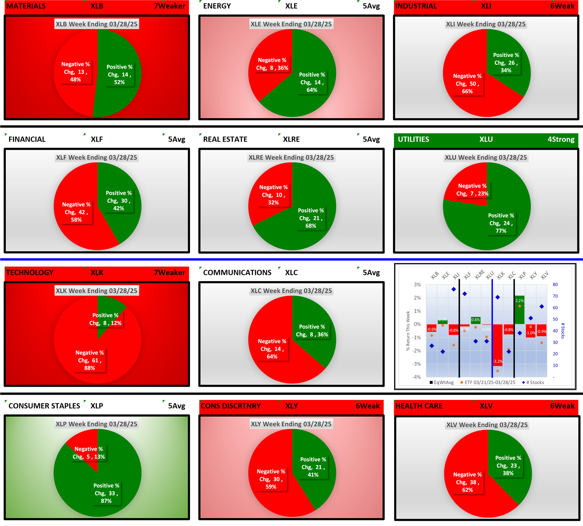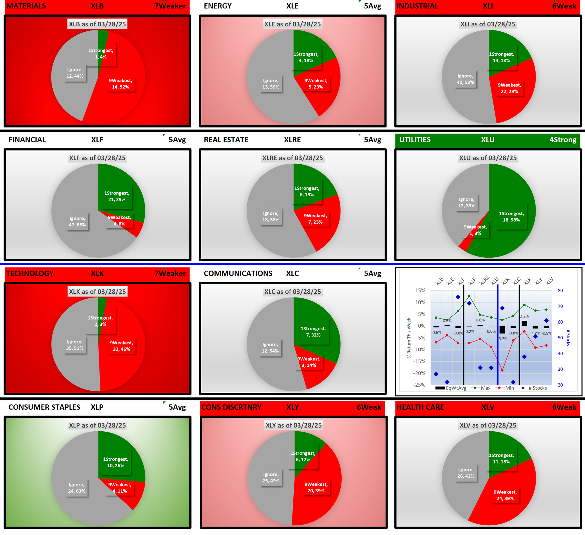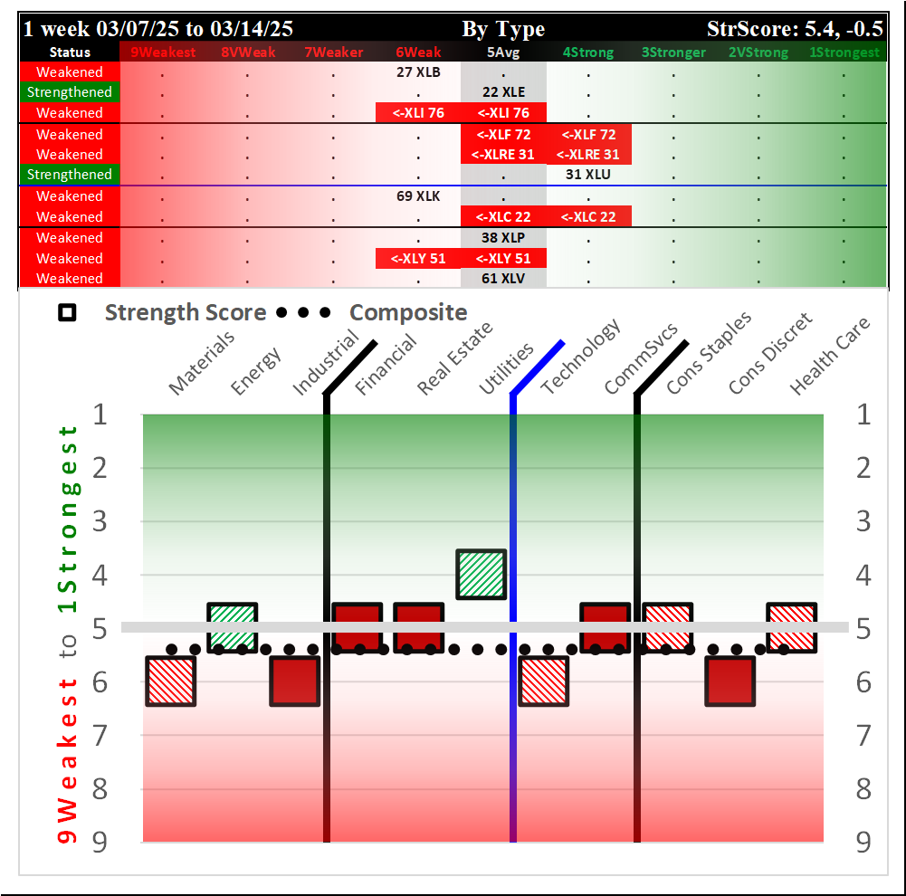 SPDR Sector ETFs Fri 2025-03-28: 5.7 Strength Score (Weakened -0.2)