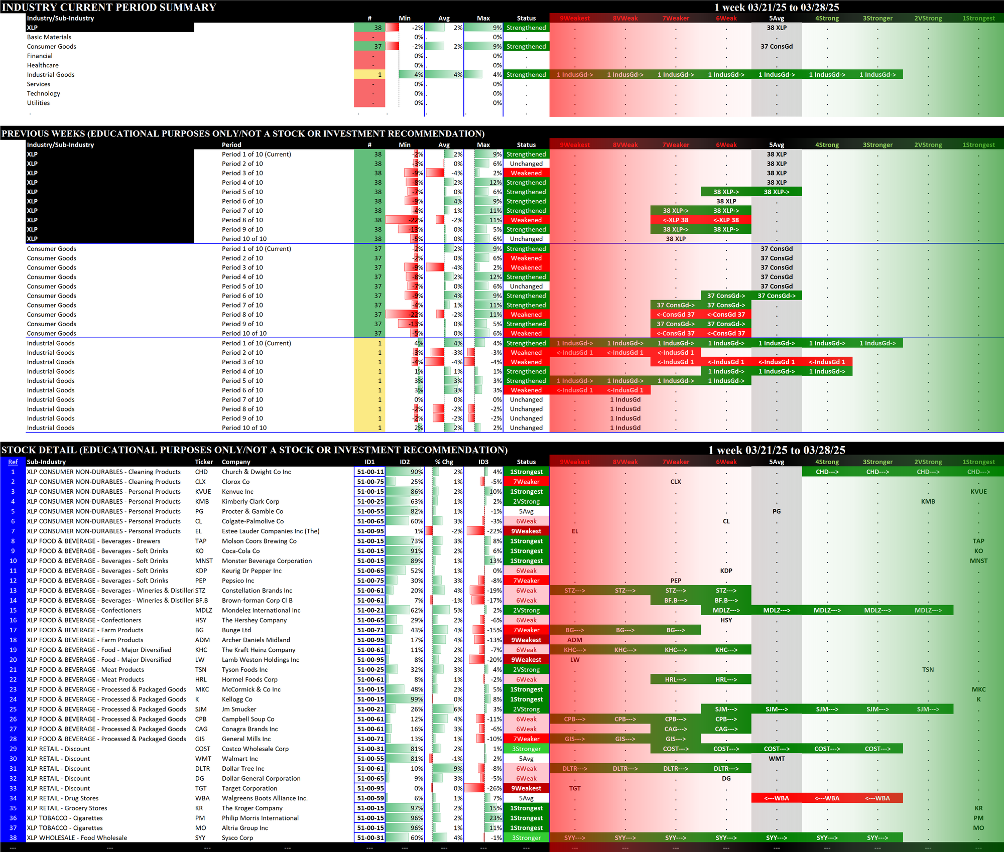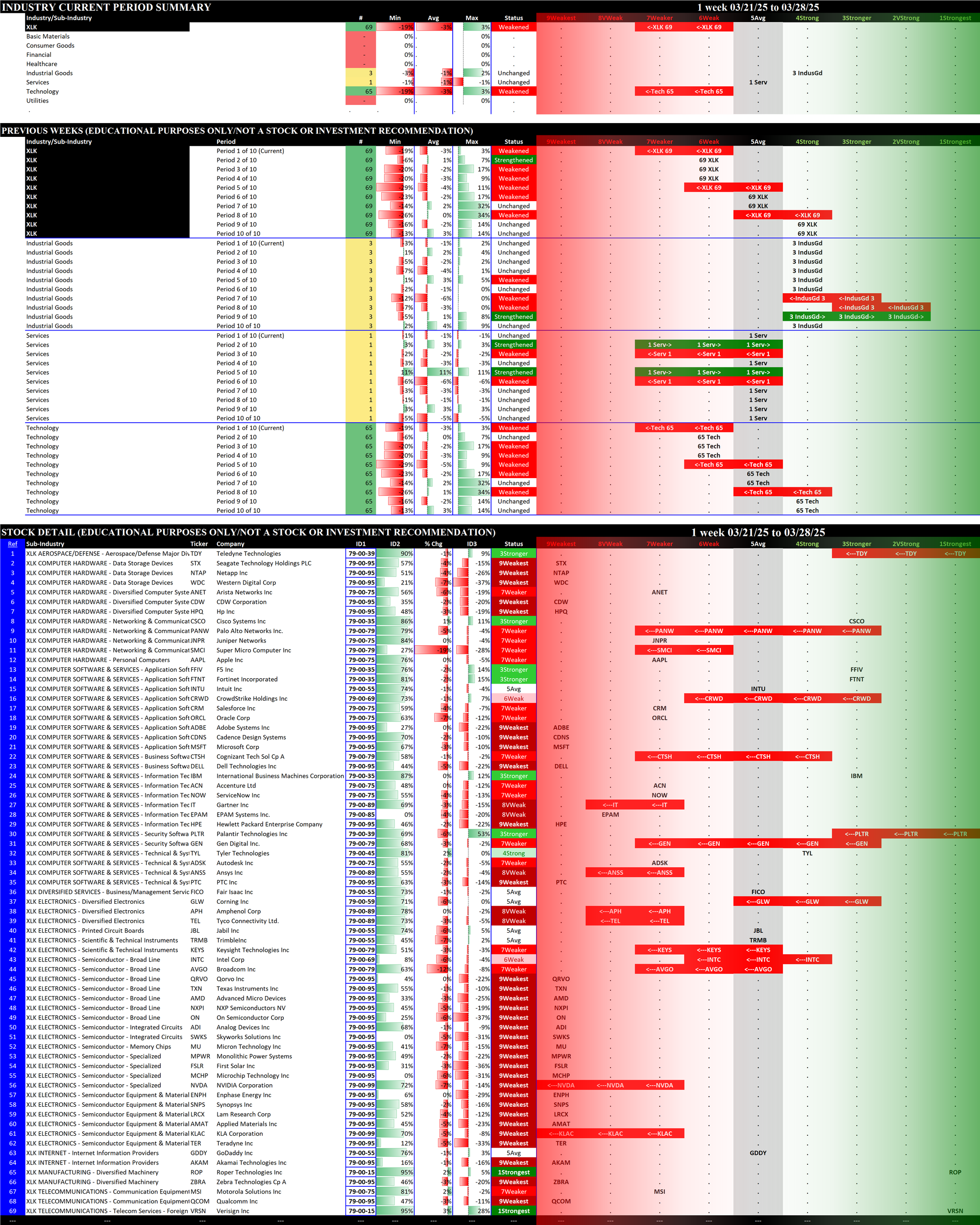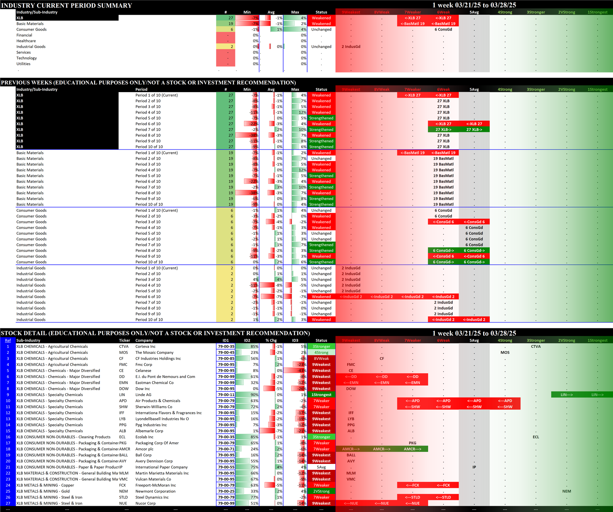 03/14/2025 = Weakened, 03/21/2025 = Weakened, 03/28/2025 = Weakened.