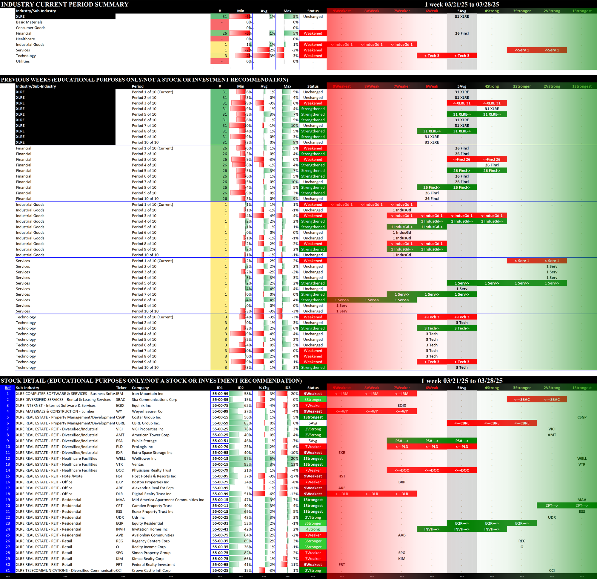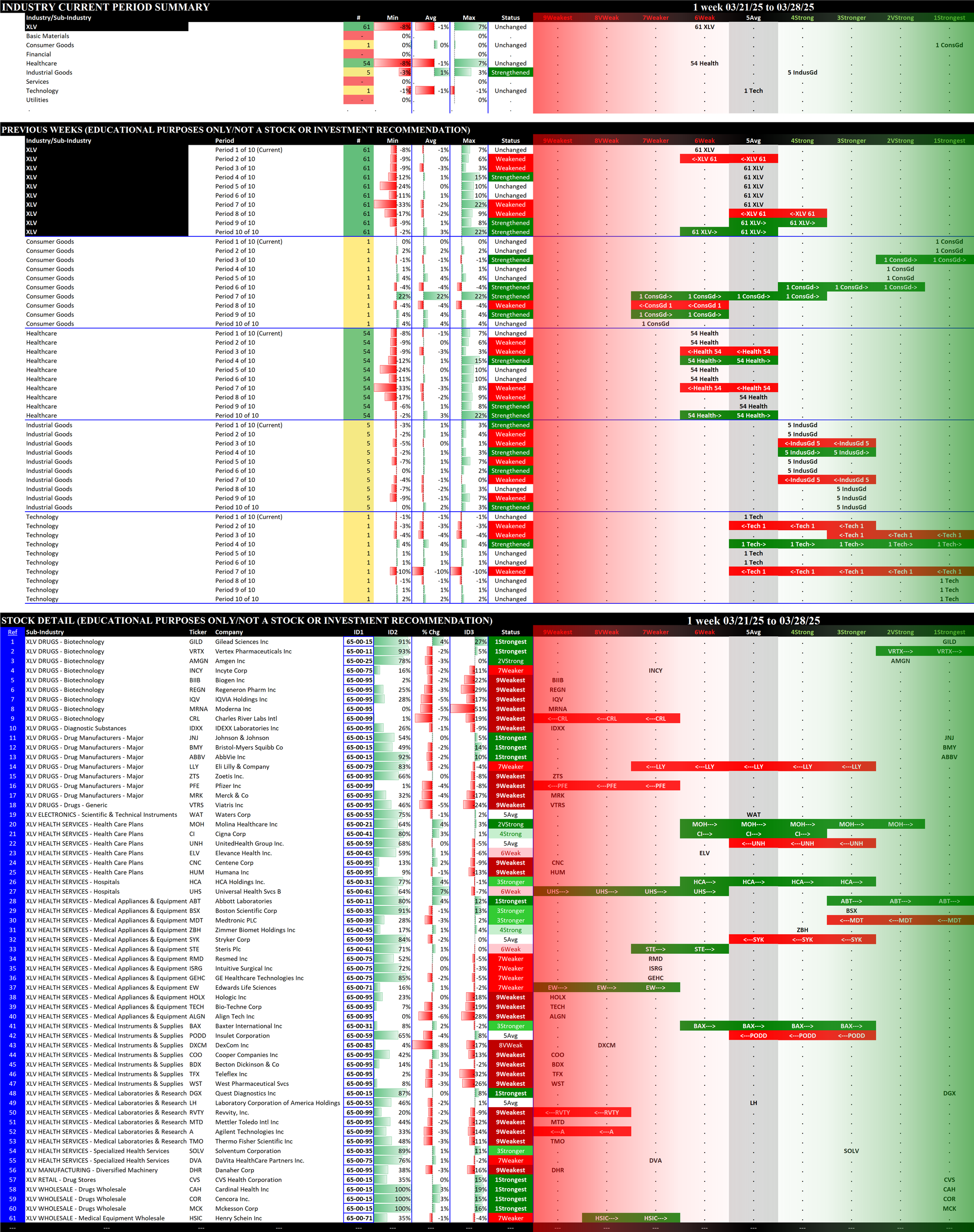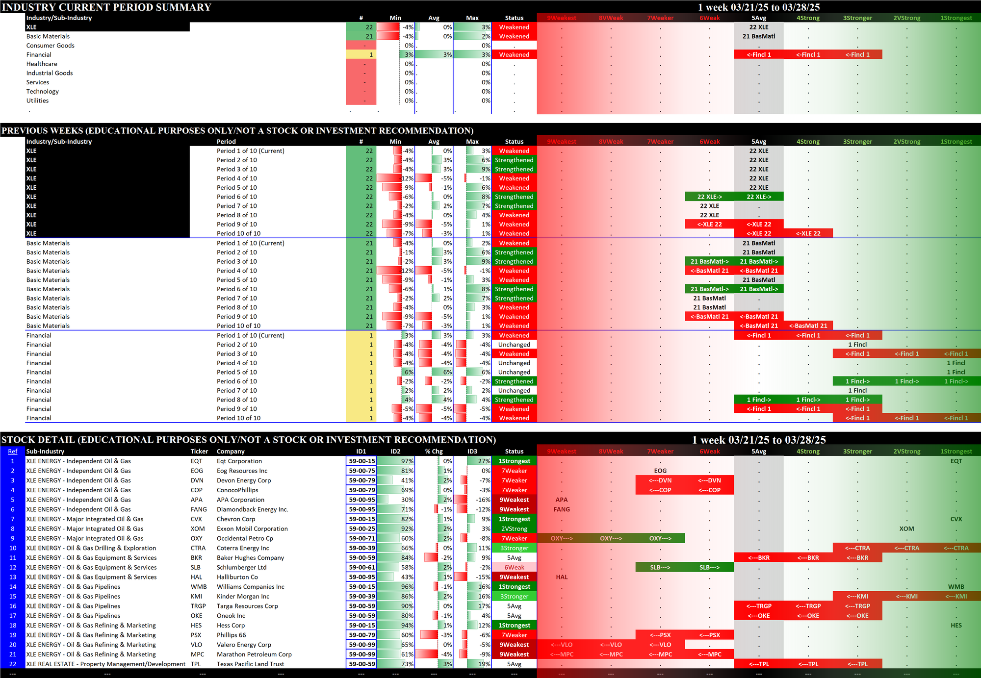 03/14/2025 = Weakened, 03/21/2025 = Weakened, 03/28/2025 = Weakened.