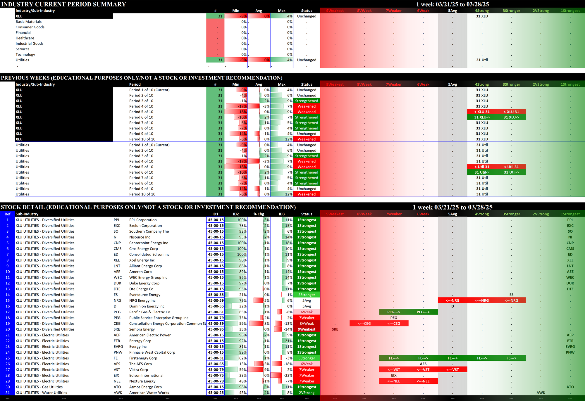 2.9 XLU Utilities (31 stocks, small/mid-sized), Unchanged at 4Strong = BEST