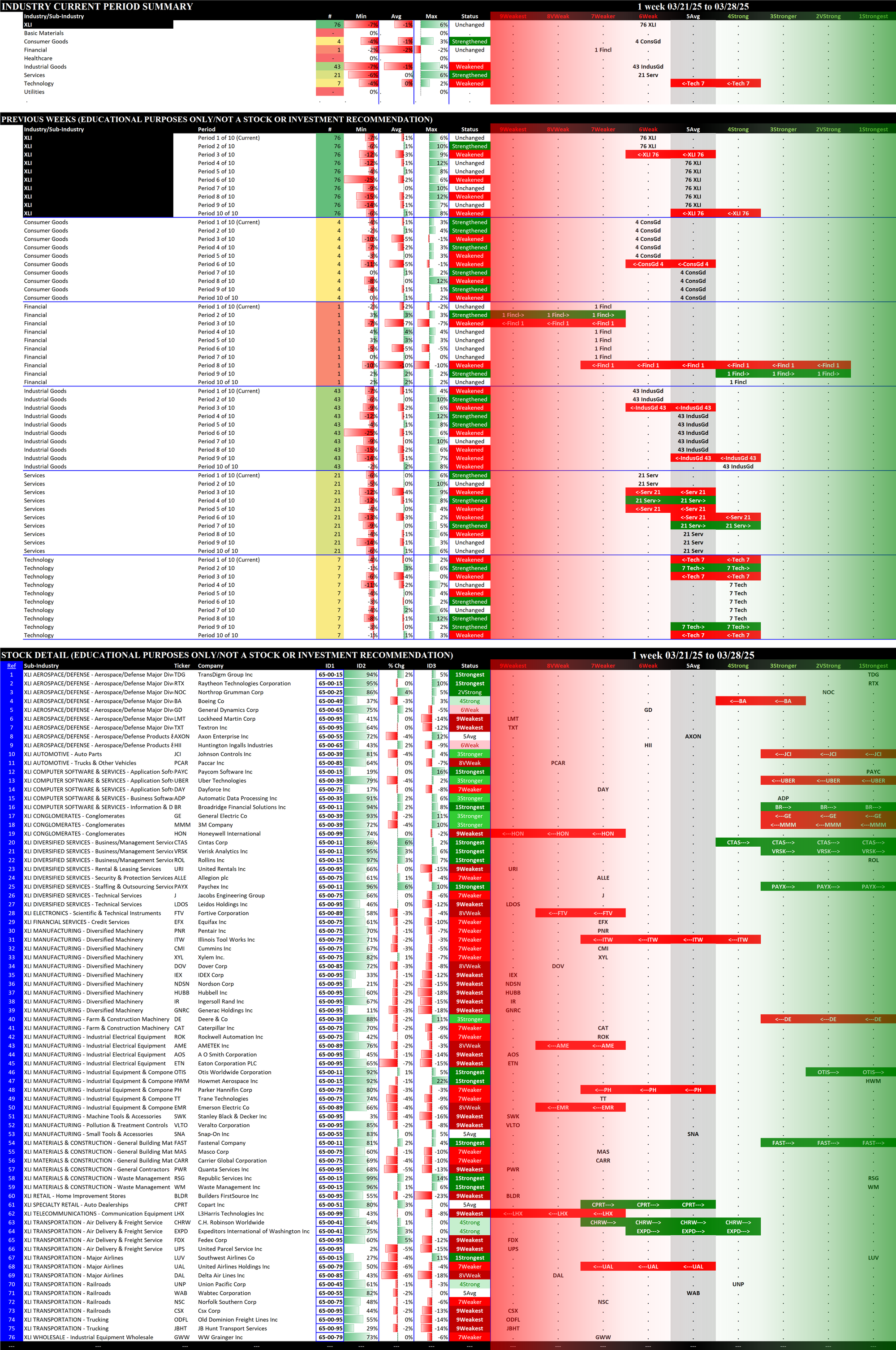 2.5 XLI Industrial (76 stocks, large), Unchanged at 6Weak