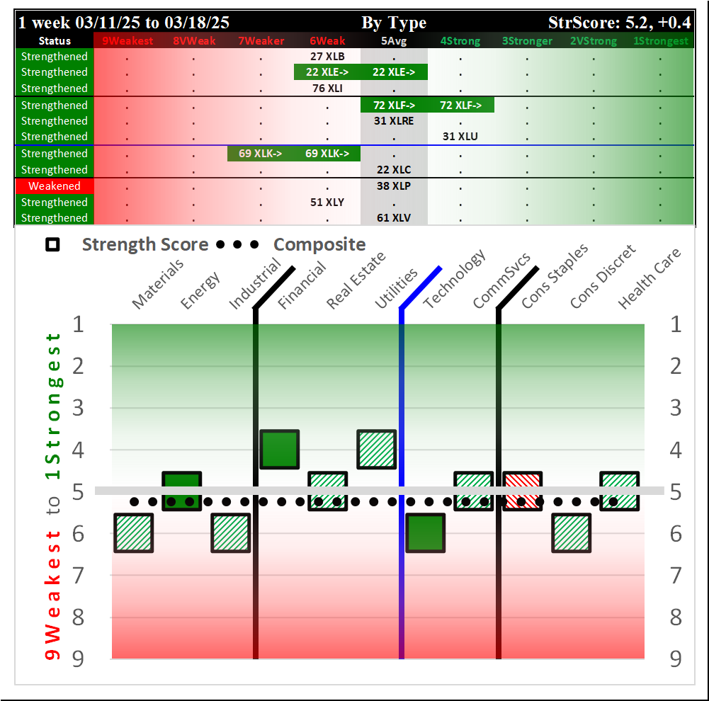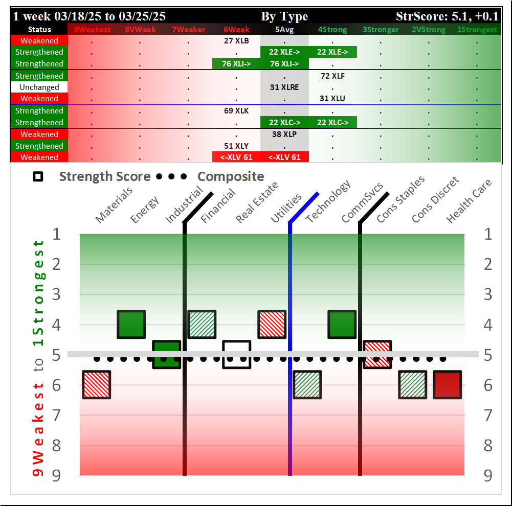 Last Tuesday's report is available here (SPDR Sector ETFs Tue 2025-03-25: 5.1 Strength Score Strengthened +0.1).