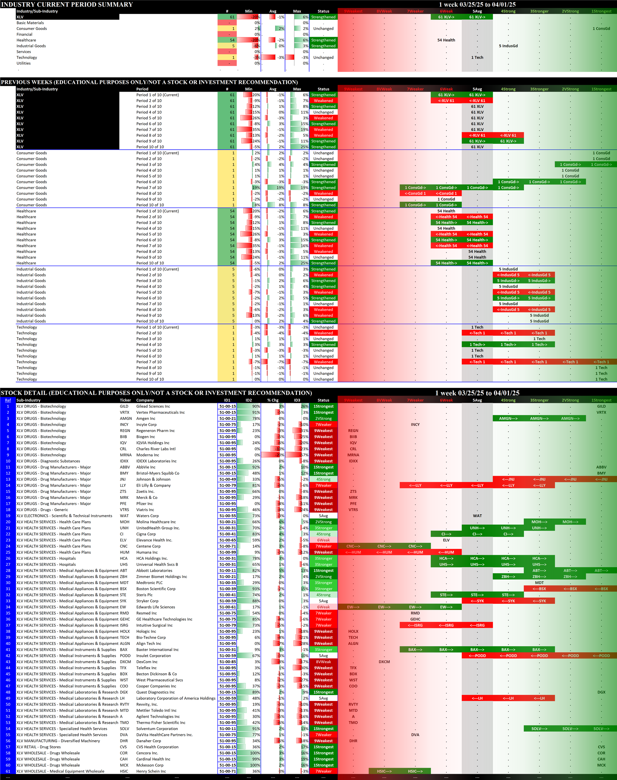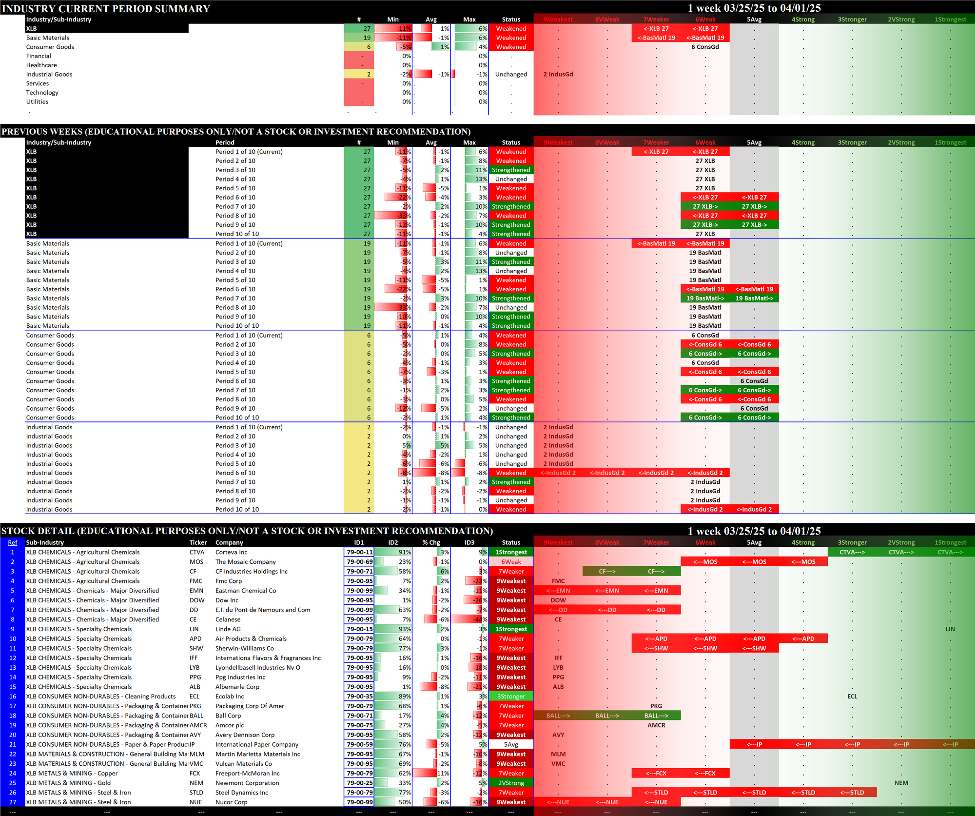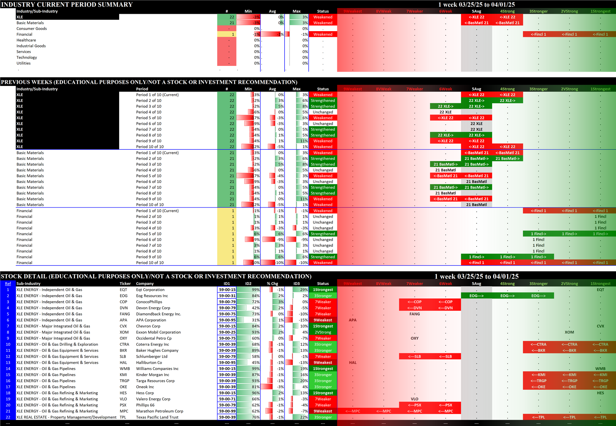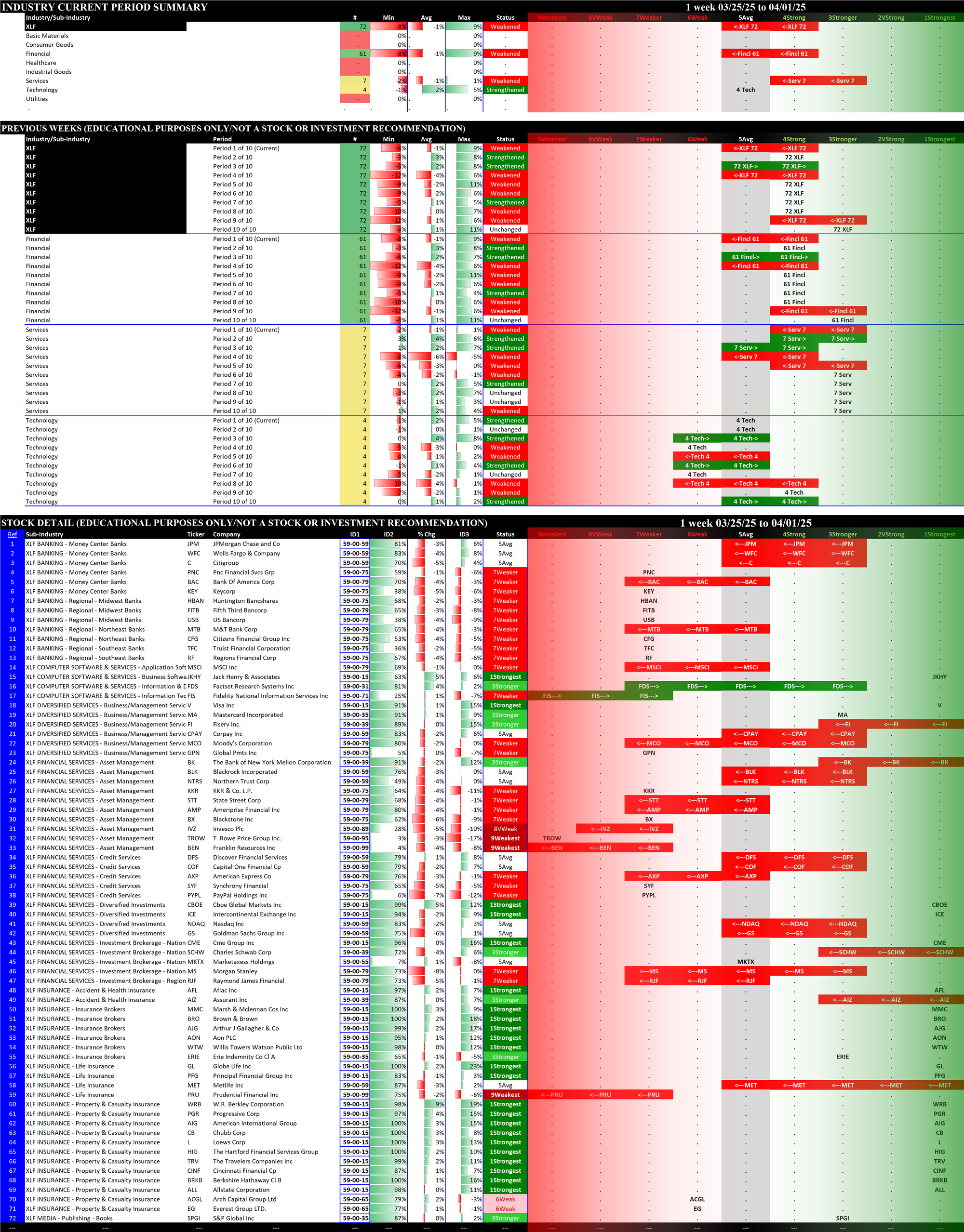 03/18/2025 =Strengthened, 03/25/2025 = Strengthened, 04/01/2025 = Weakened.