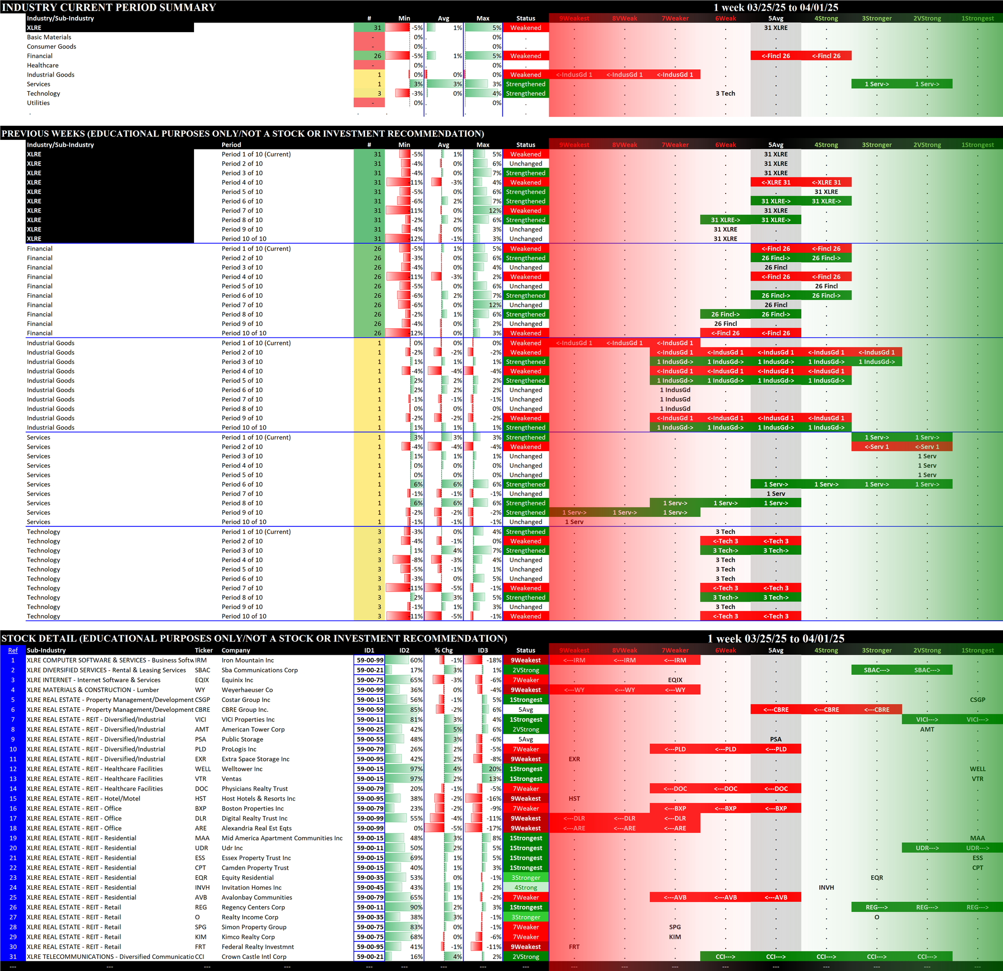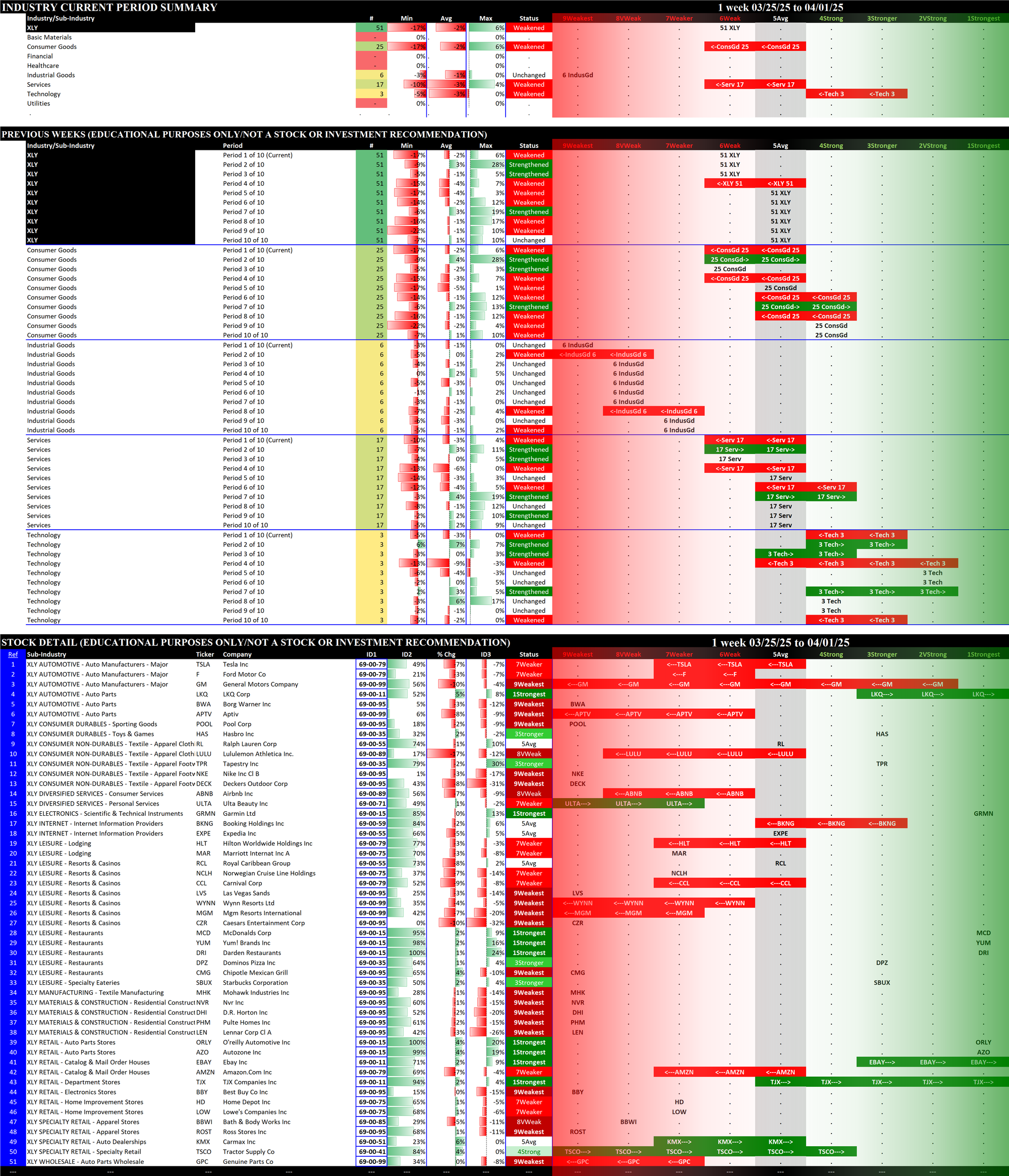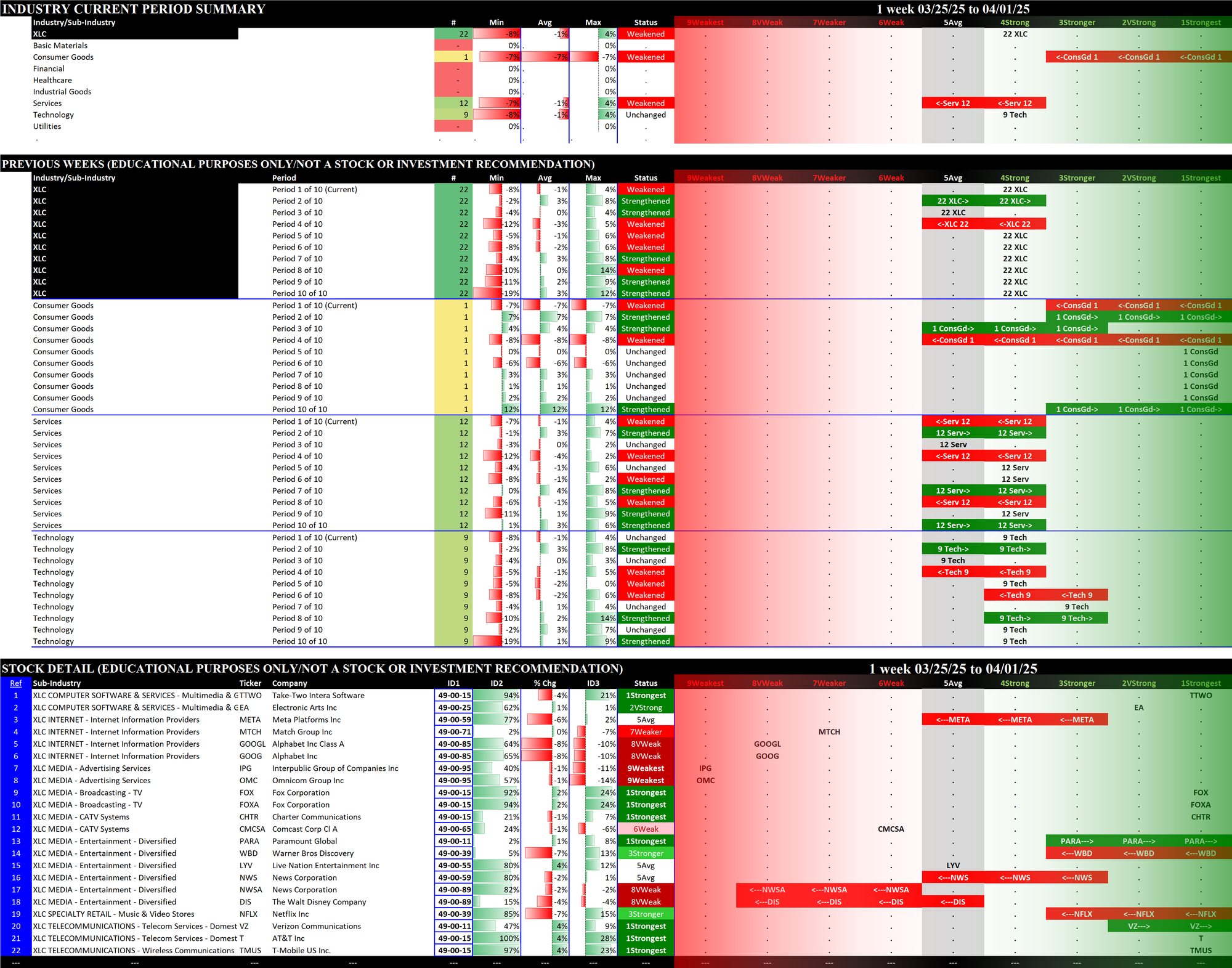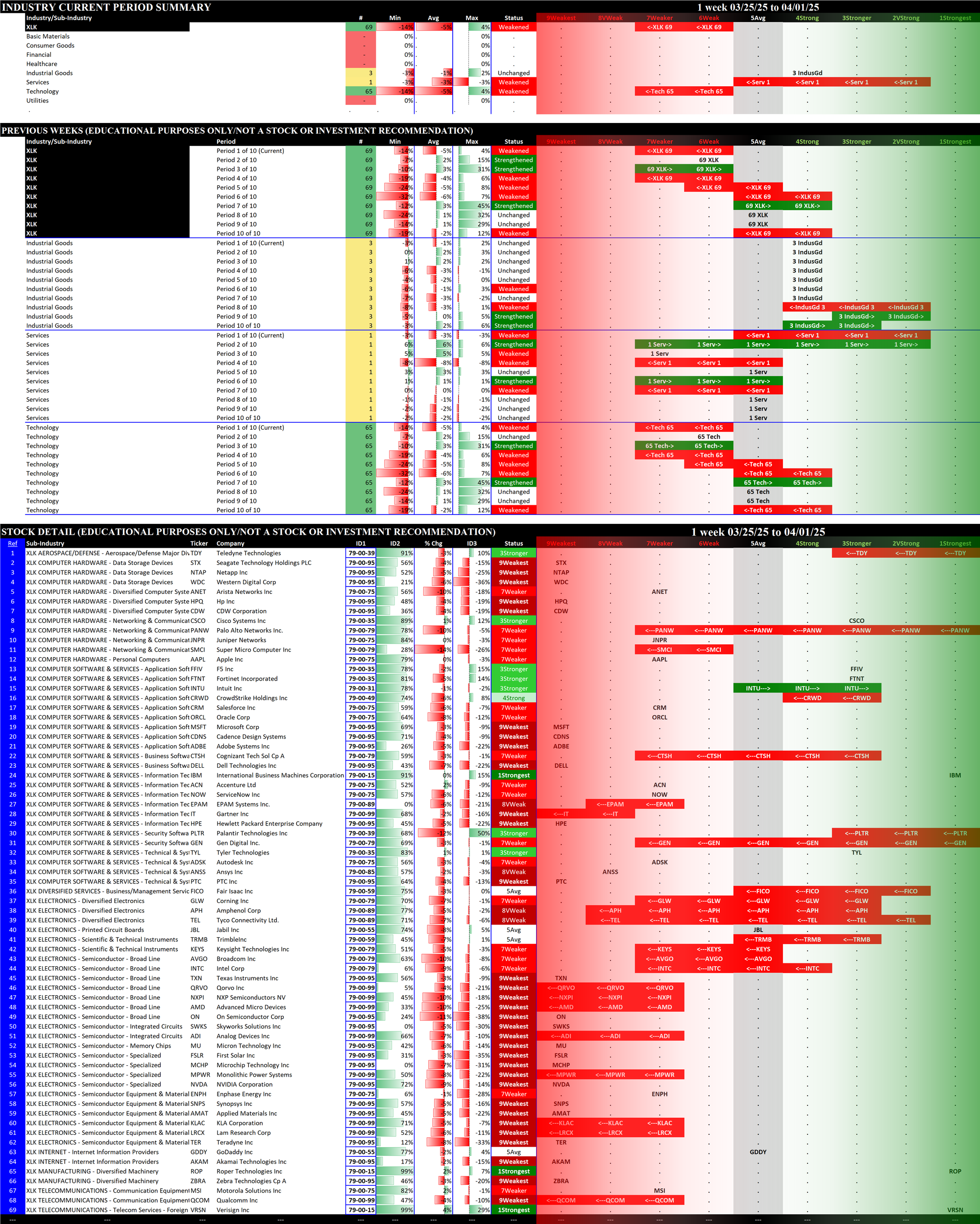03/18/2025 =Strengthened, 03/25/2025 = Strengthened, 04/01/2025 = Weakened.