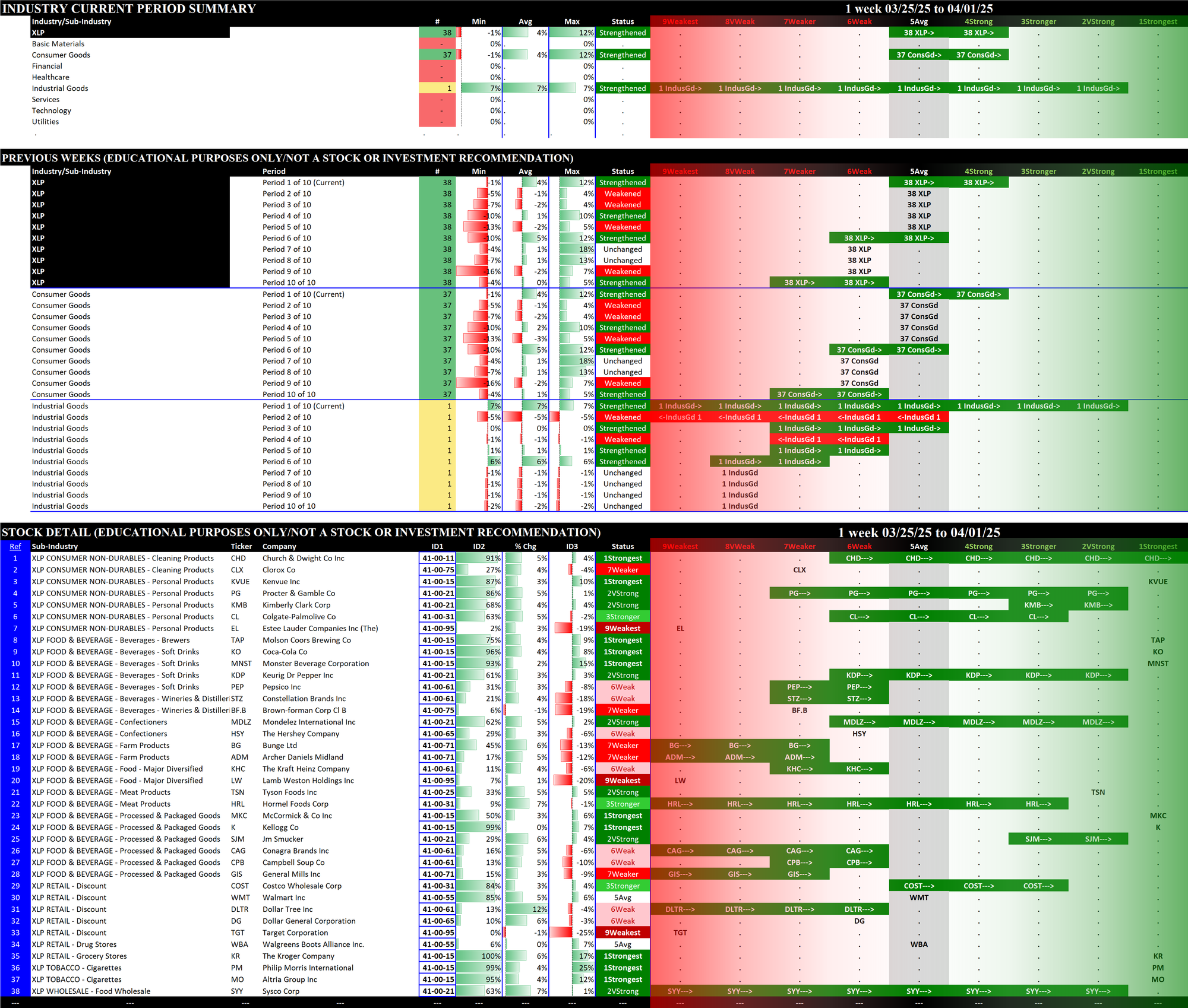 2.7 XLP Consumer Staples (38 stocks, mid-sized), STRENGTHENED RATING TO 4Strong