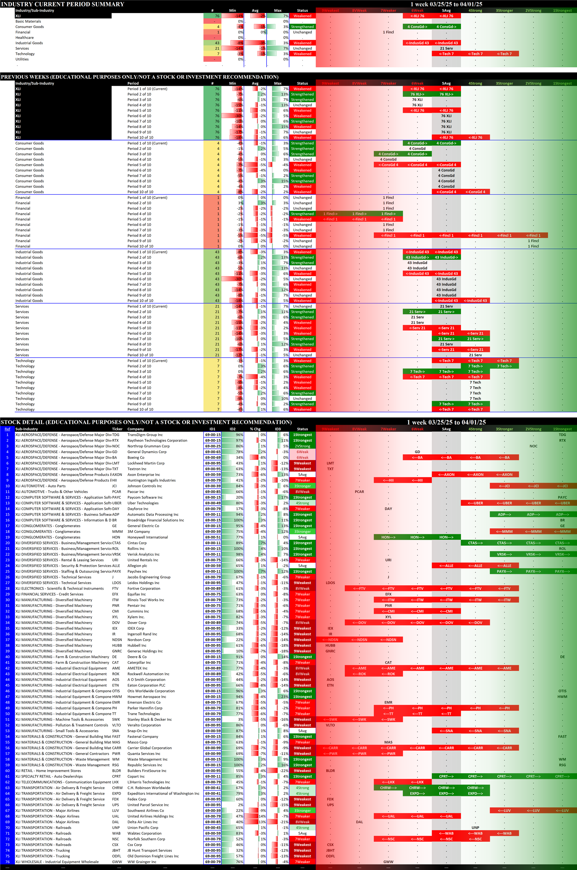 2.5 XLI Industrial (76 stocks, large), WEAKENED RATING TO 6Weak