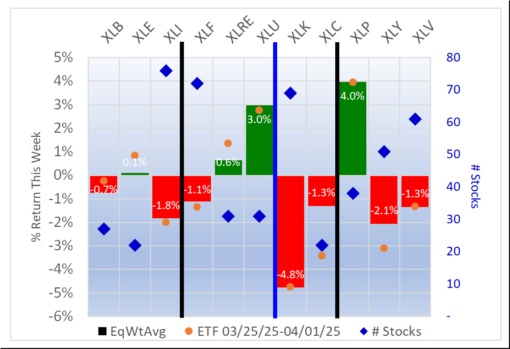 - XLU/Utilities, 3.0% average for 31 stocks