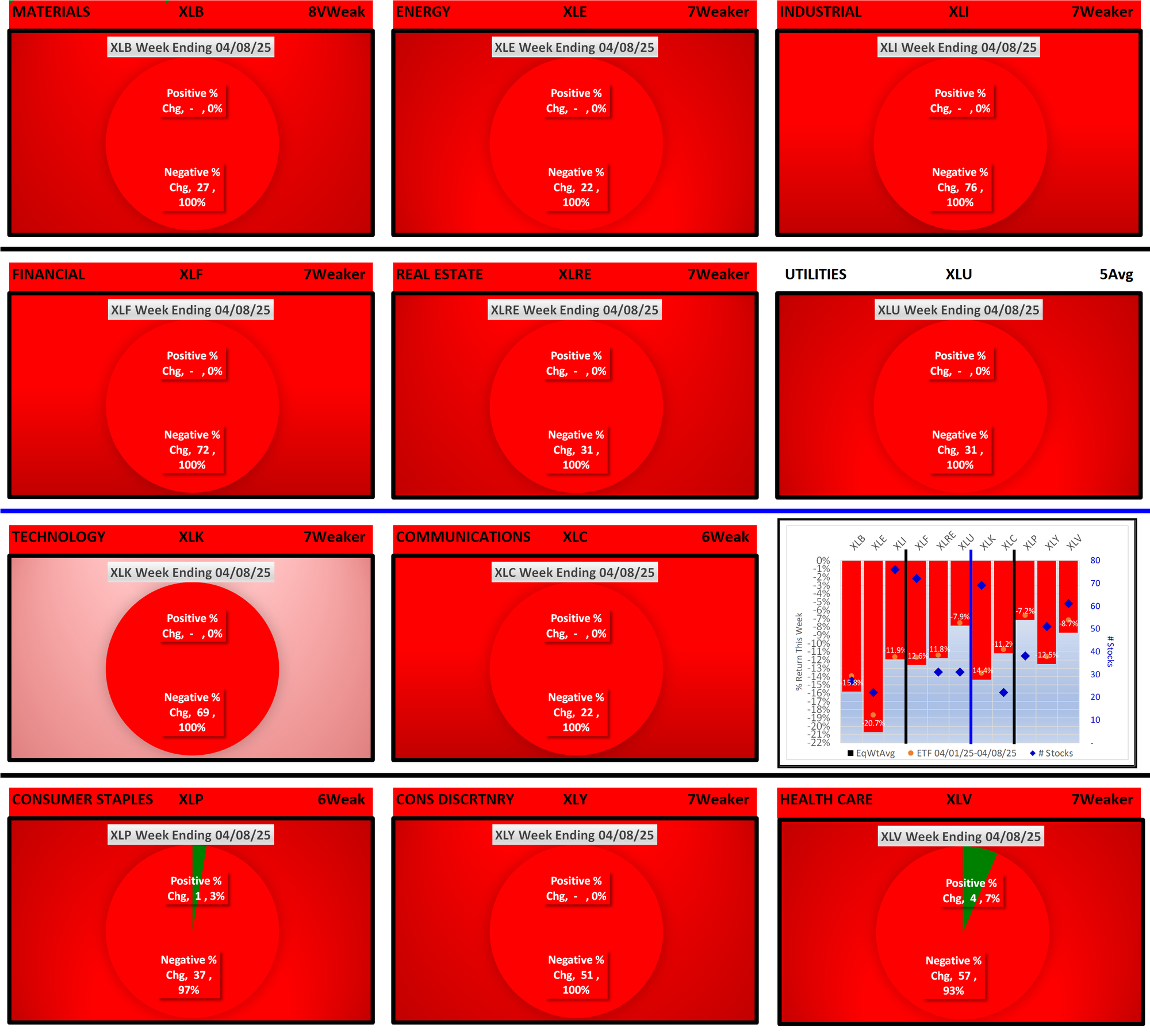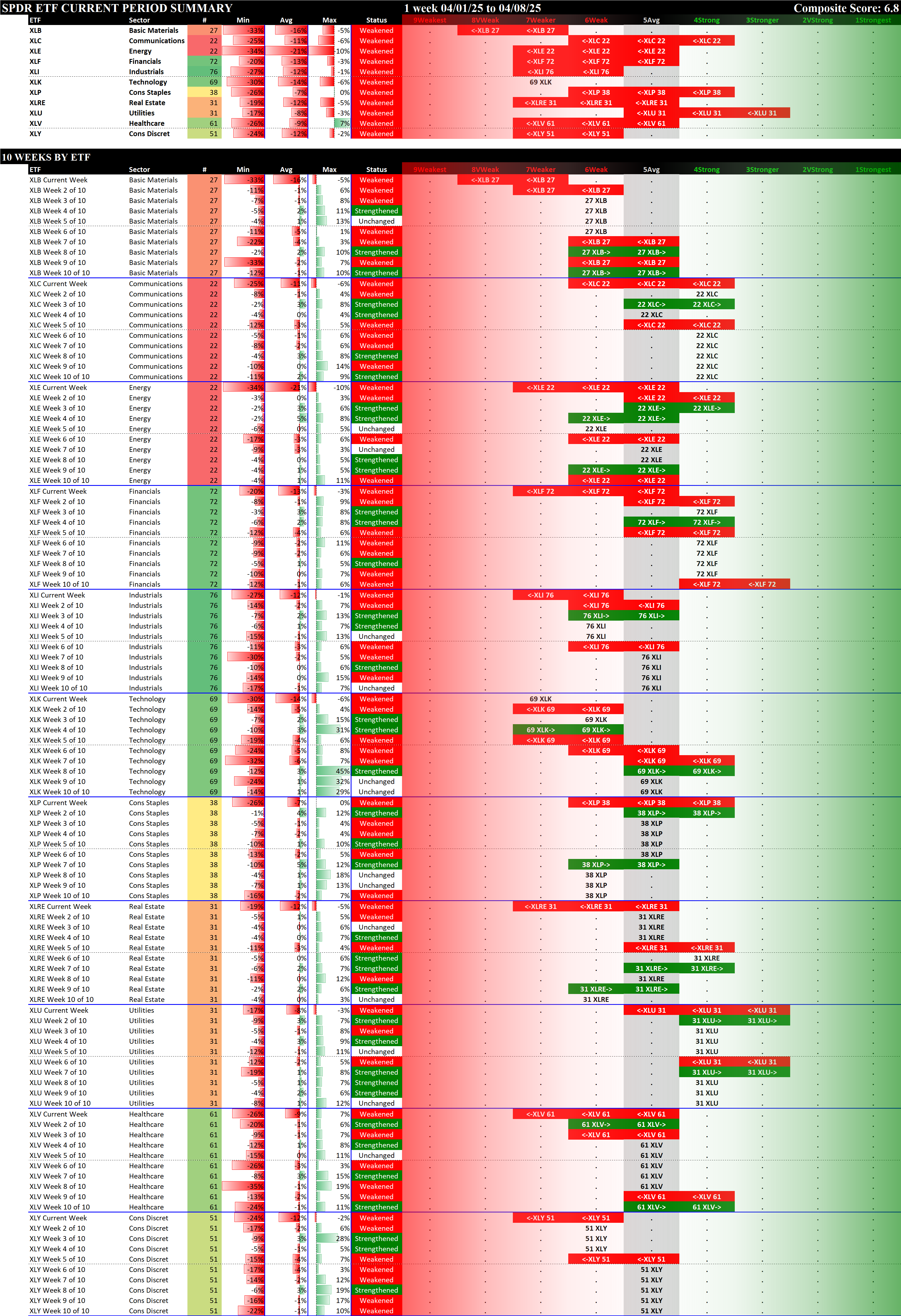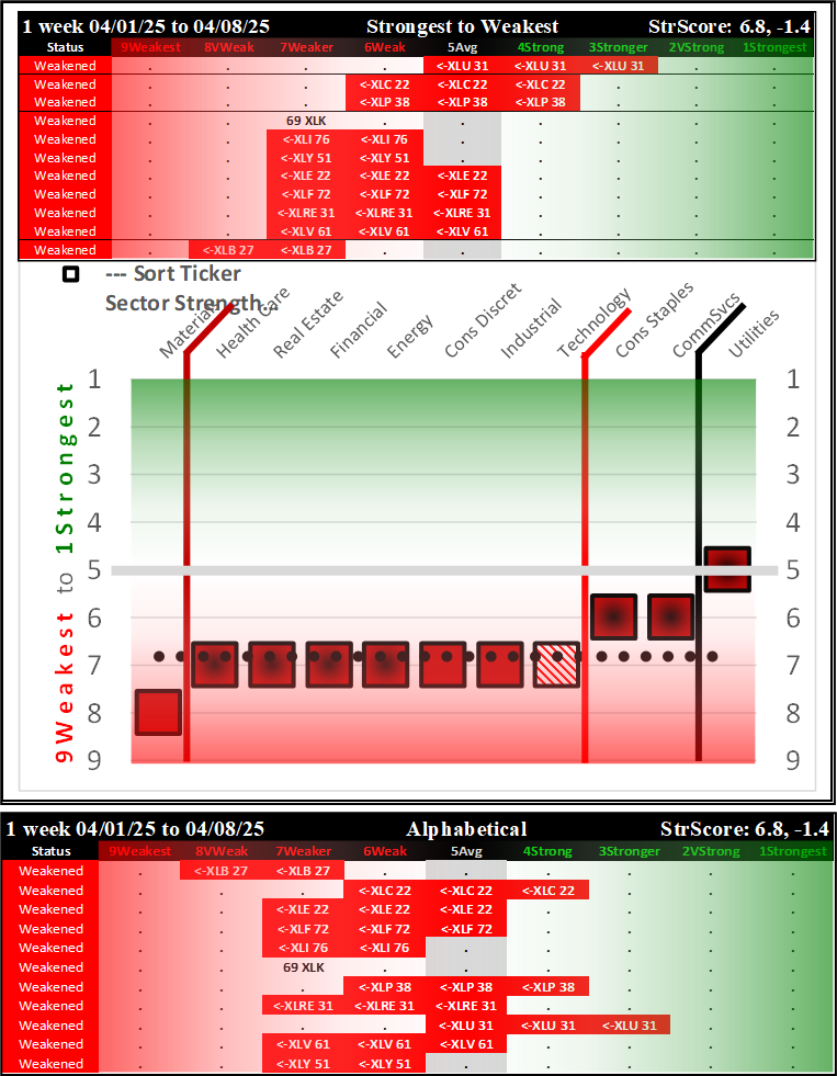 SPDR Sector ETFs Tue 2025-04-08: 6.8 Strength Score (Weakened -1.4)