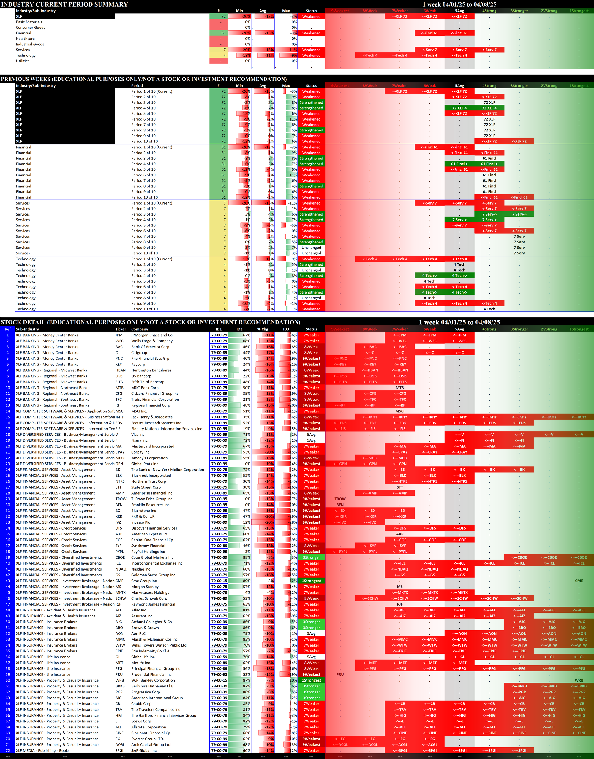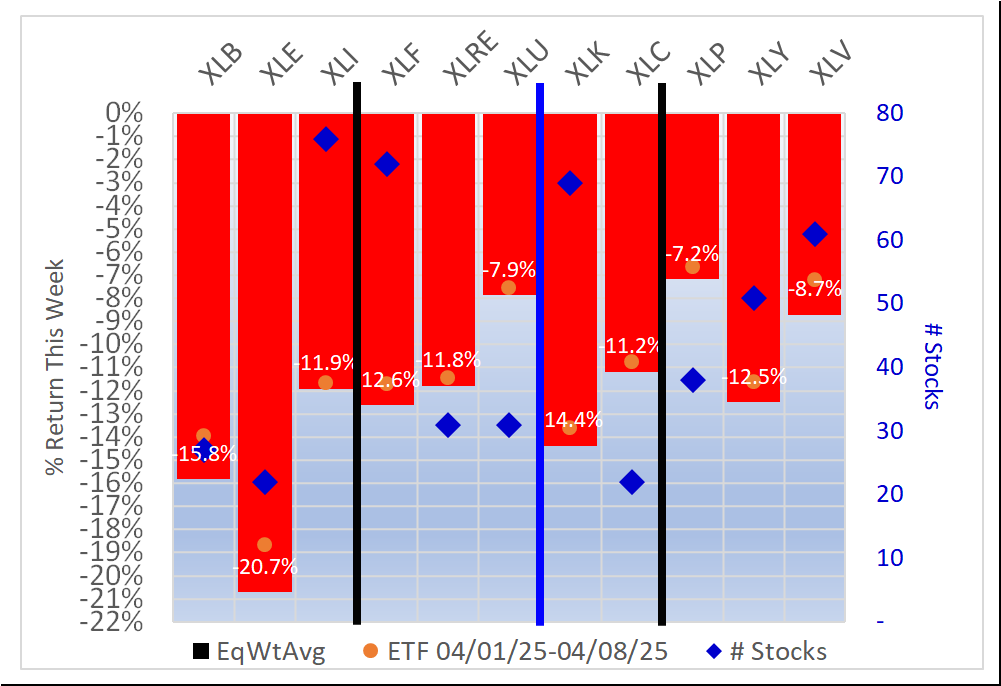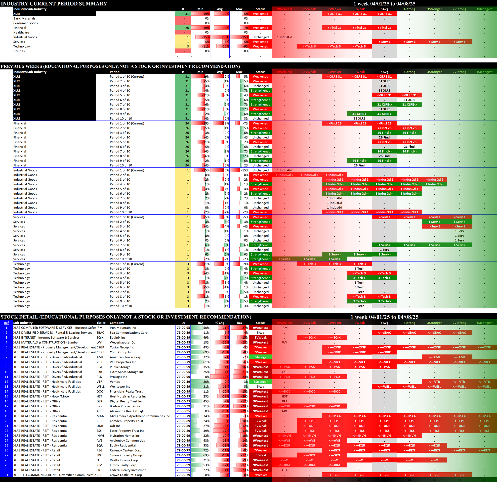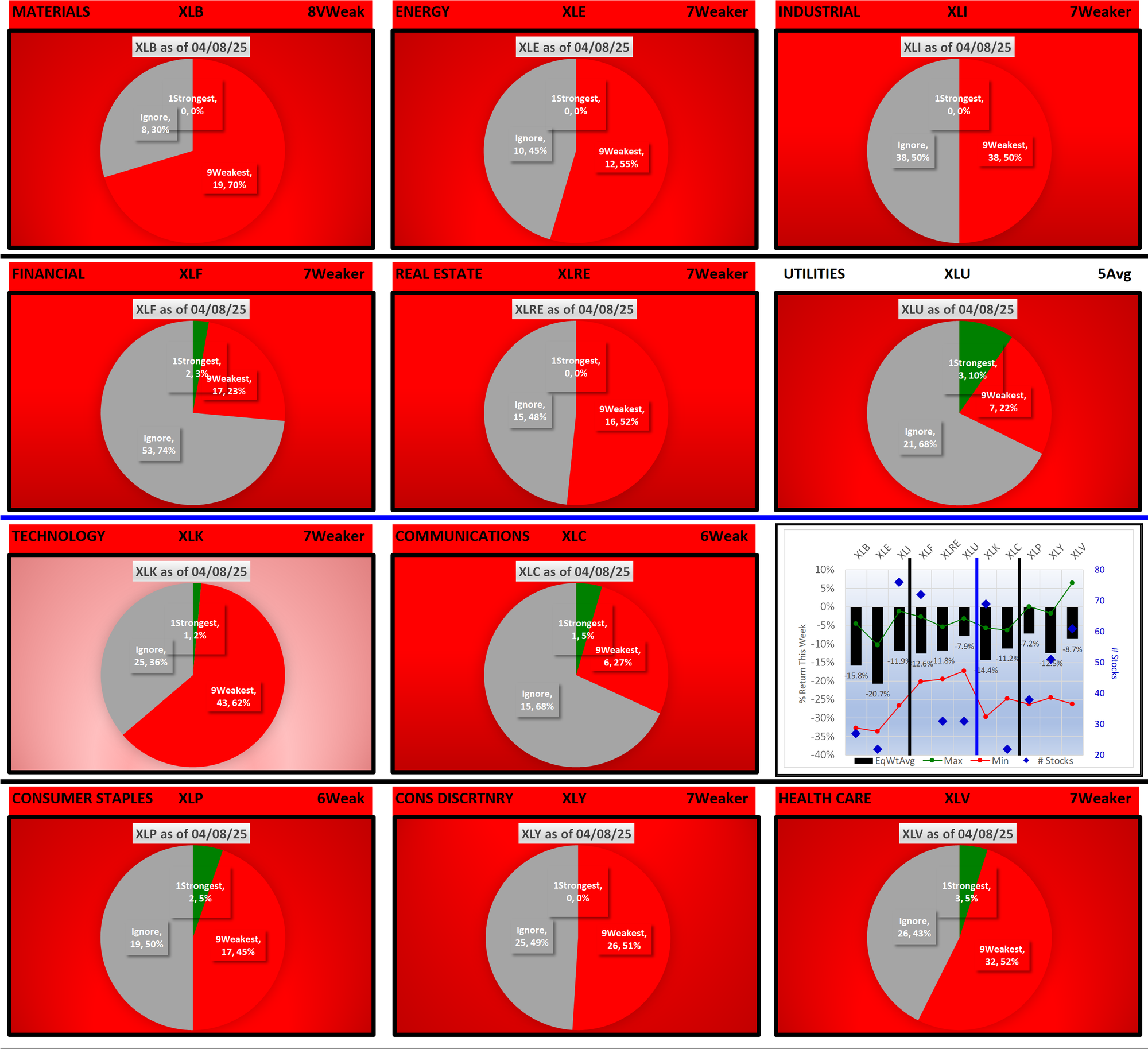 SPDR Sector ETFs Tue 2025-04-08: 6.8 Strength Score (Weakened -1.4)