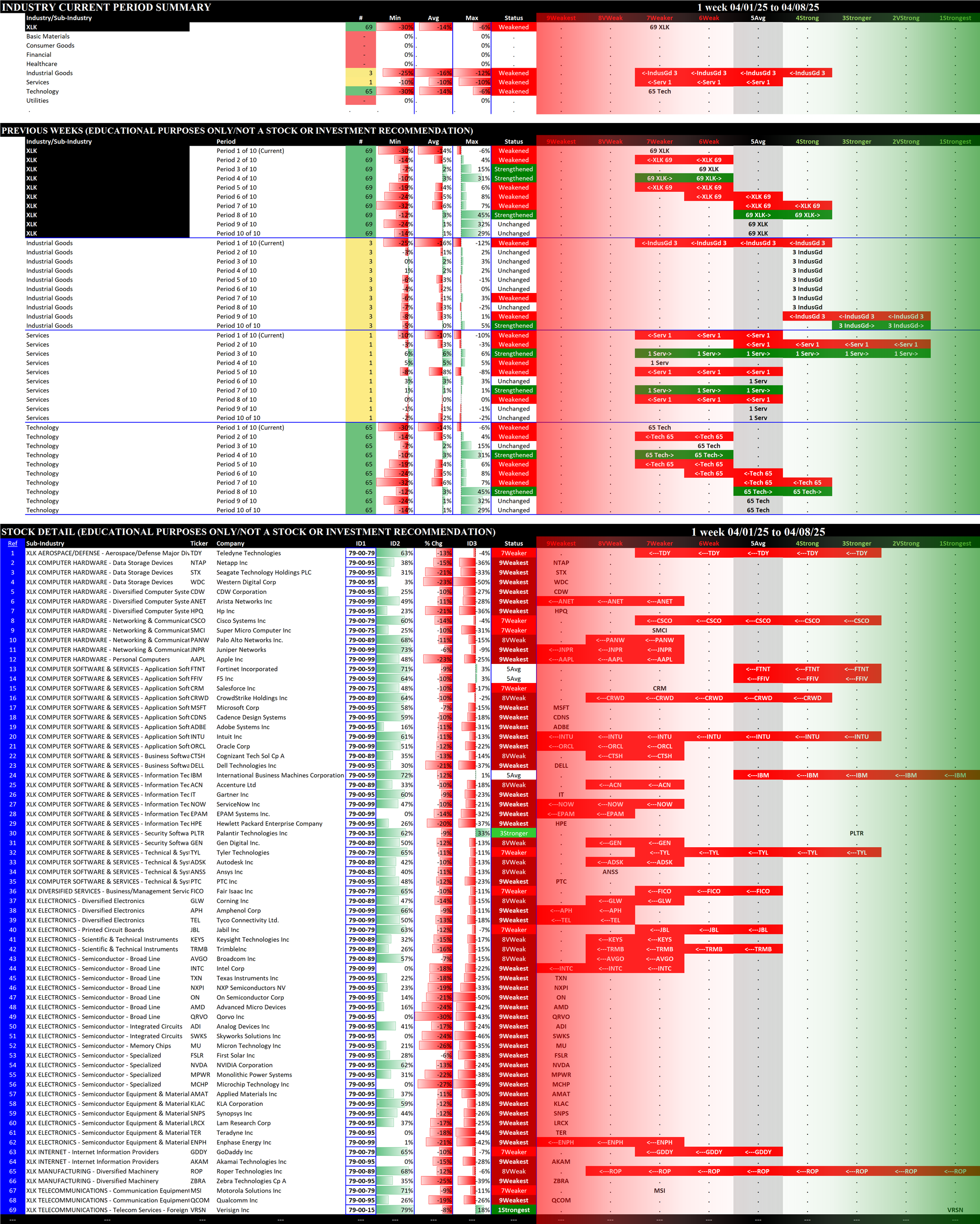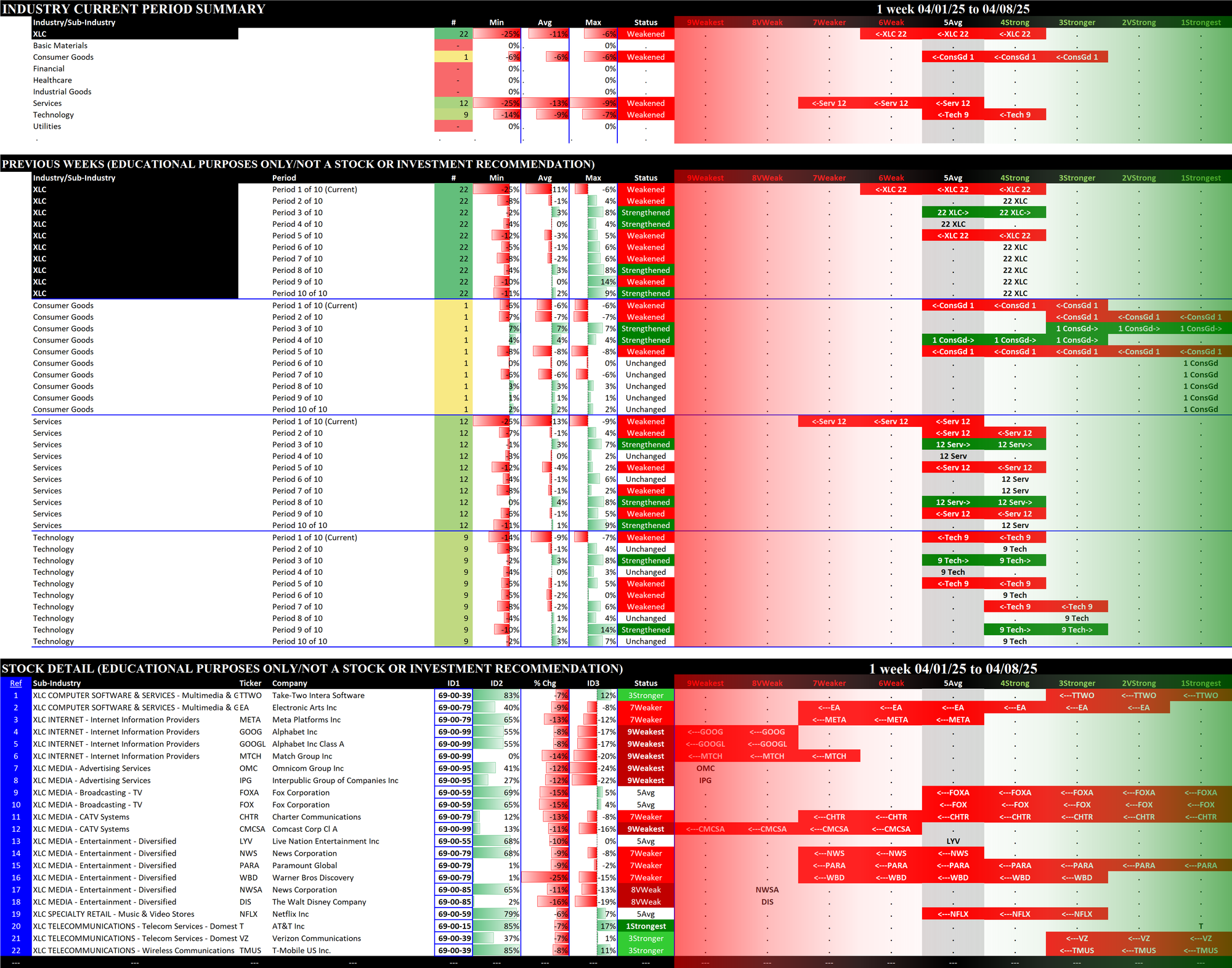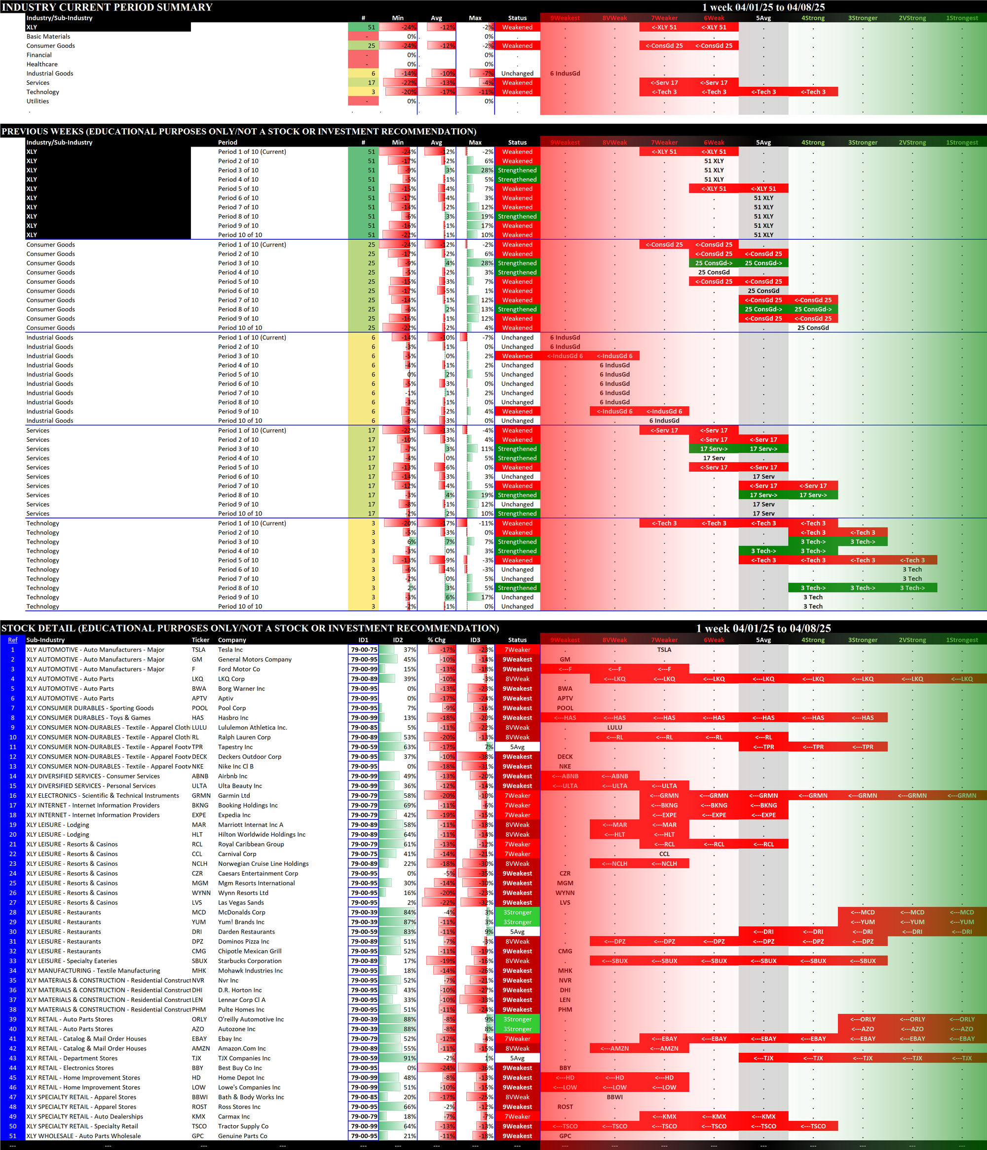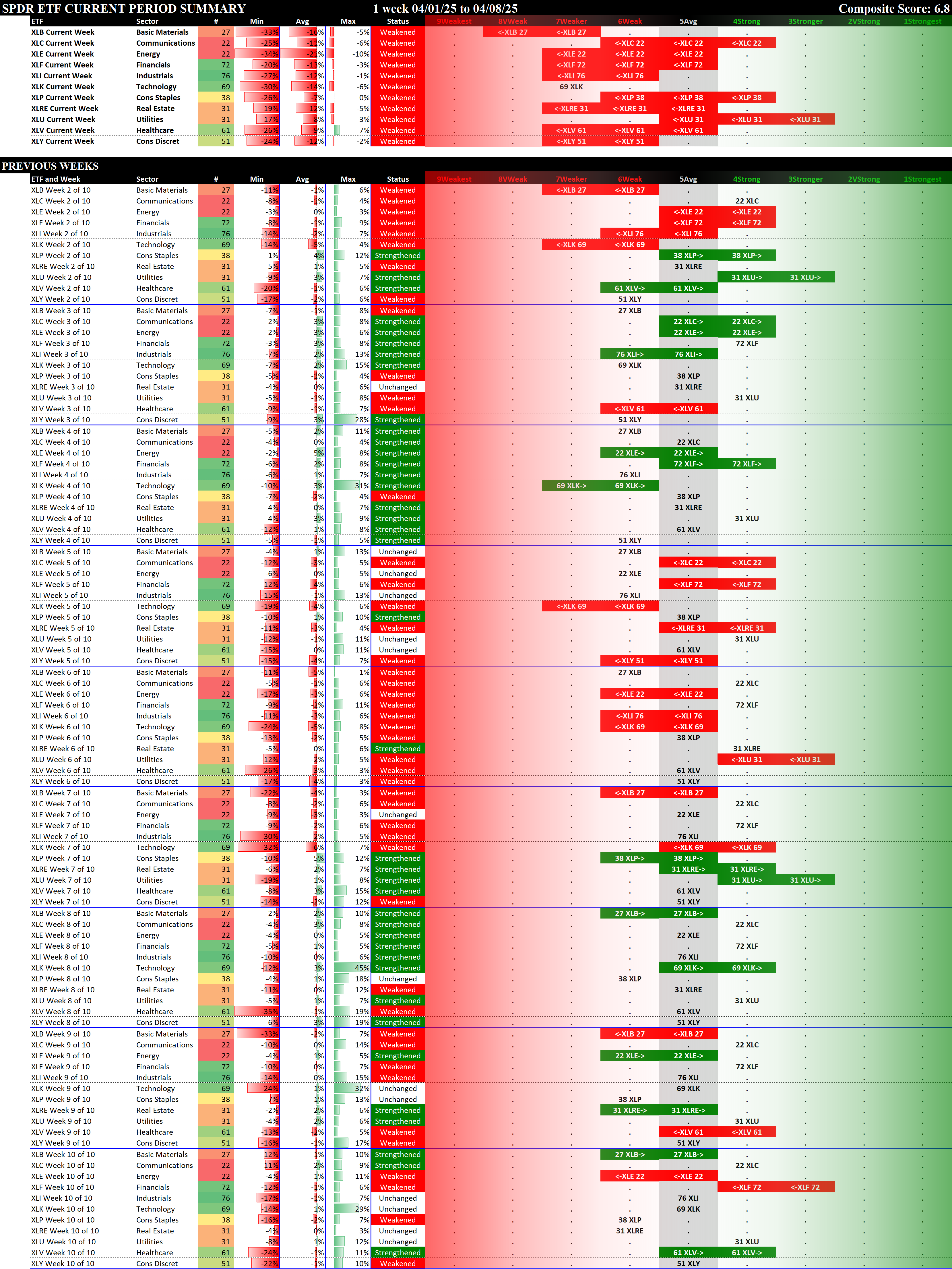 Last Tuesday's report is available here (SPDR Sector ETFs Tue 2025-04-01: 5.4 Strength Score Weakened -0.3).