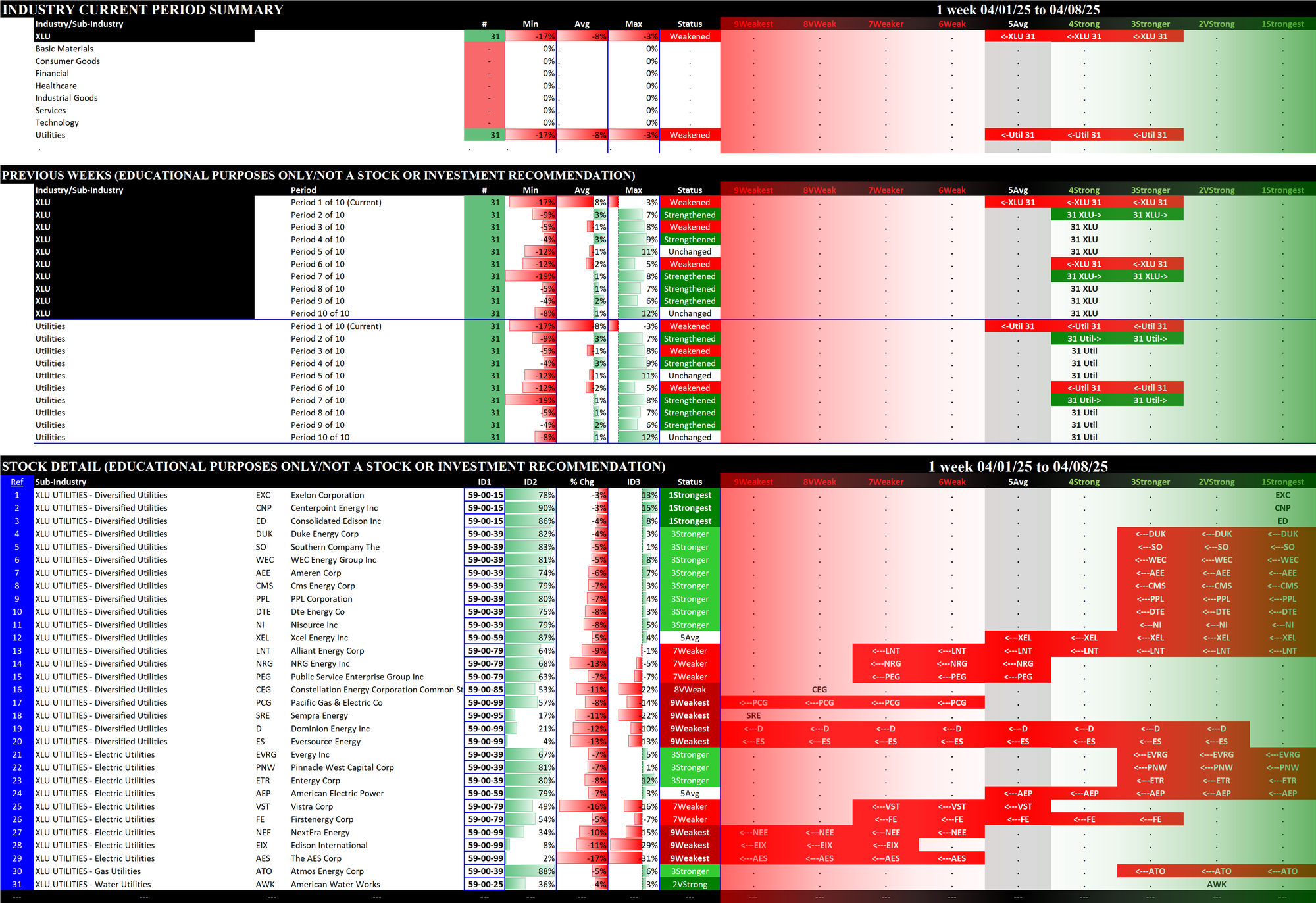 - XLU/Utilities (WEAKENED 2 RATINGS)