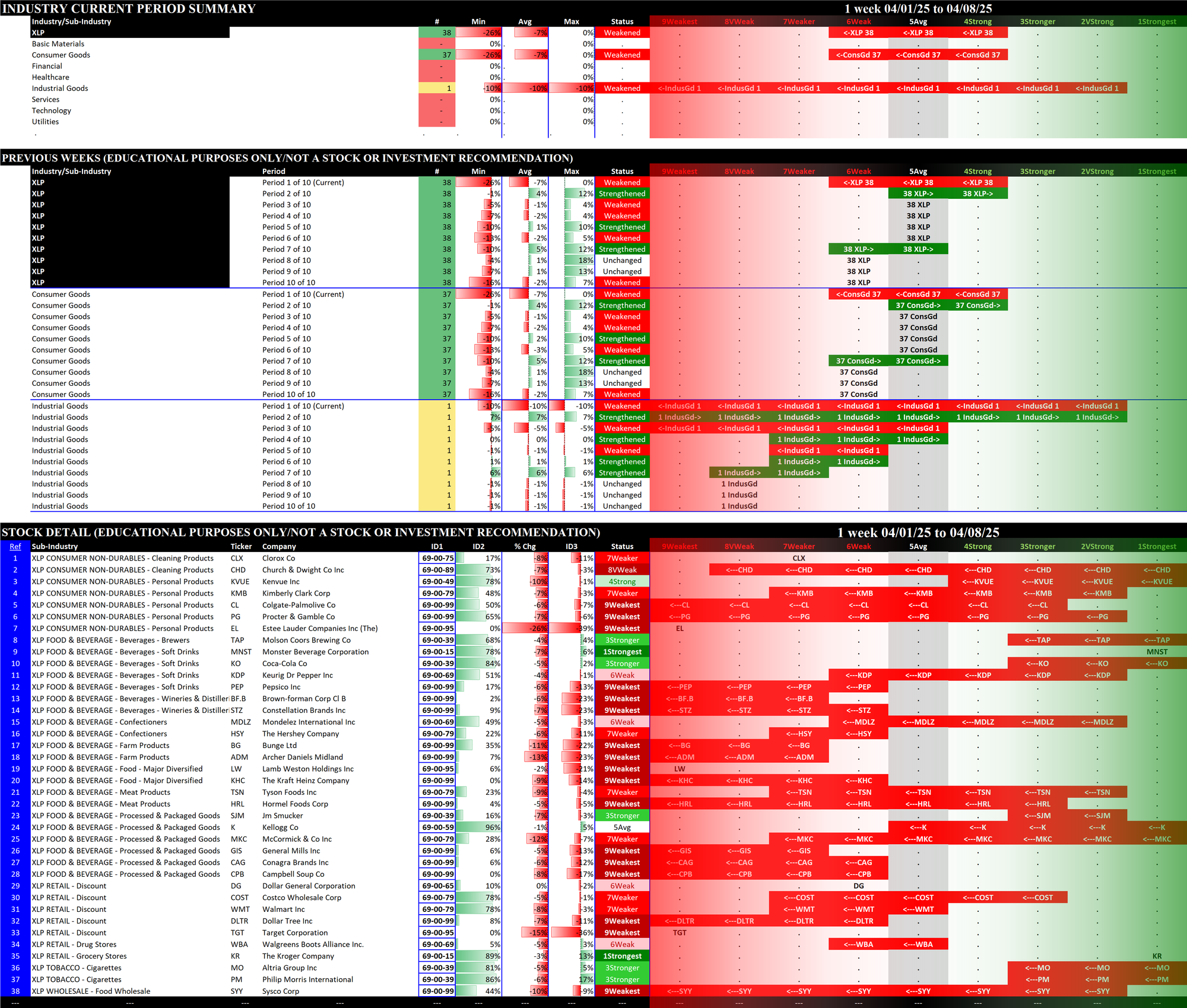 2.7 XLP Consumer Staples (38 stocks, mid-sized), WEAKENED 2 RATINGS TO 6Weak