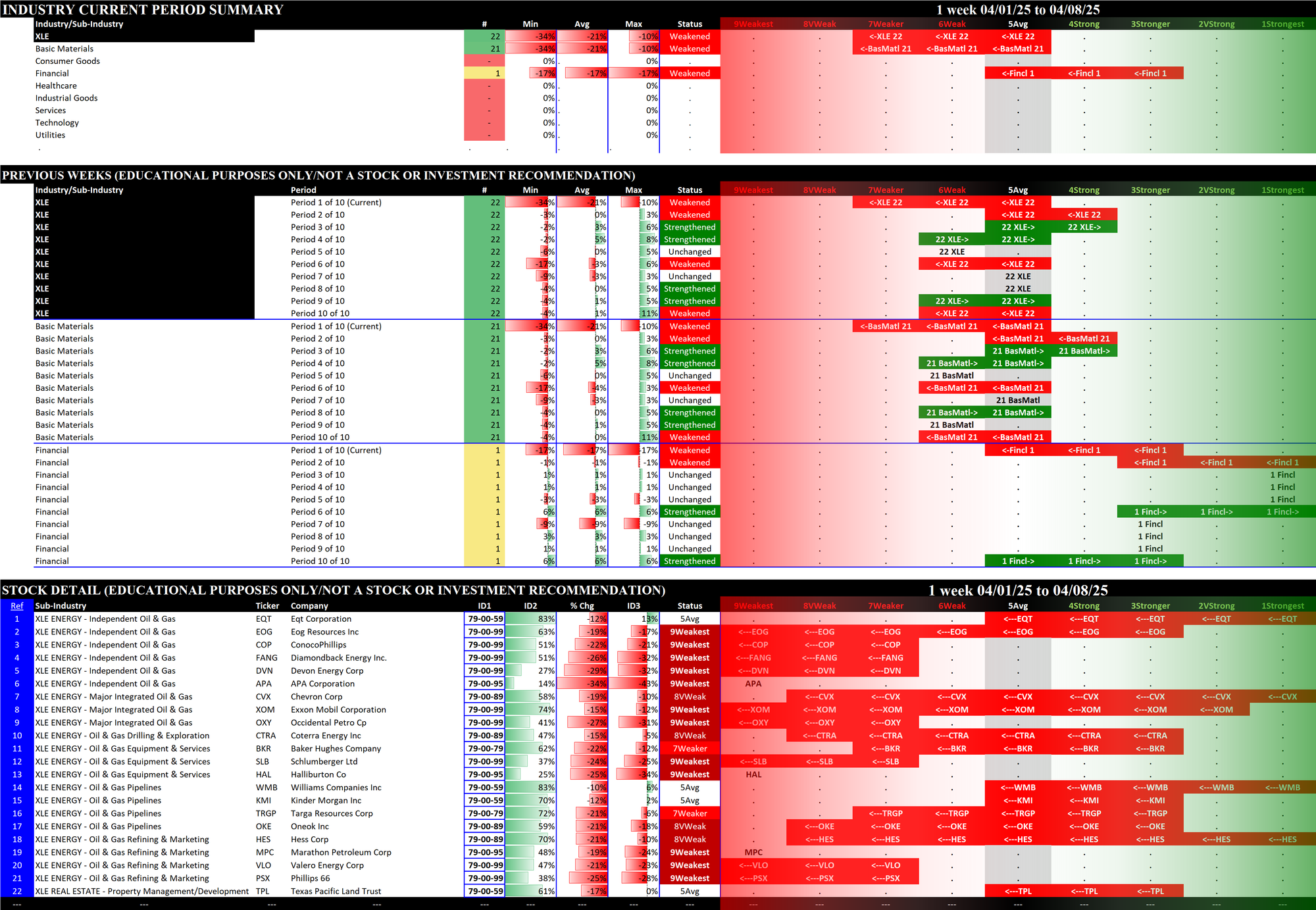 This dynamic market analysis provides a continuously updated, apples-to-apples comparison of the strengthening and weakening trends in the US market. By tracking the 500 large-cap stocks across 11 key sectors (via SPDR ETFs), this analysis offers valuable insights for investors seeking to harness momentum in their portfolios.