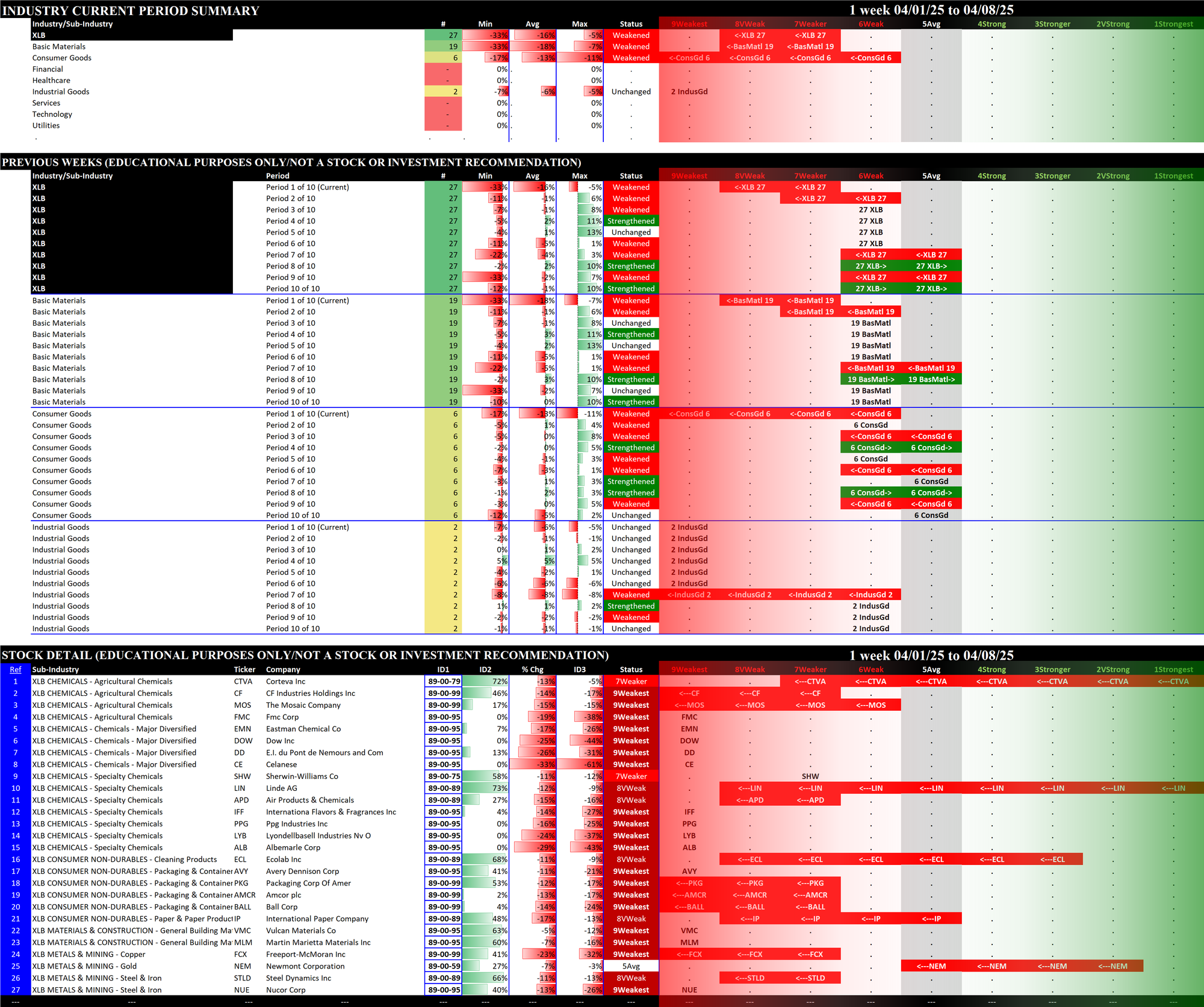 2.1 XLB Materials (27 stocks, small), WEAKENED RATING TO 8VWeak = WORST