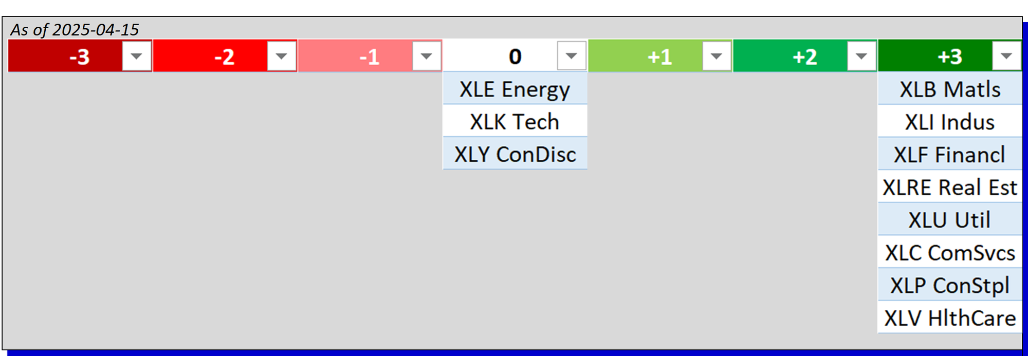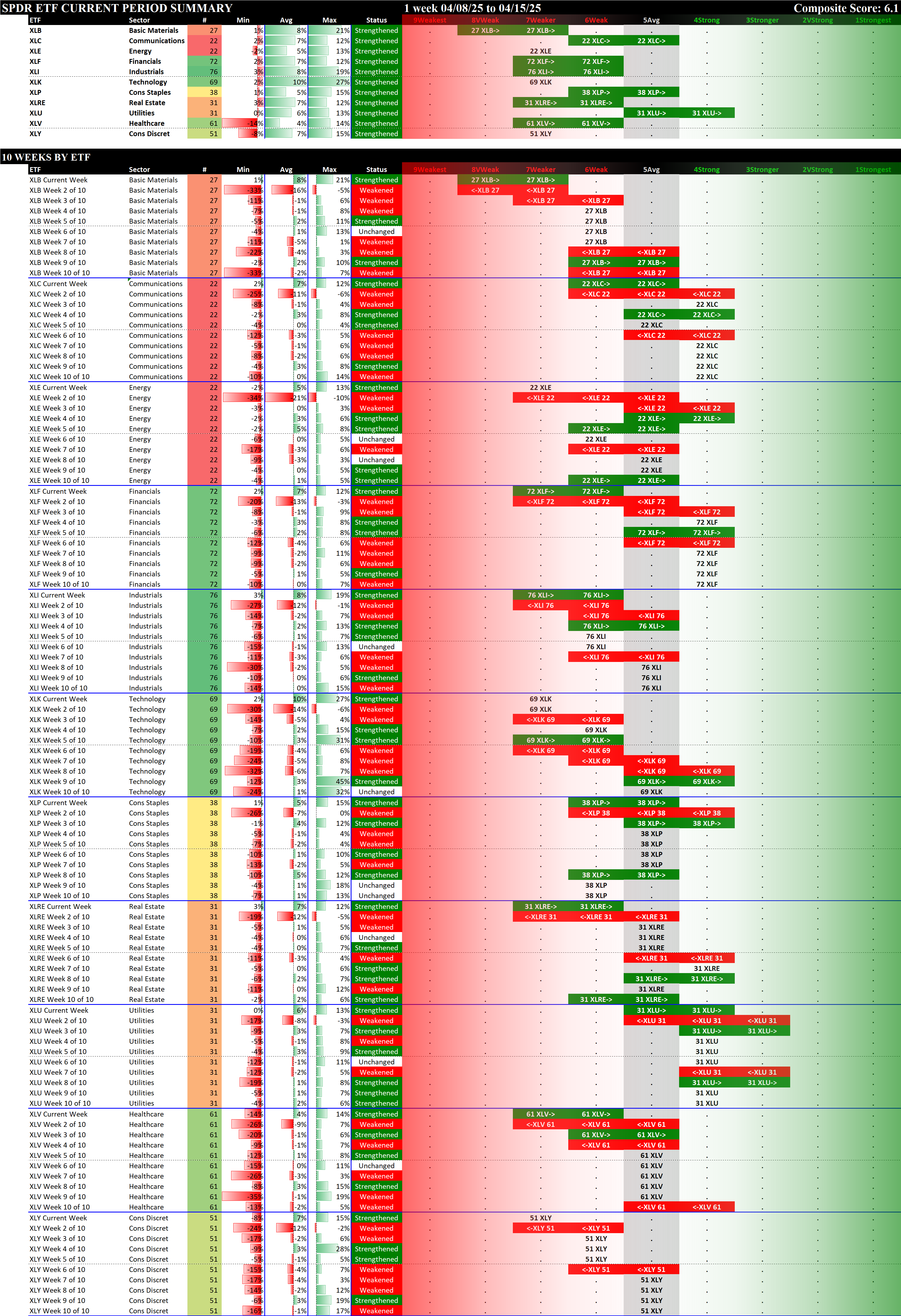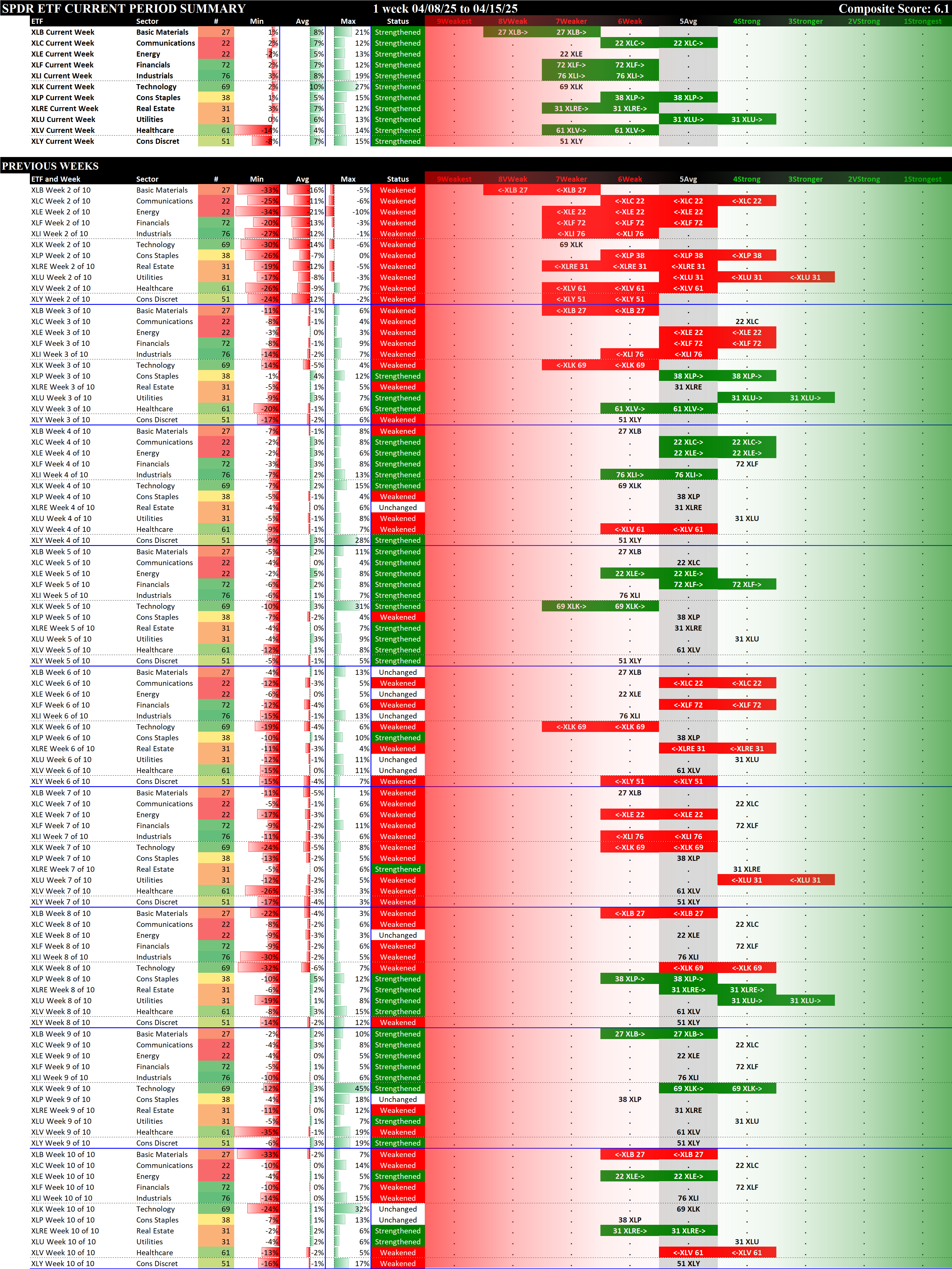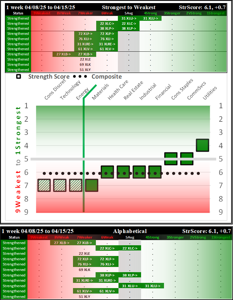 SPDR Sector ETFs Tue 2025-04-15: 6.1 Strength Score (Strengthened +0.7)