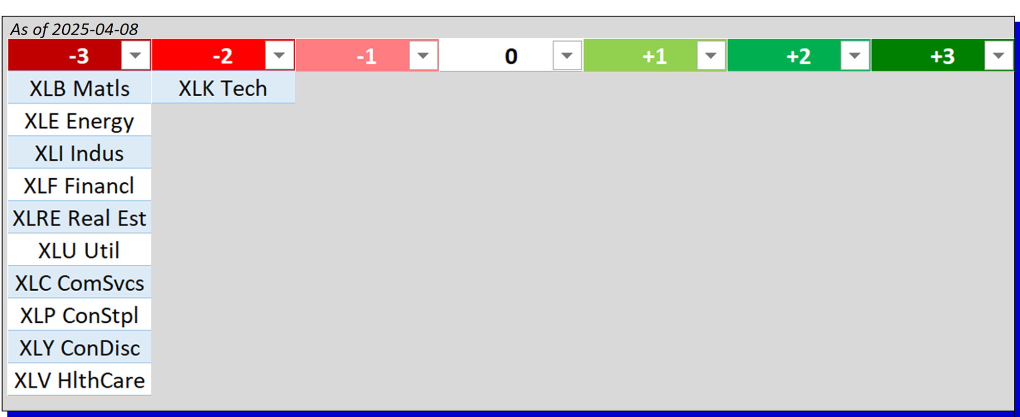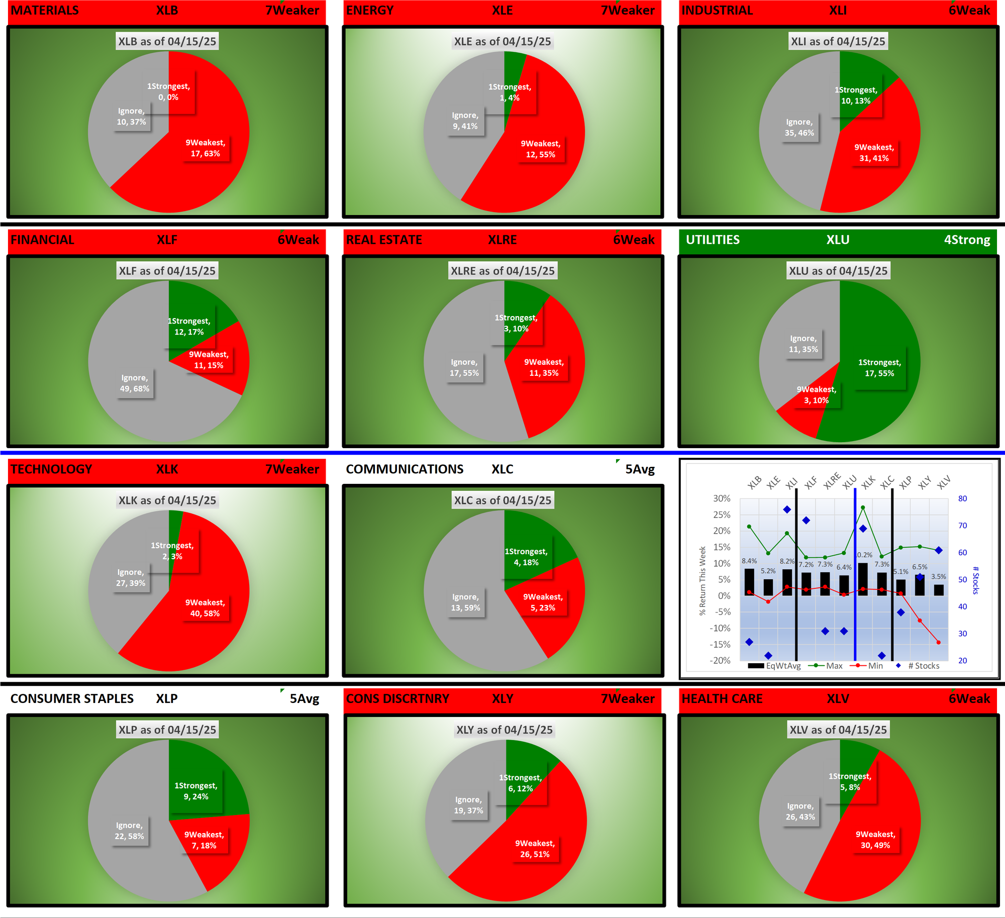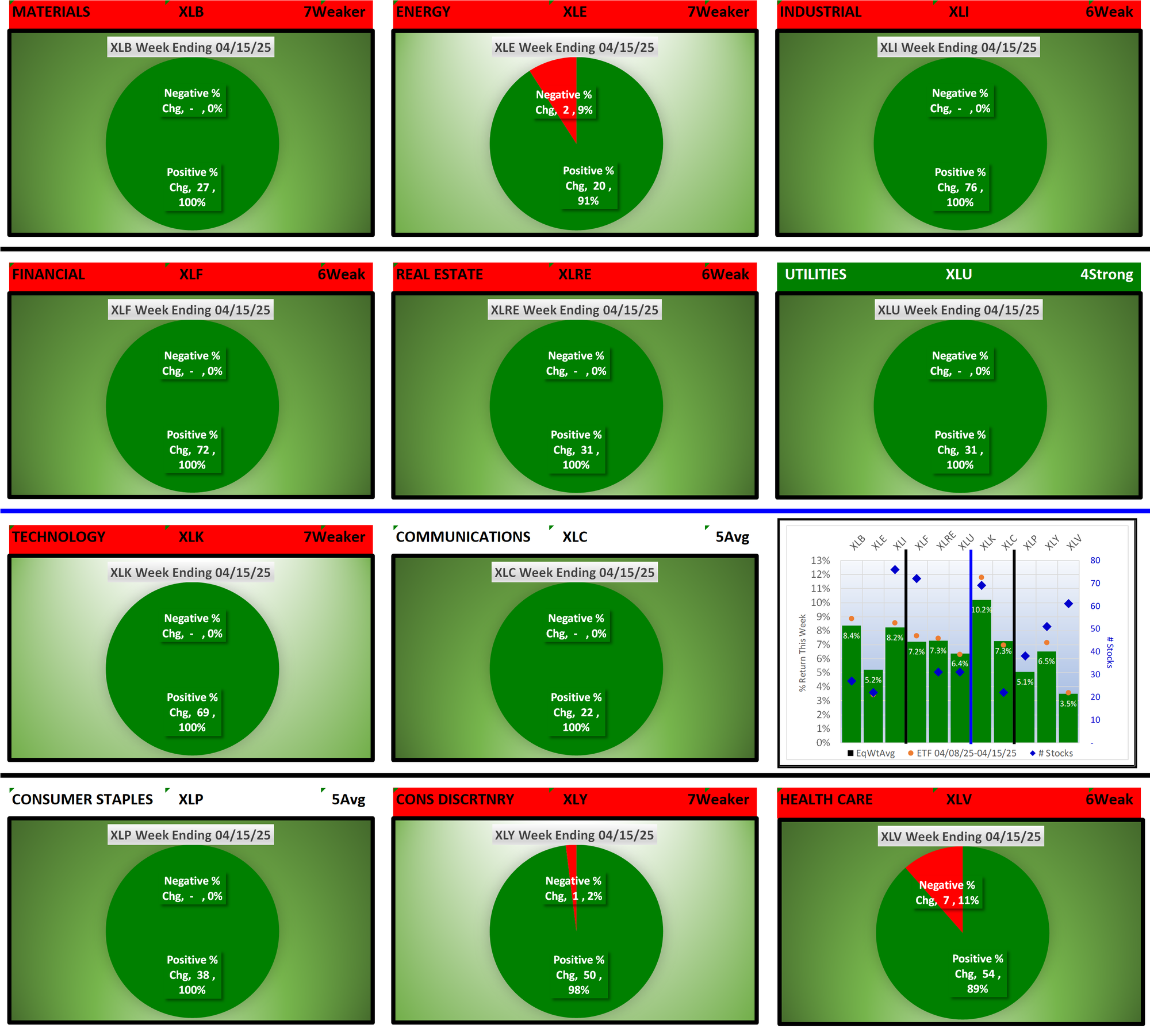 SPDR Sector ETFs Tue 2025-04-15: 6.1 Strength Score (Strengthened +0.7)