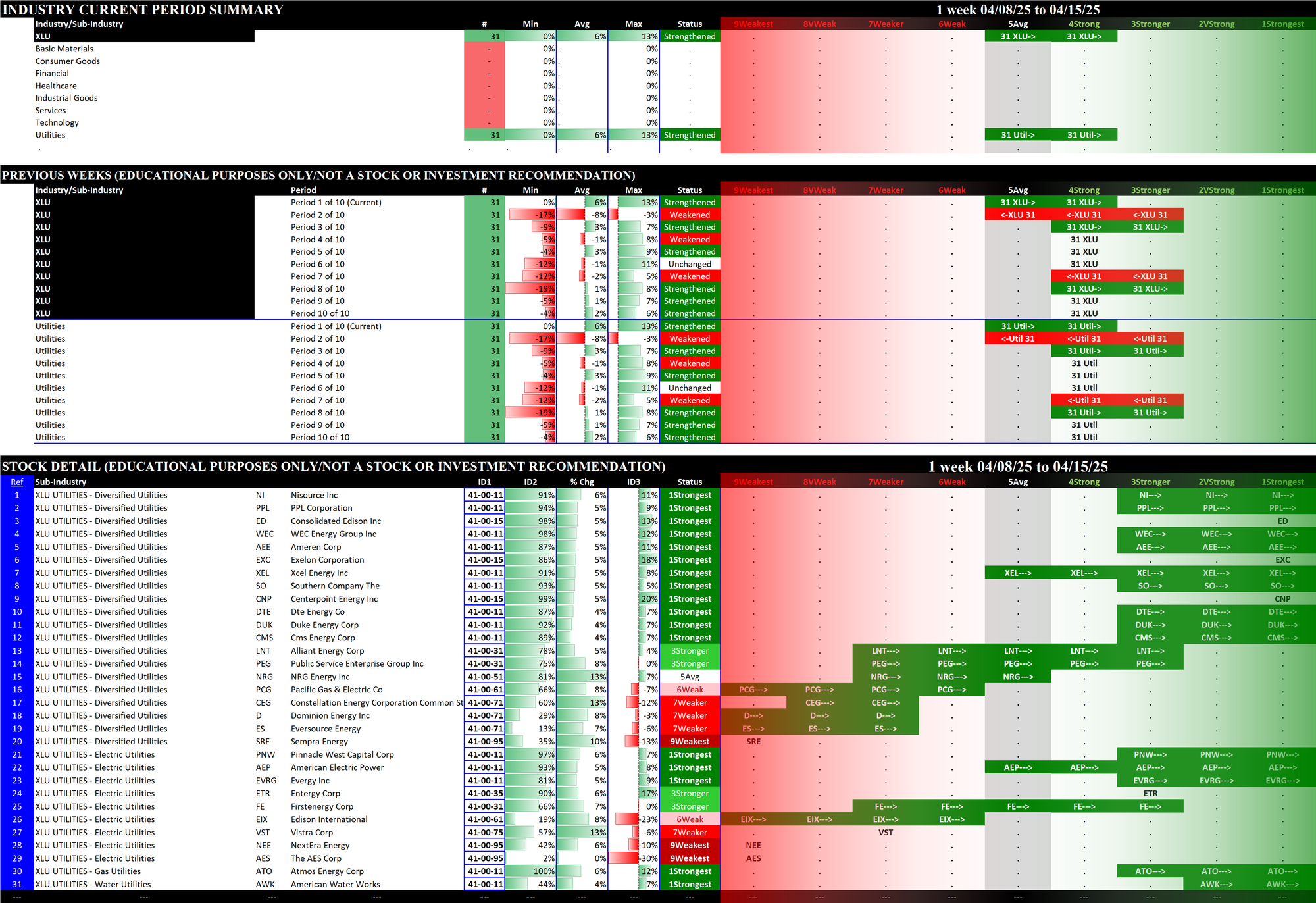 2.9 XLU Utilities (31 stocks, small/mid-sized), STRENGTHENED RATING TO 4Strong = BEST