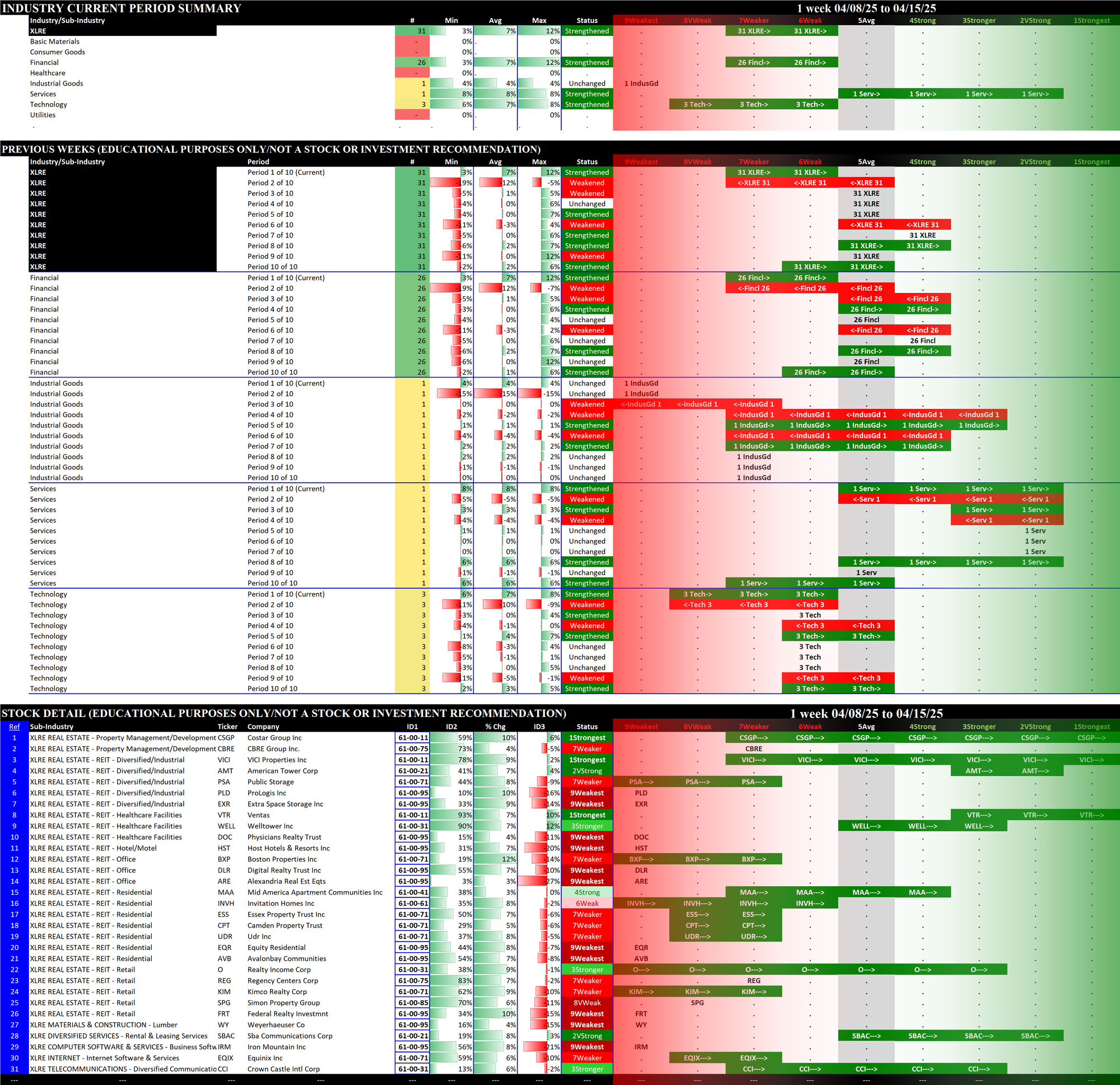 This dynamic market analysis provides a continuously updated, apples-to-apples comparison of the strengthening and weakening trends in the US market. By tracking the 500 large-cap stocks across 11 key sectors (via SPDR ETFs), this analysis offers valuable insights for investors seeking to harness momentum in their portfolios.
