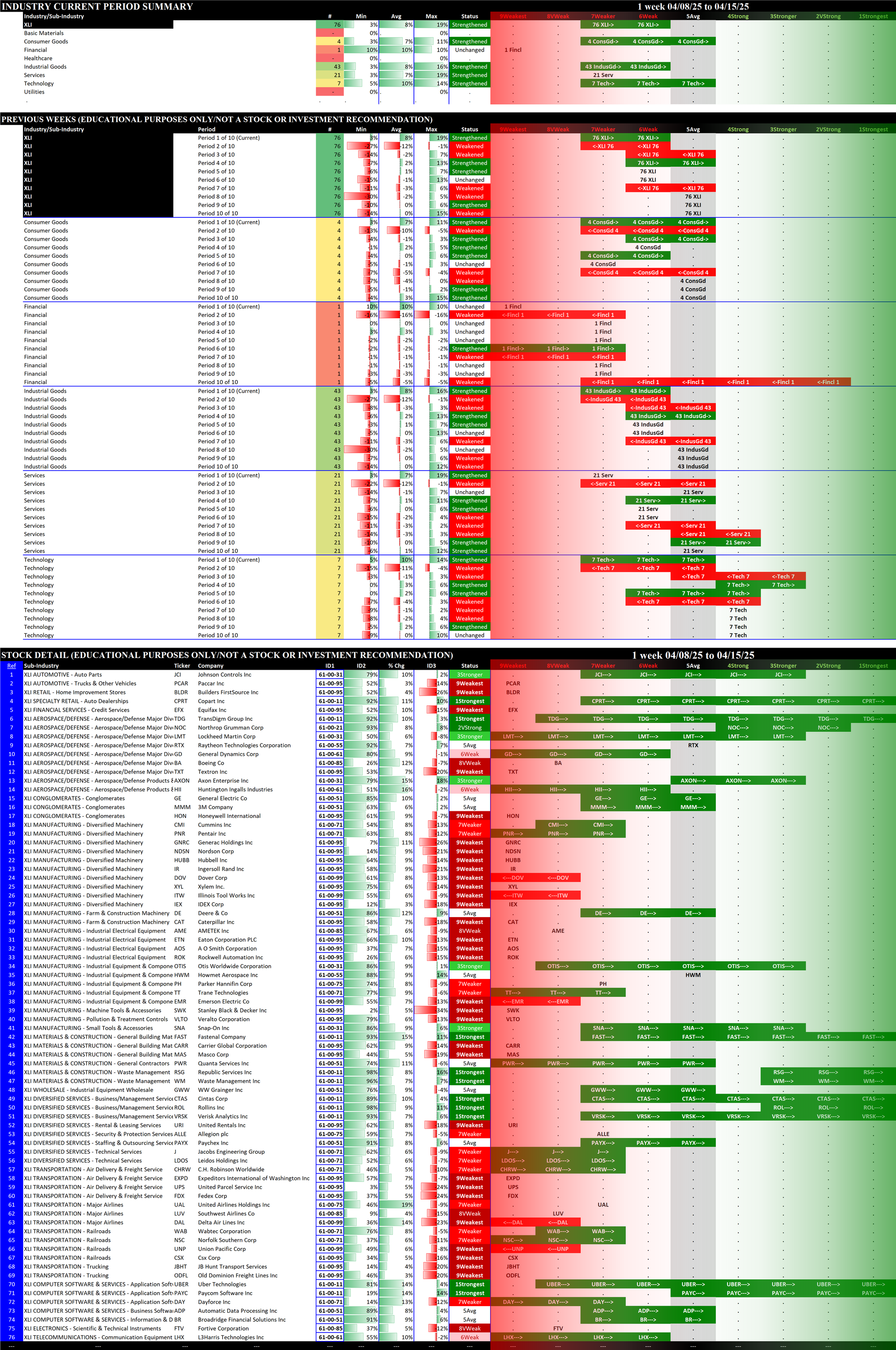 Each week, the analysis clearly identifies which sectors and stocks have gained, remained flat, or lost ground. With this data, investors can objectively assess sector and stock strength, refining their timing and positioning for new investments. Ultimately, this approach aims to enhance long-term portfolio performance by leveraging momentum – a proven market factor – to inform data-driven investment decisions.