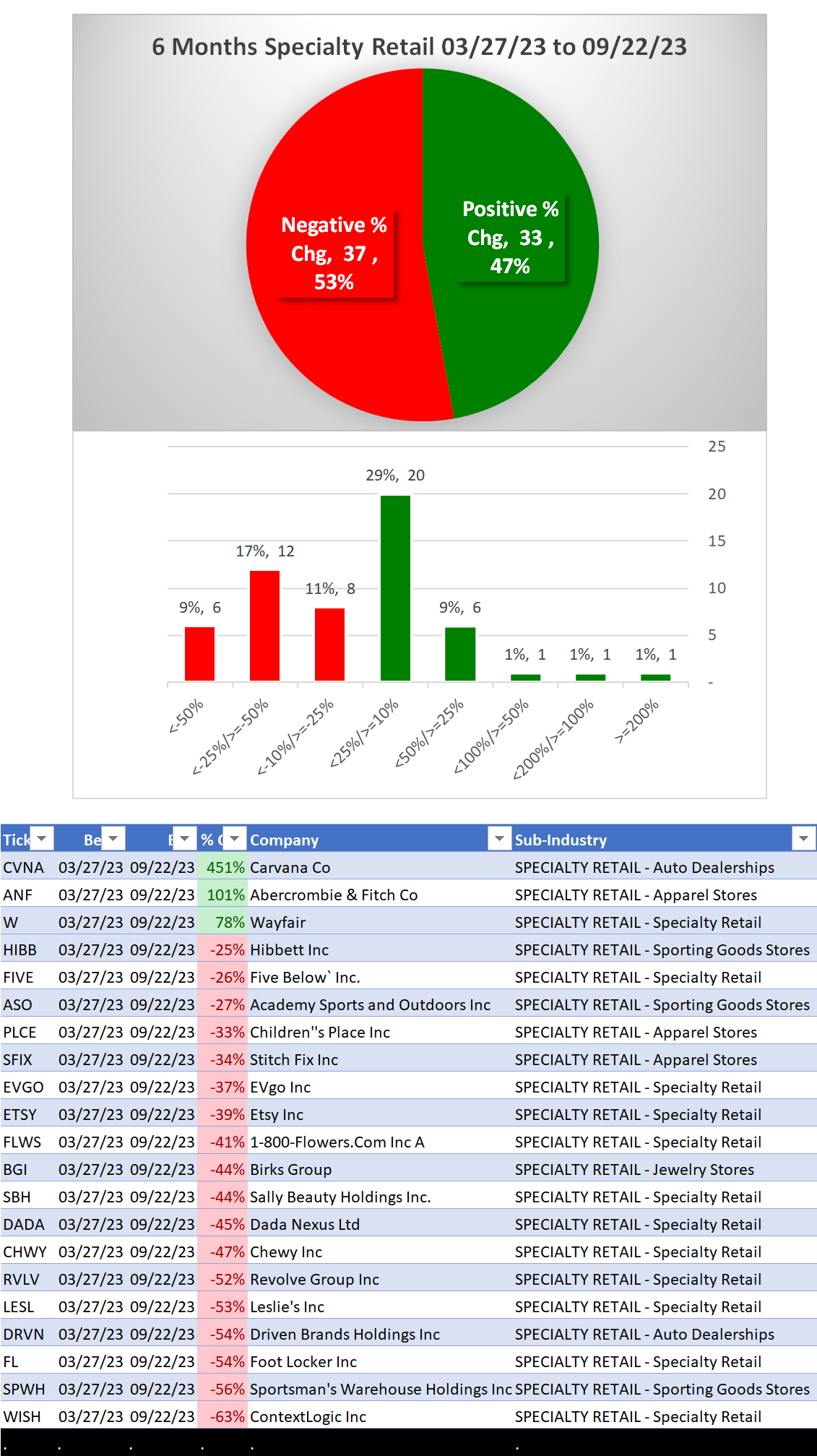 - Specialty Retail (24 stocks)