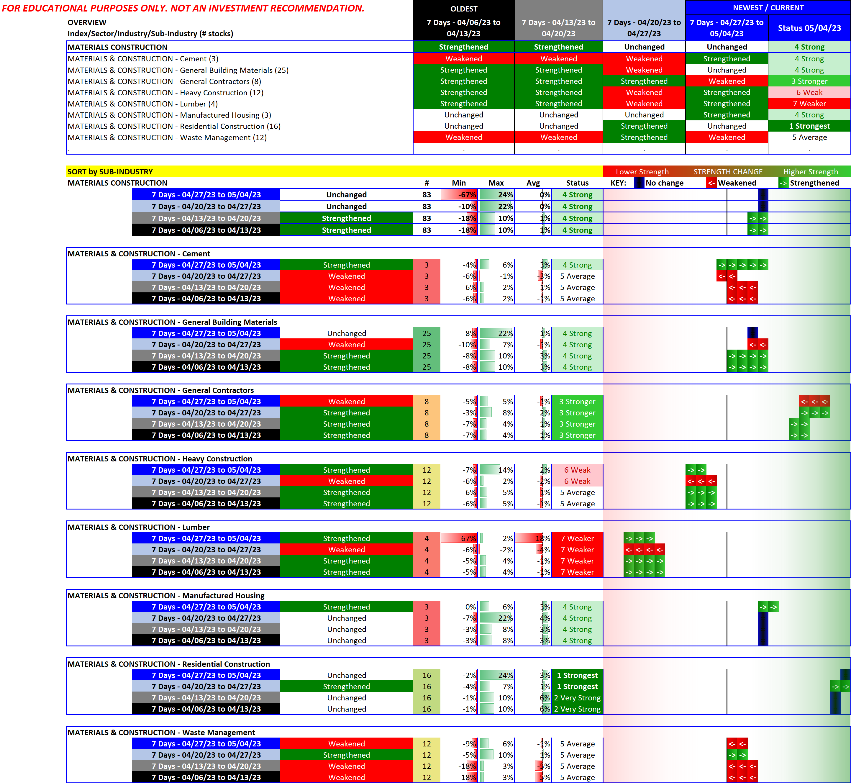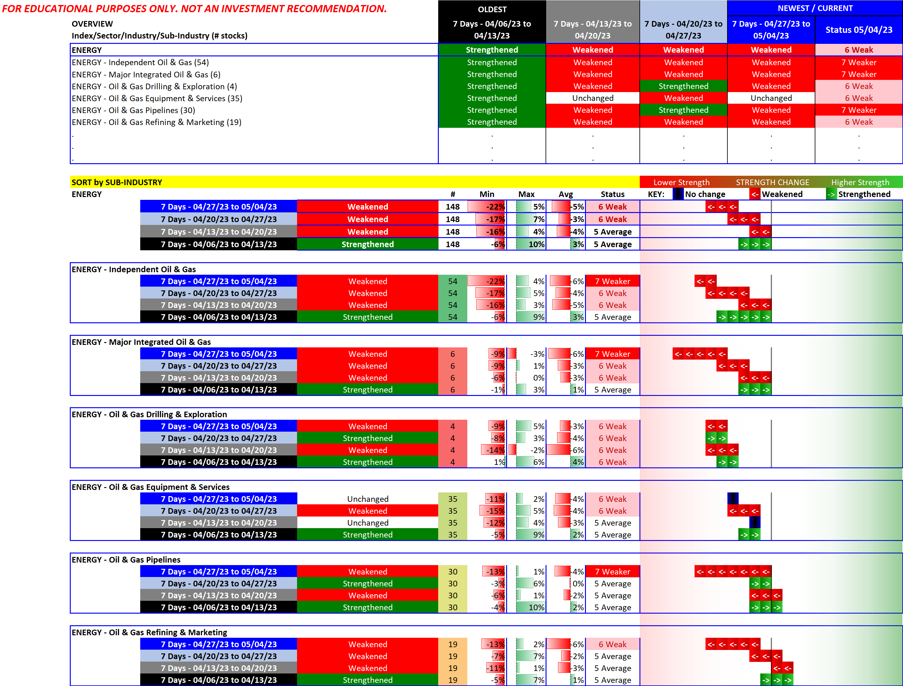 The following graphics show the week-by-week change over the past four weeks. The strength differences at the sub-industry level are clear.