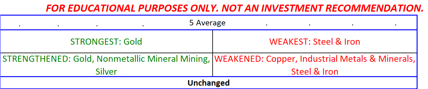 - Metals was unchanged and is Average strength