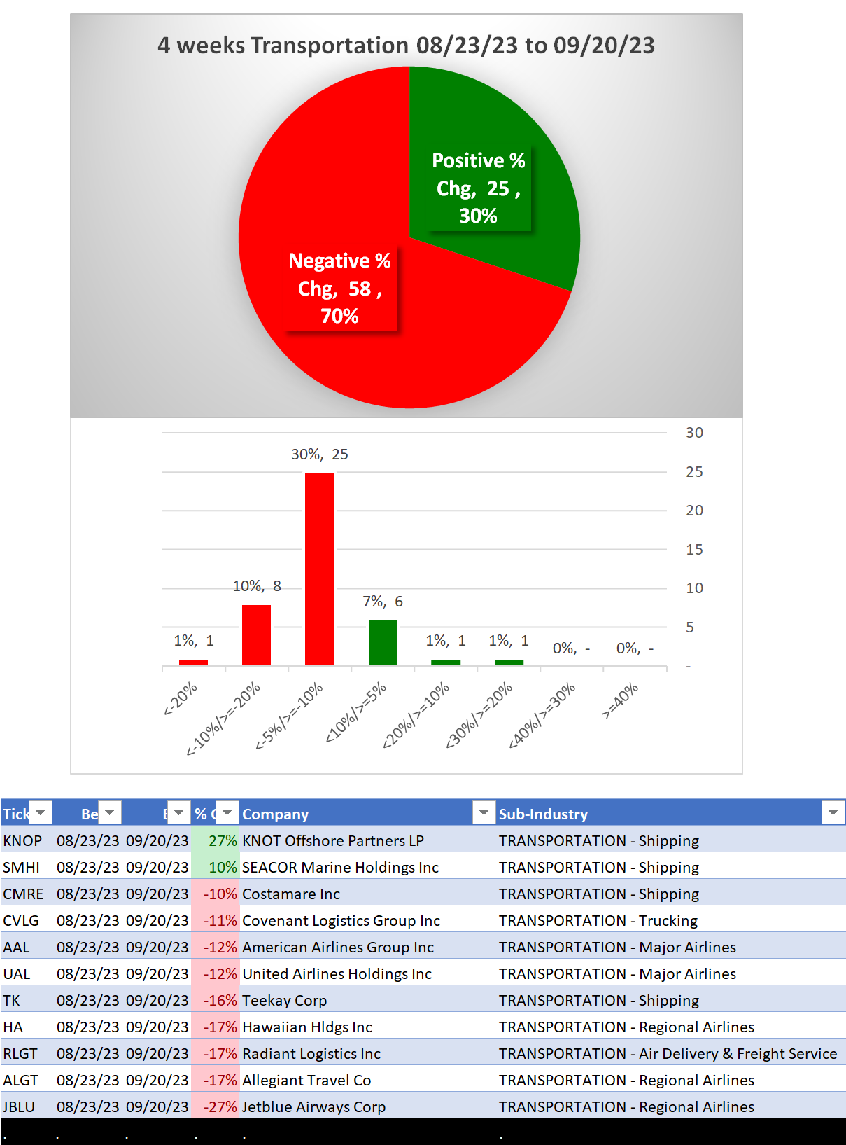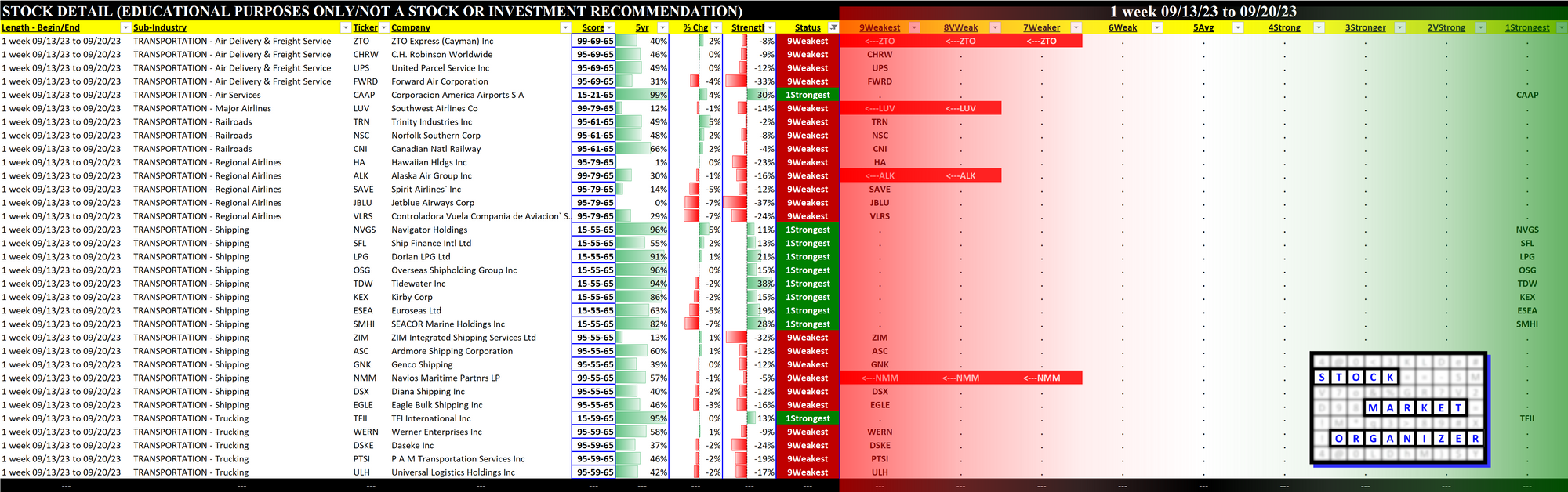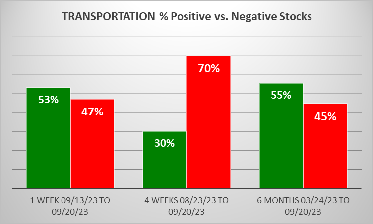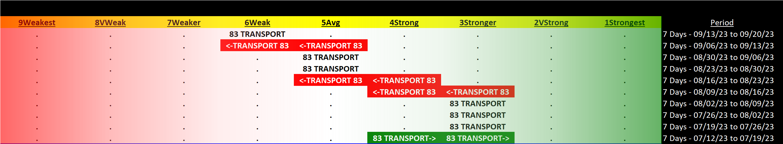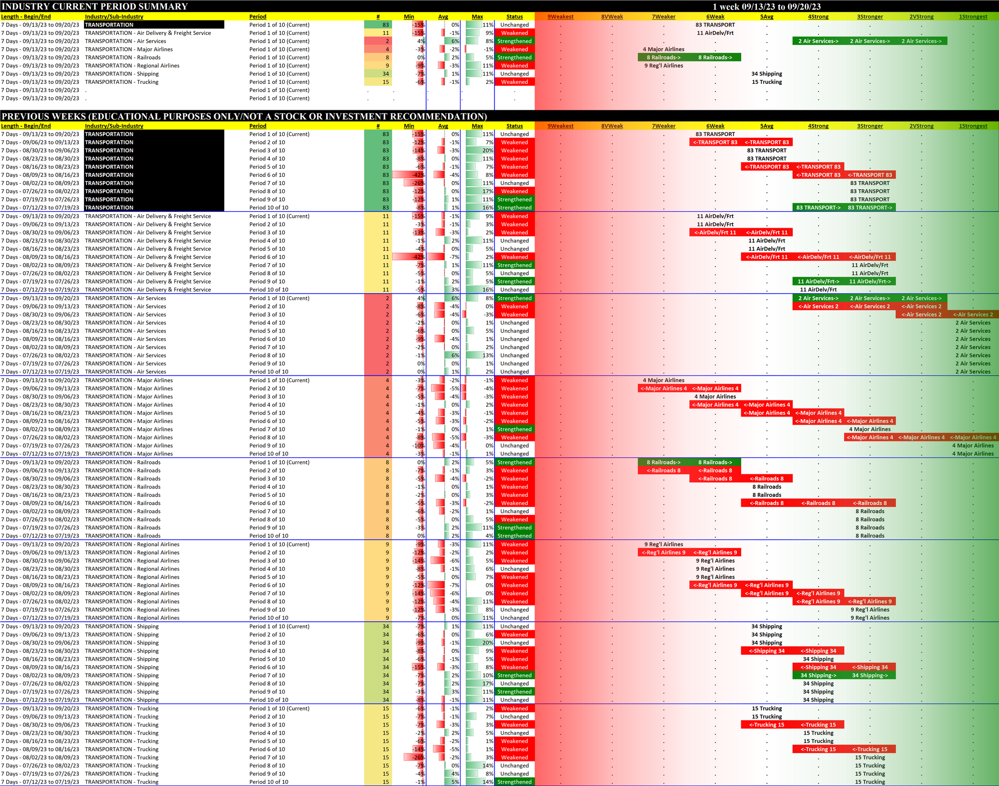 Transportation 2023-09-20: Unchanged at WEAK strength rating (6th strongest of 9 levels), previous move was DOWN