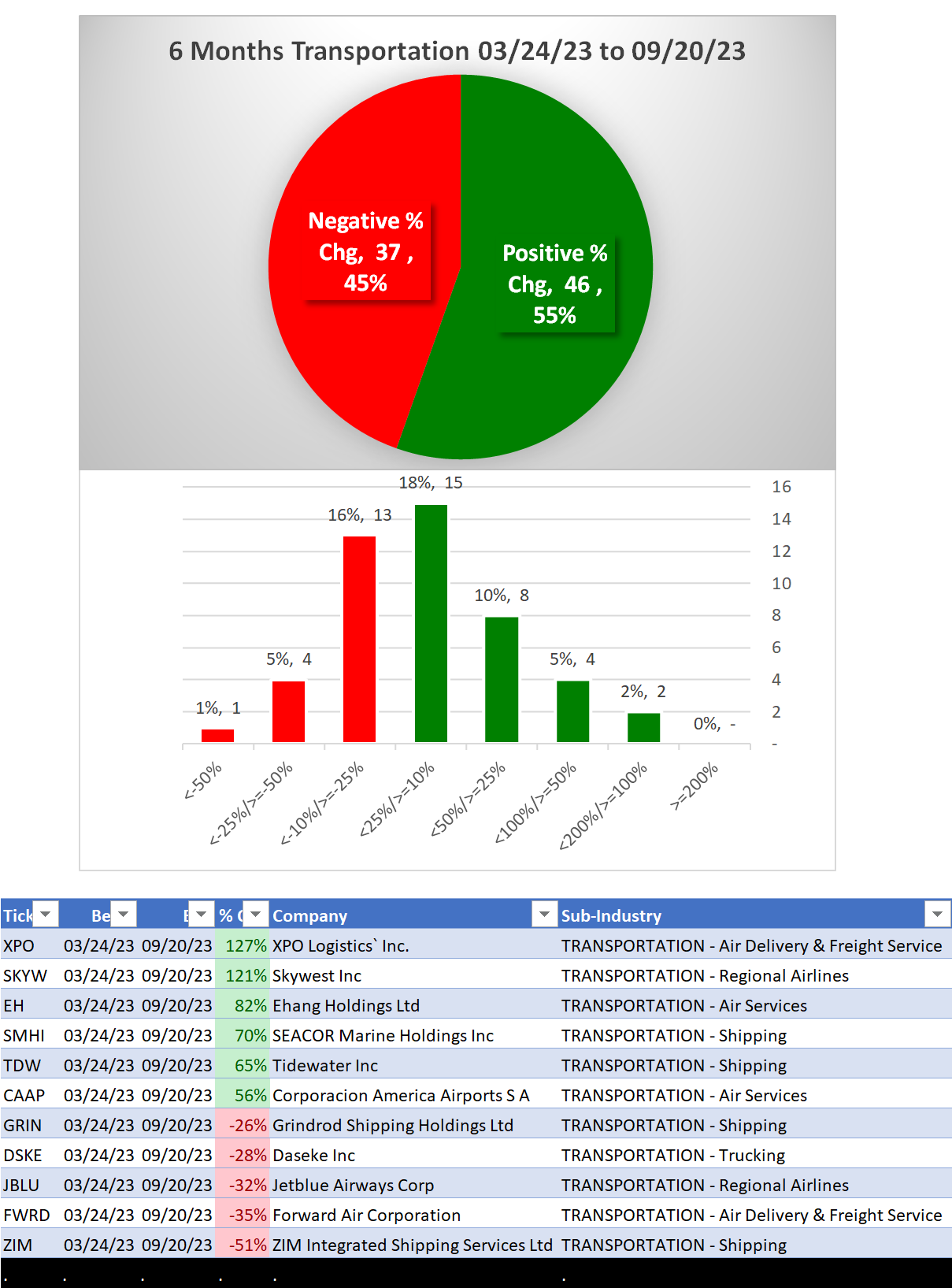- Air Delivery & Freight Service (11 stocks)